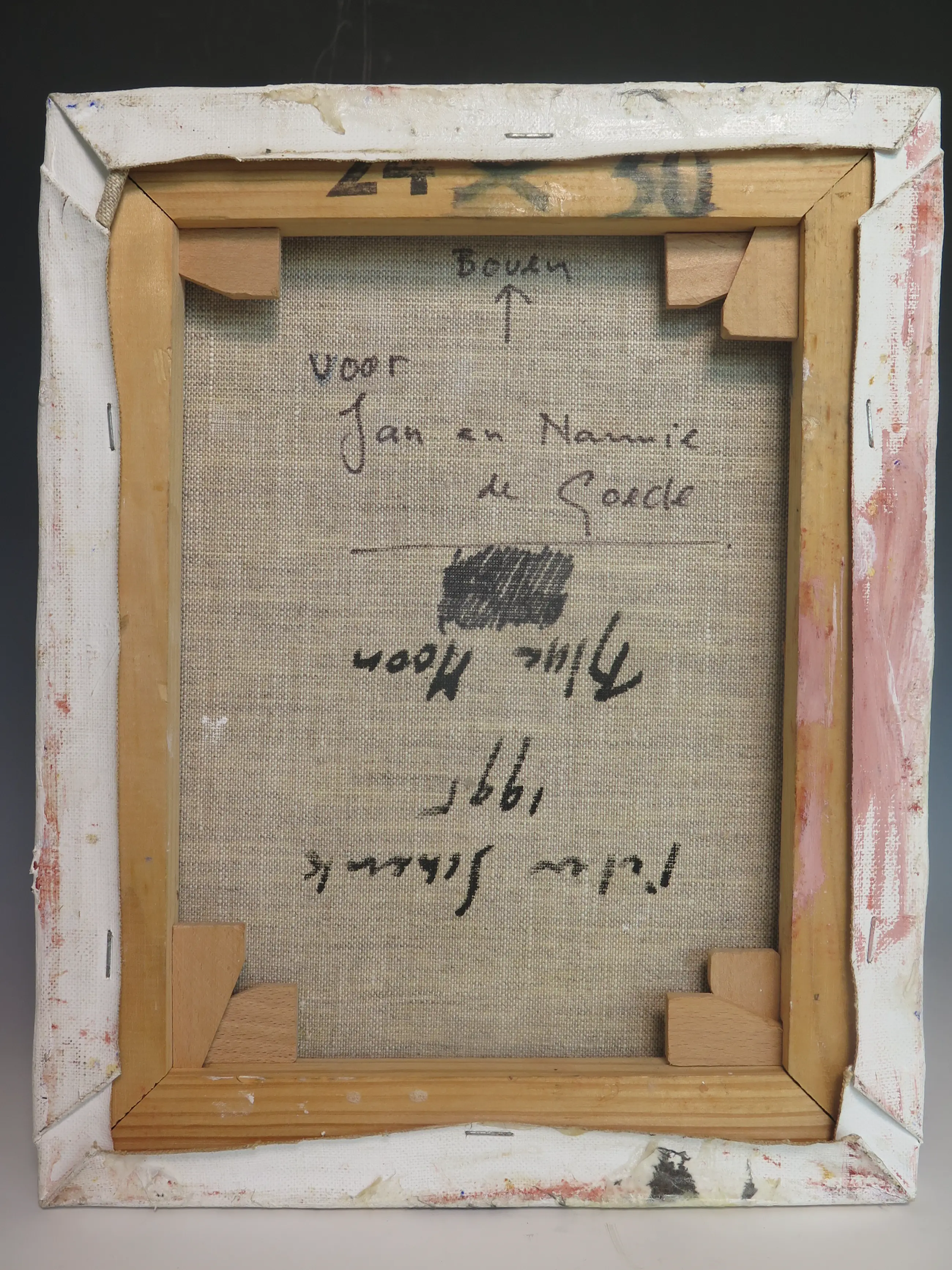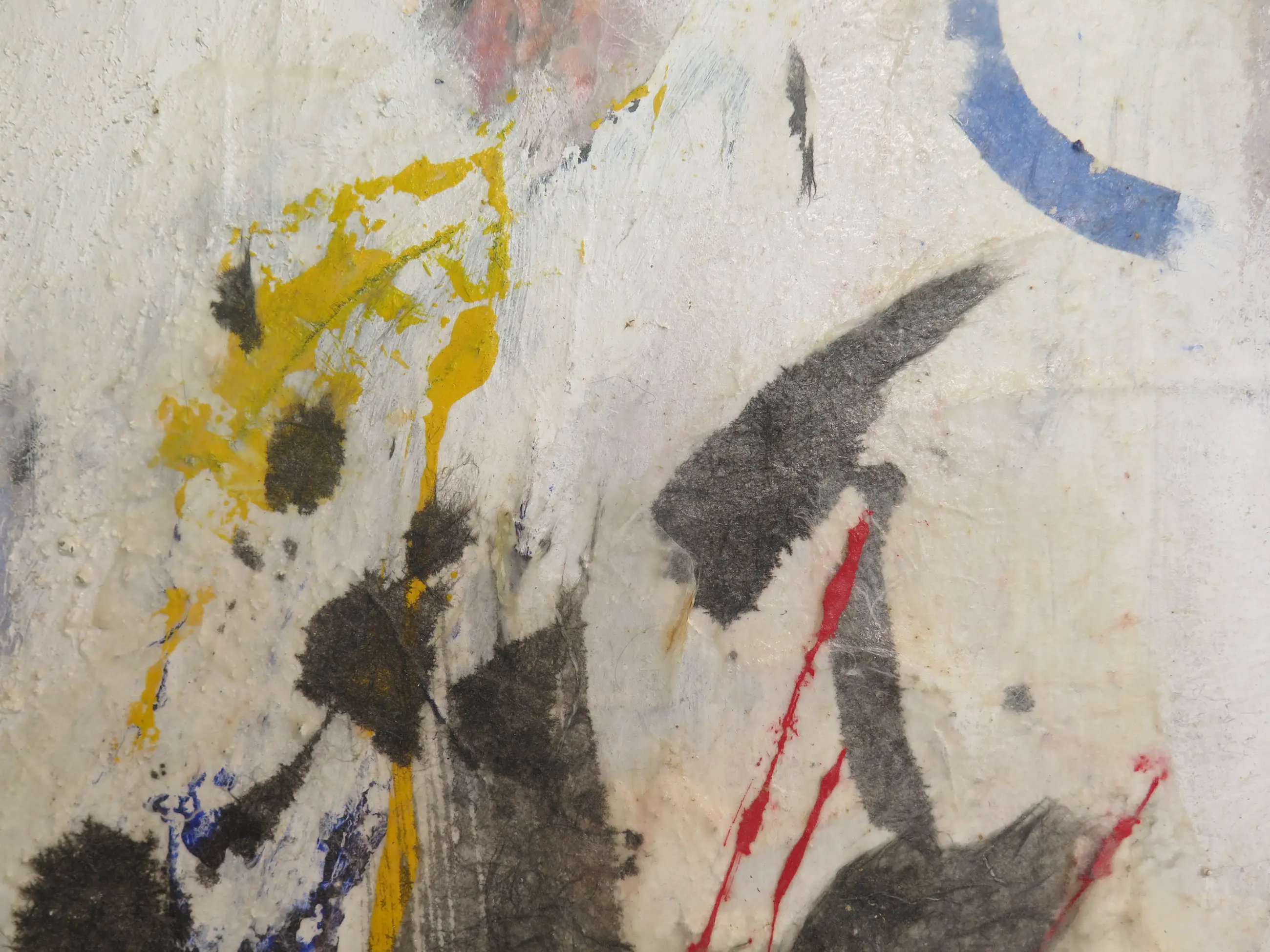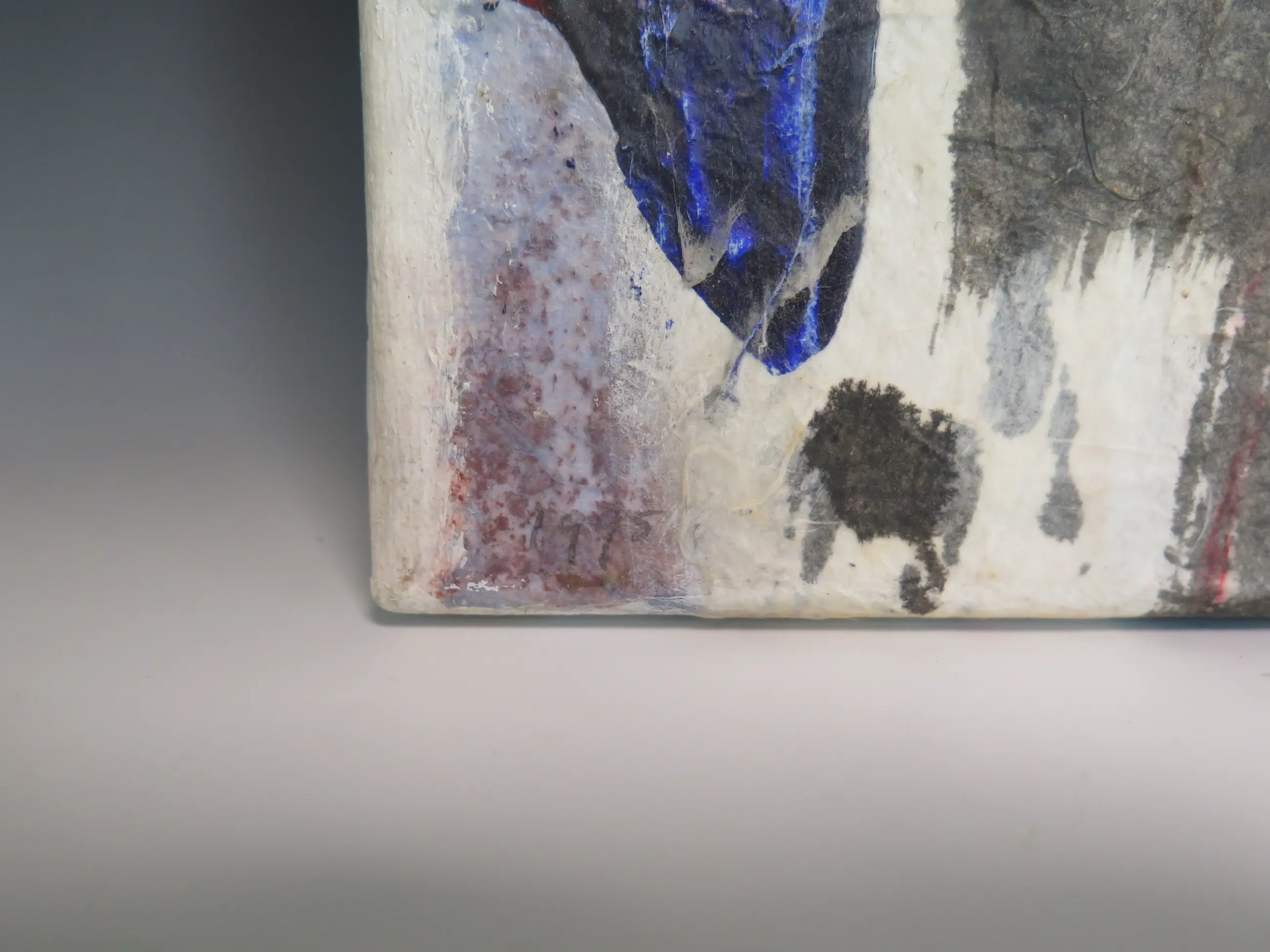 Schilderij door Peter Schenk, gemengde techniek en collage op doek.