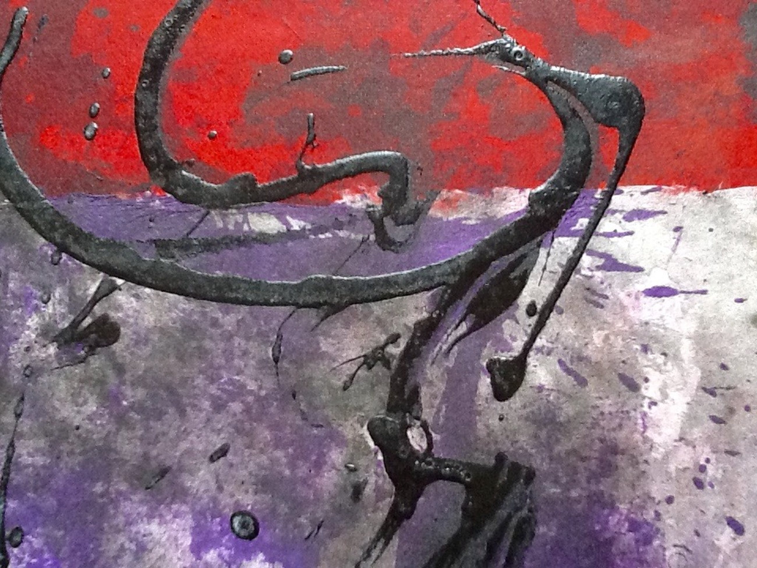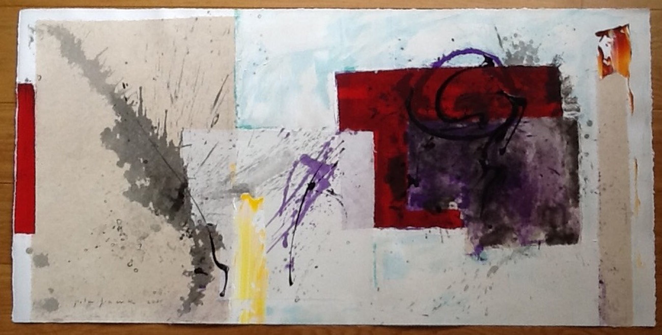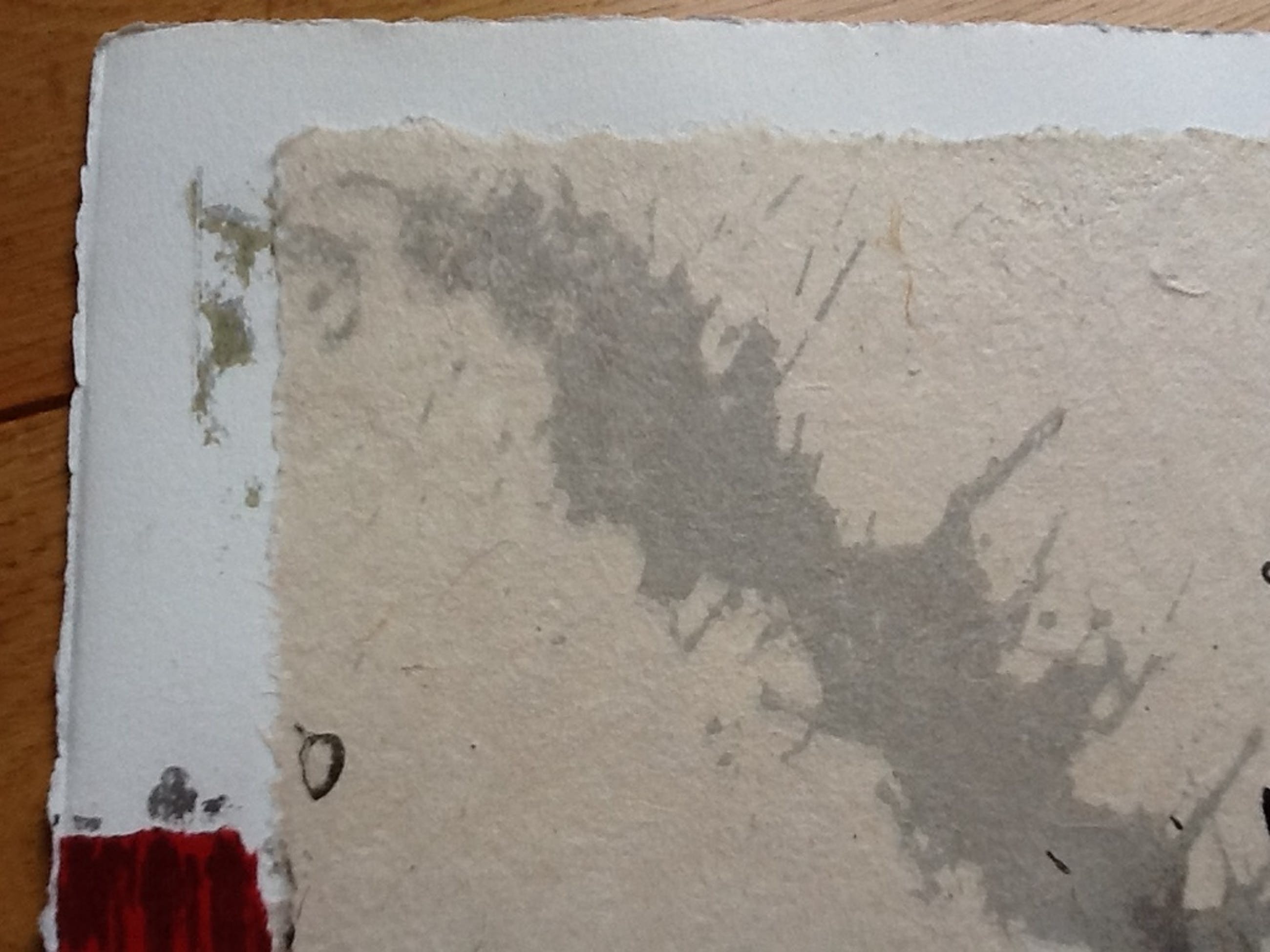 Peter Schenk, collage en verf op zeefdruk (unica)