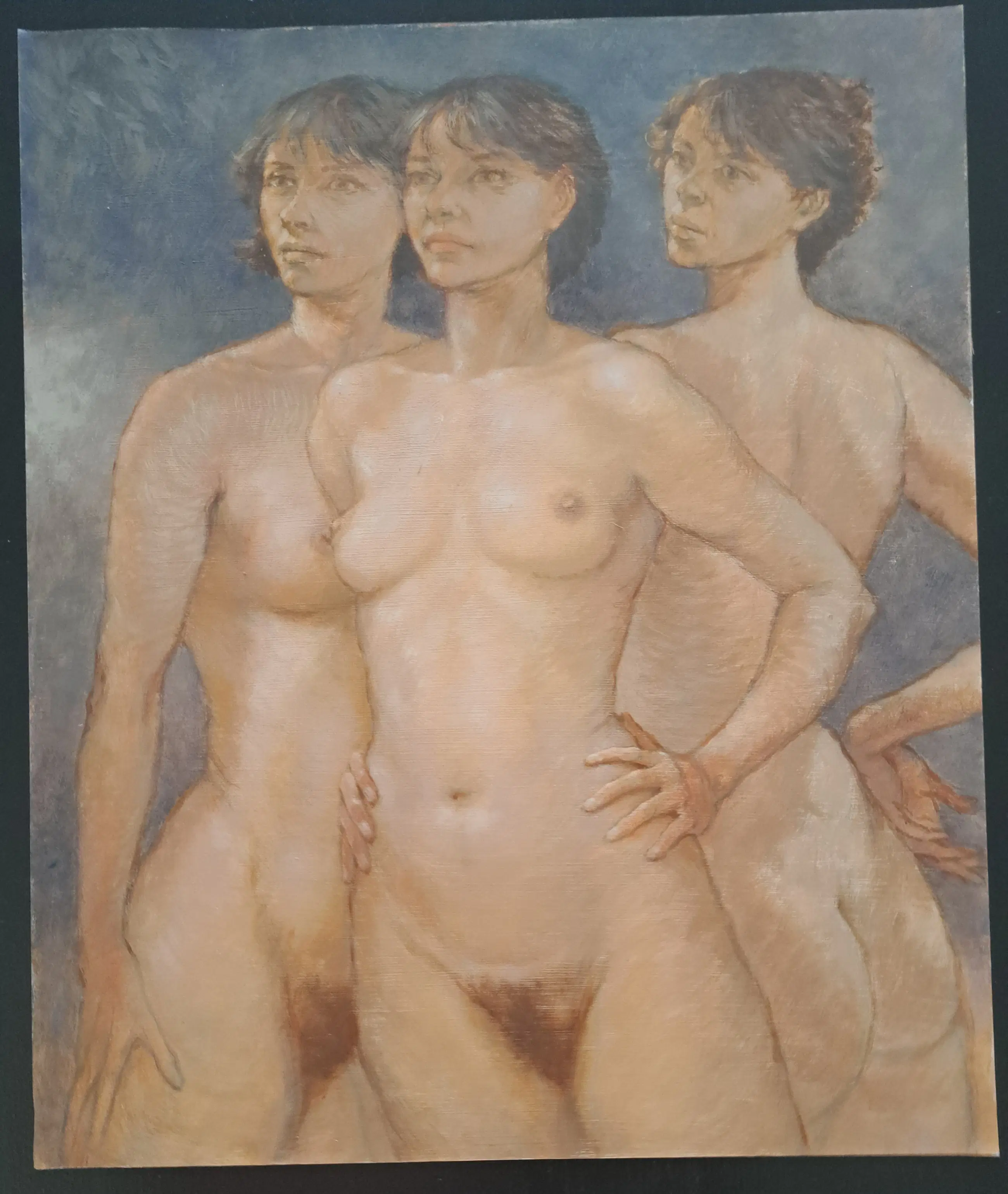Zelfverzekerde portretten, gemaakt door een liefhebber van naakten en fallussen in grotten. Kort na zijn overlijden via weduwe in bezit gekregen. Titel van het werk door de kunstenaar met de hand op achterzijde geschreven.