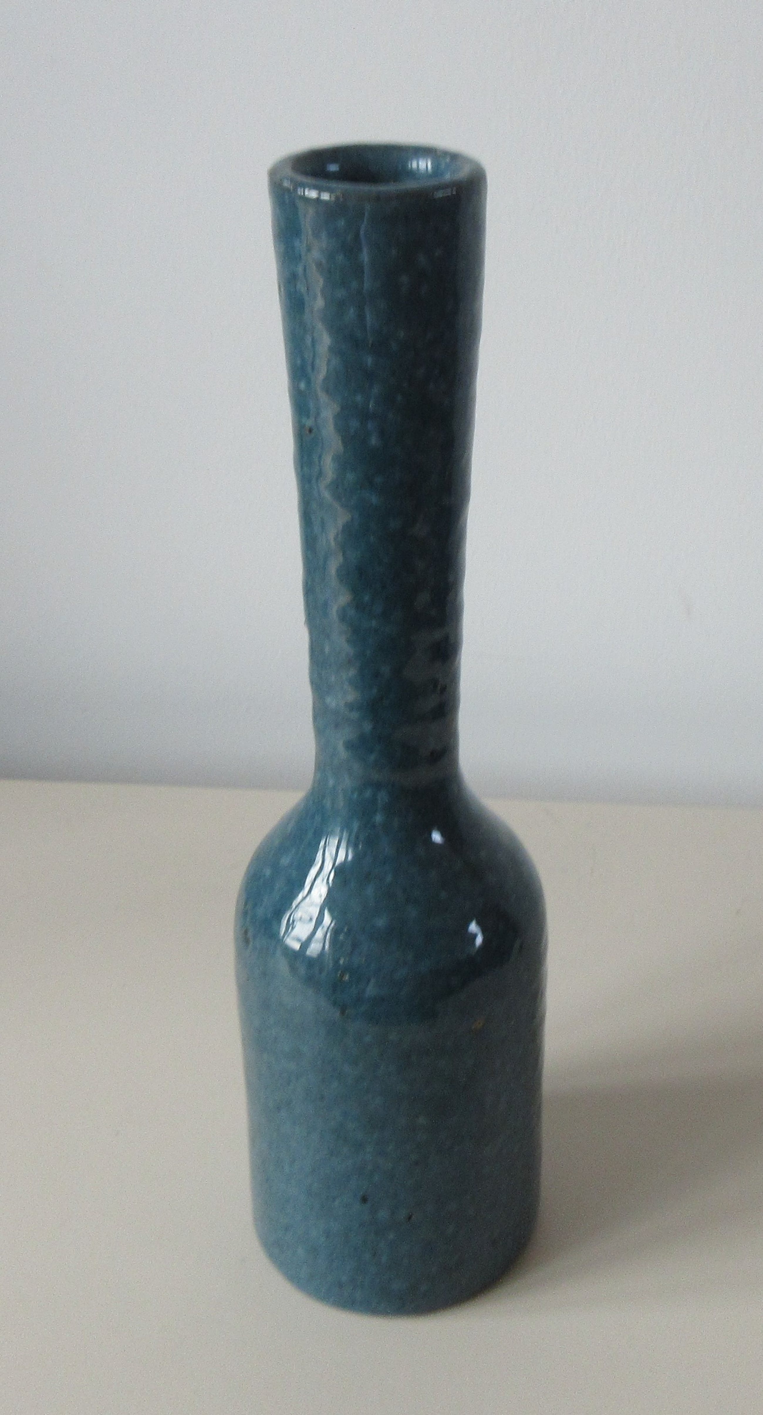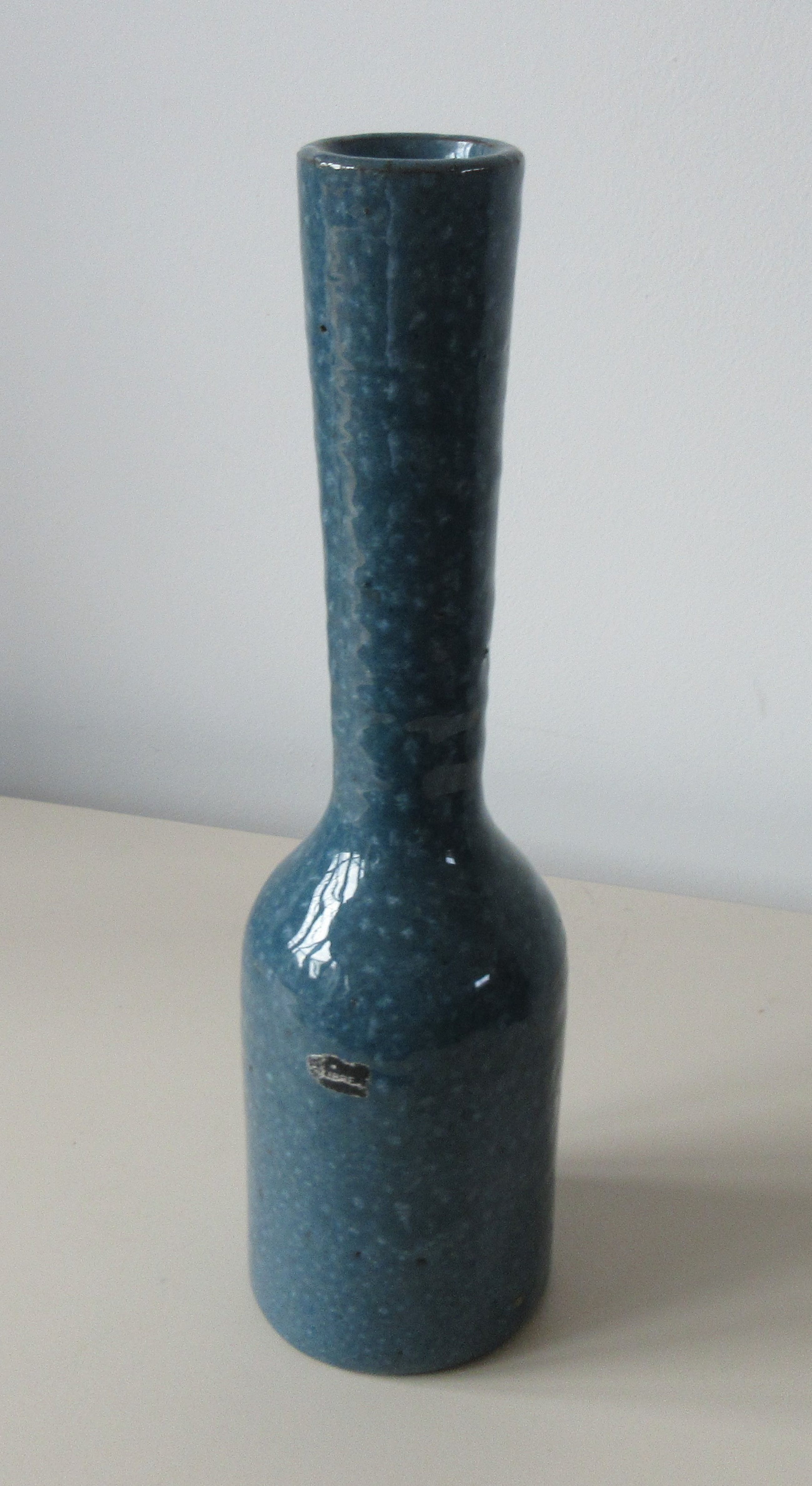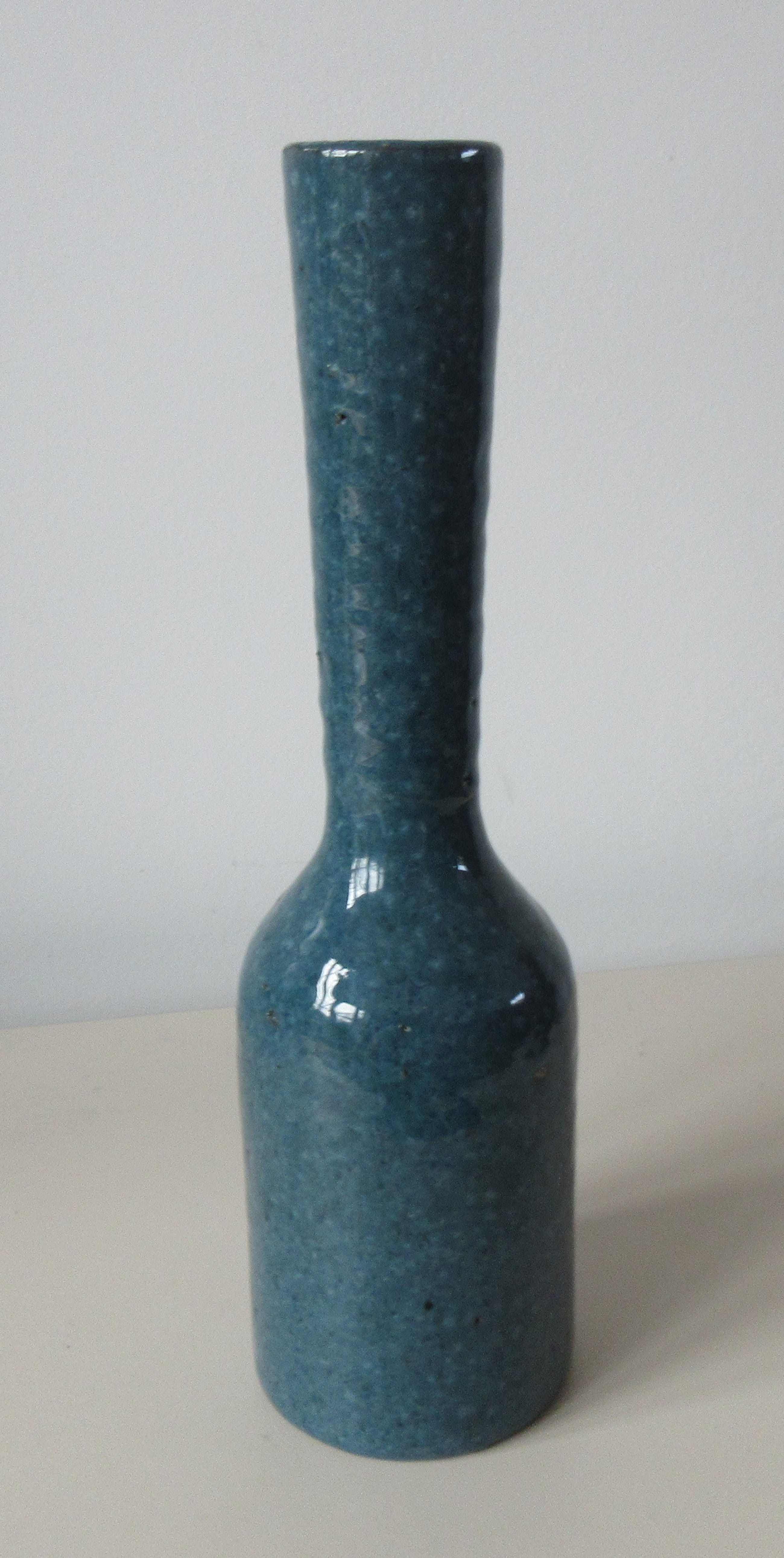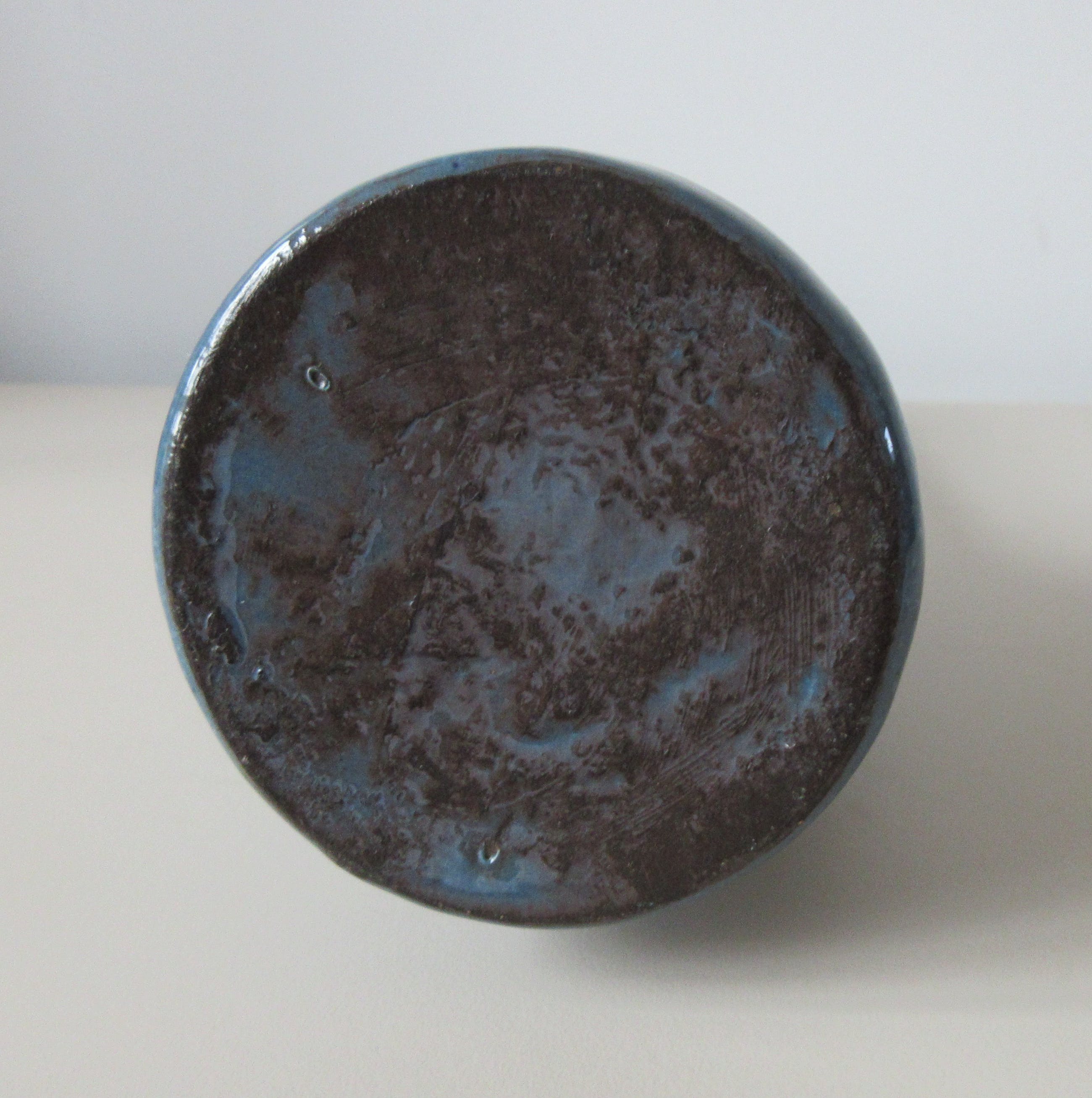 Blauwe aardewerk schoorsteenvaas van keramist Peter Selhorst gemaakt in eigen atelier in Linschoten. In perfecte conditie en gemerkt met een papieren sticker.
