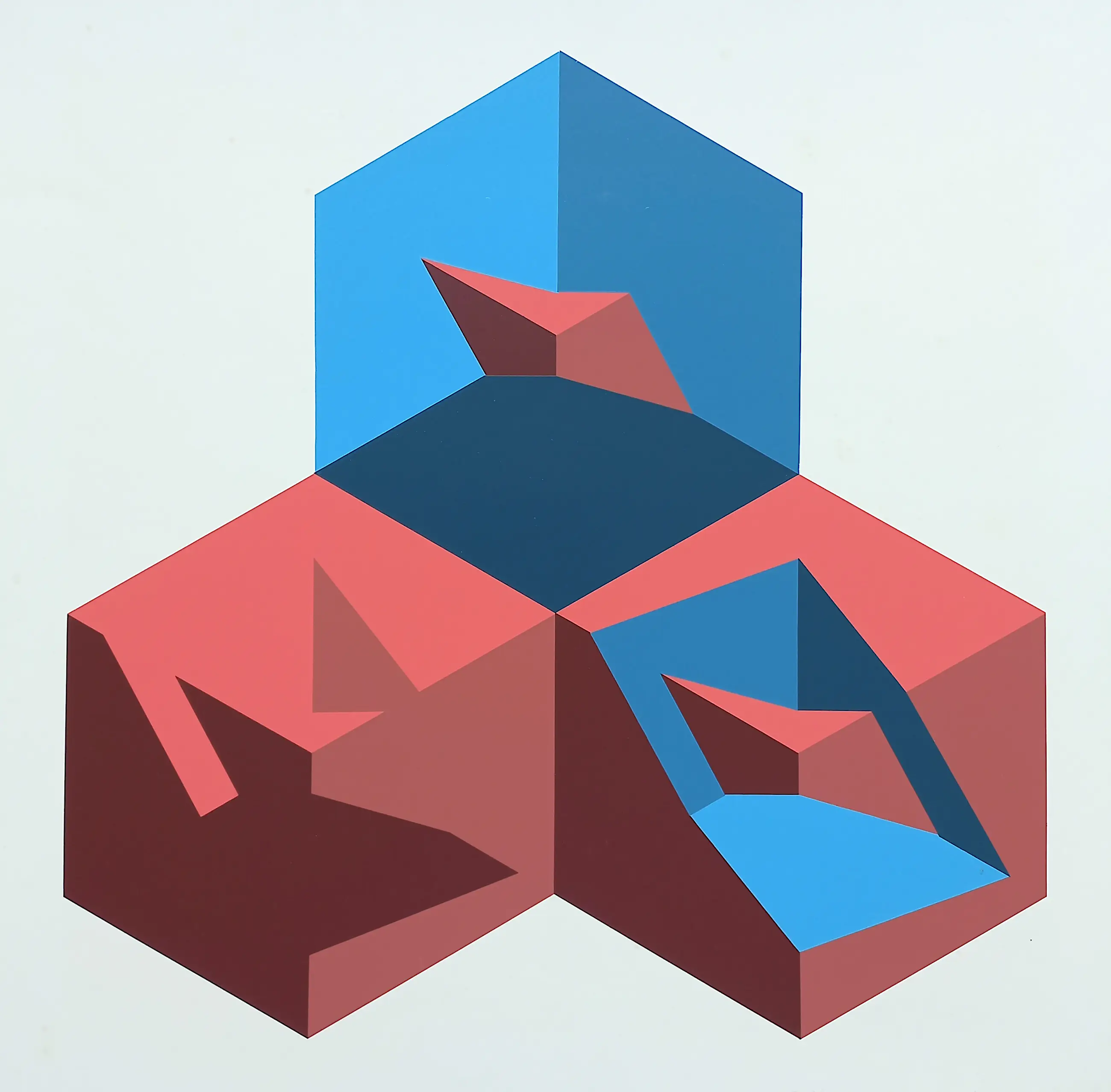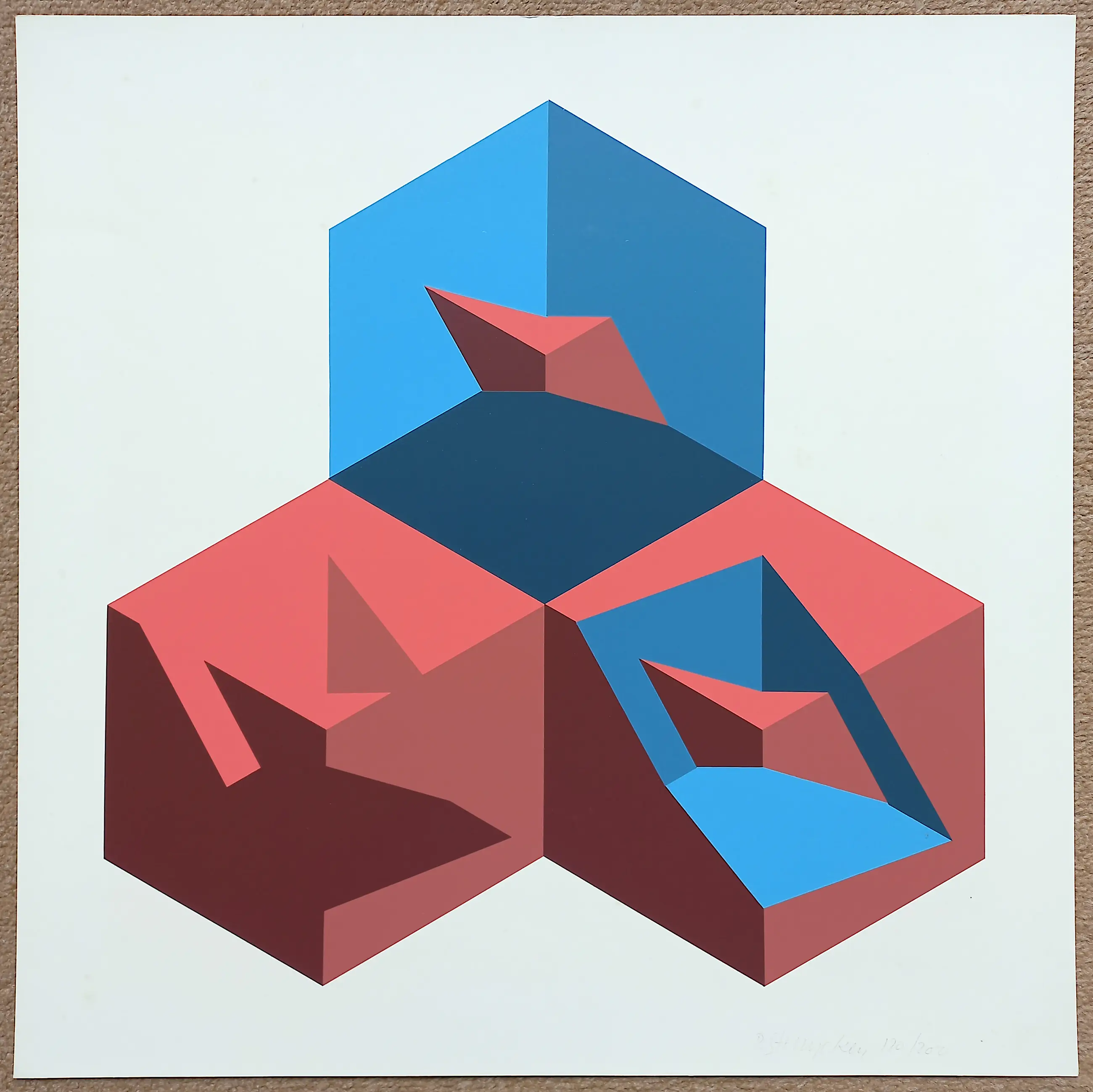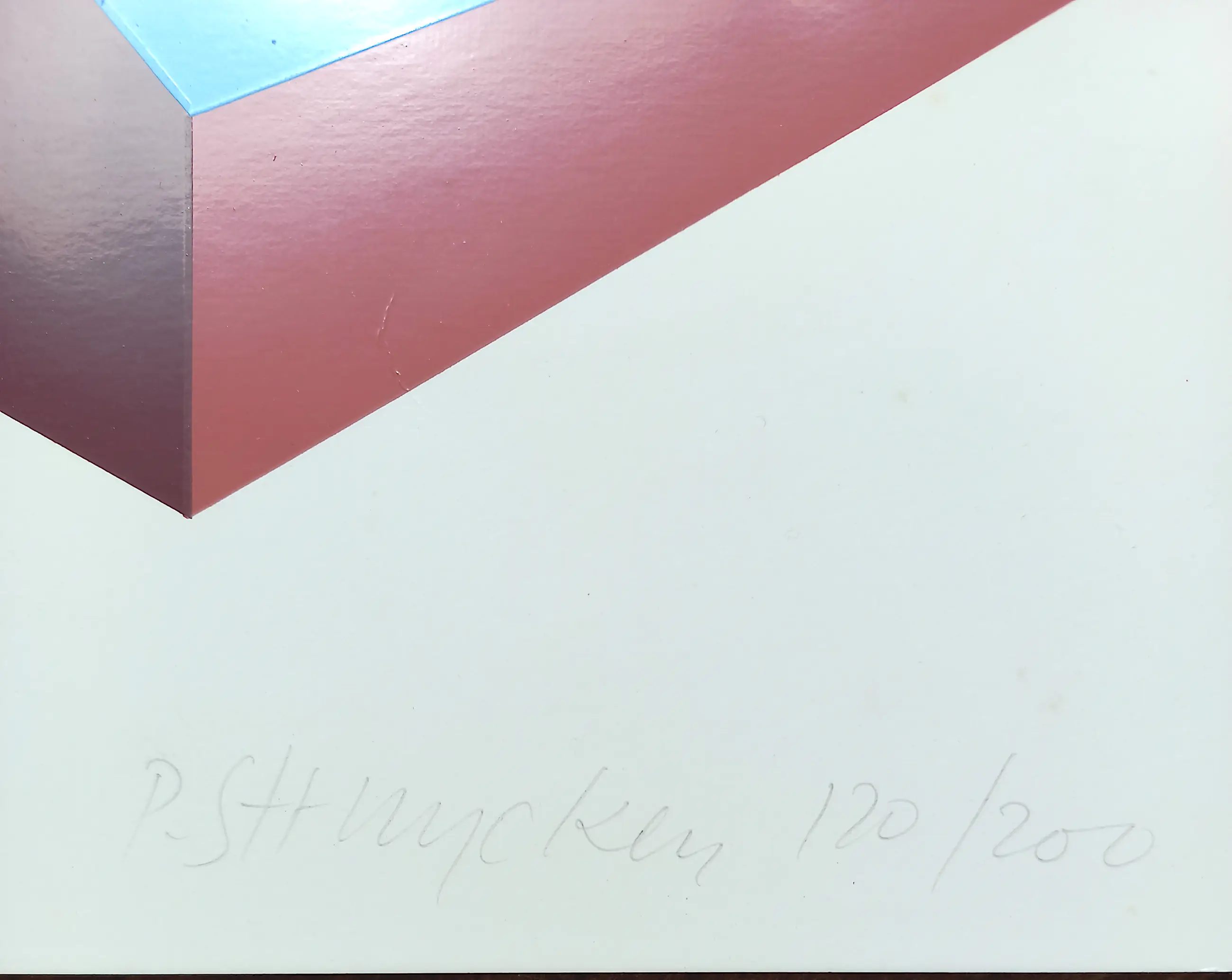 Zeer mooie zeefdruk van Peter Struycken. Glansverf gedrukt op glad papier, met potlood gesigneerd en genummerd (120/200). In goede conditie.