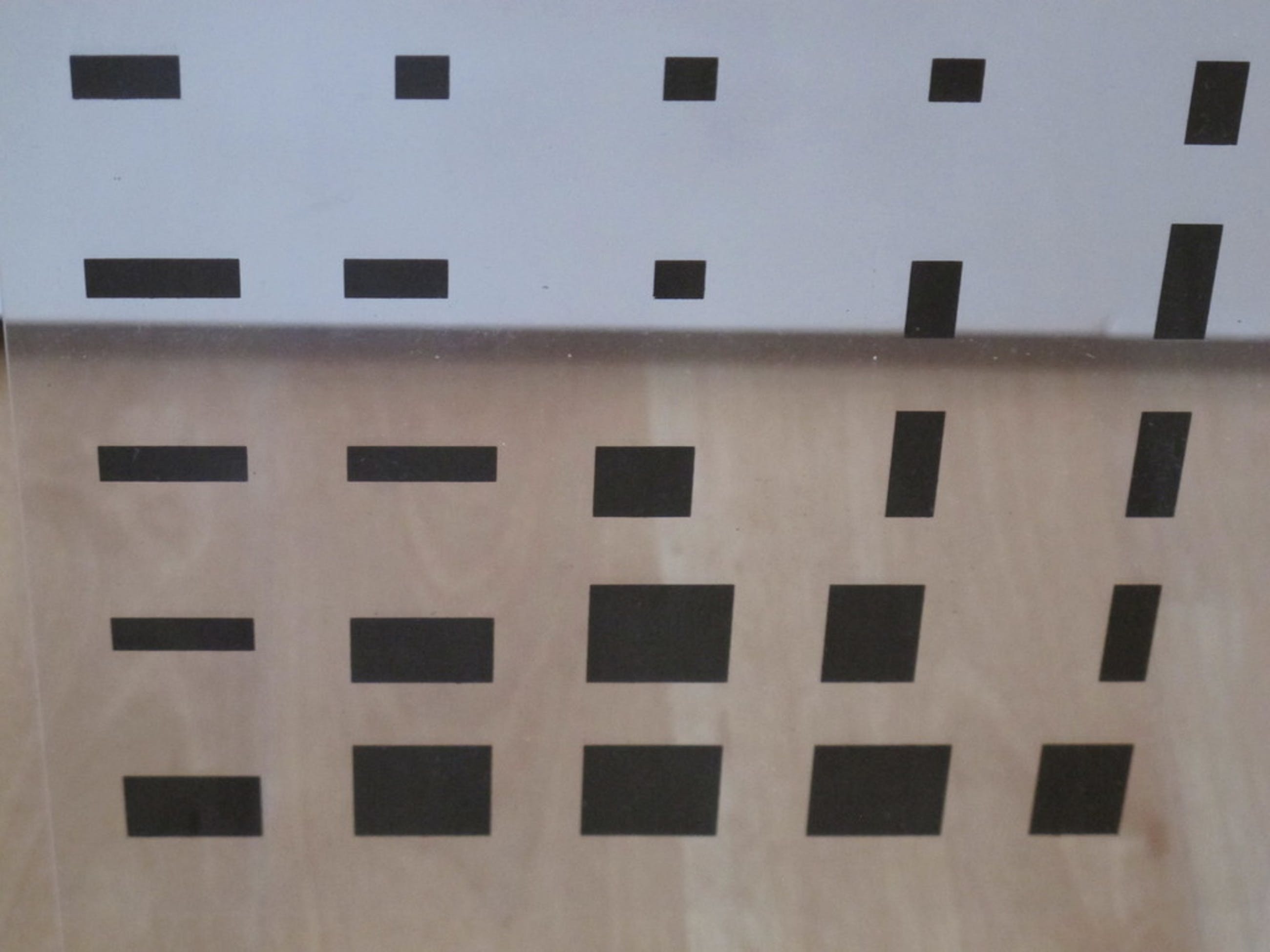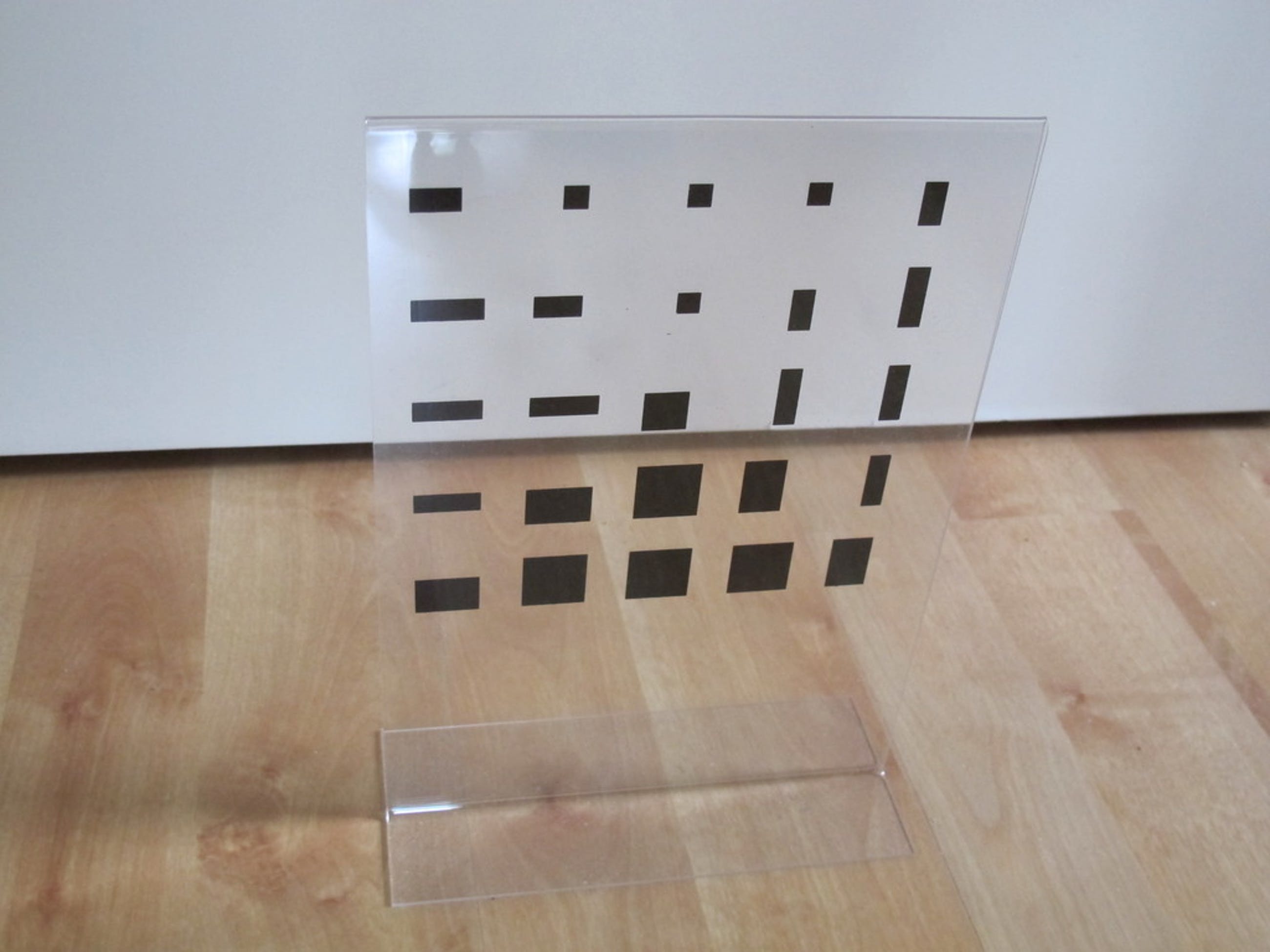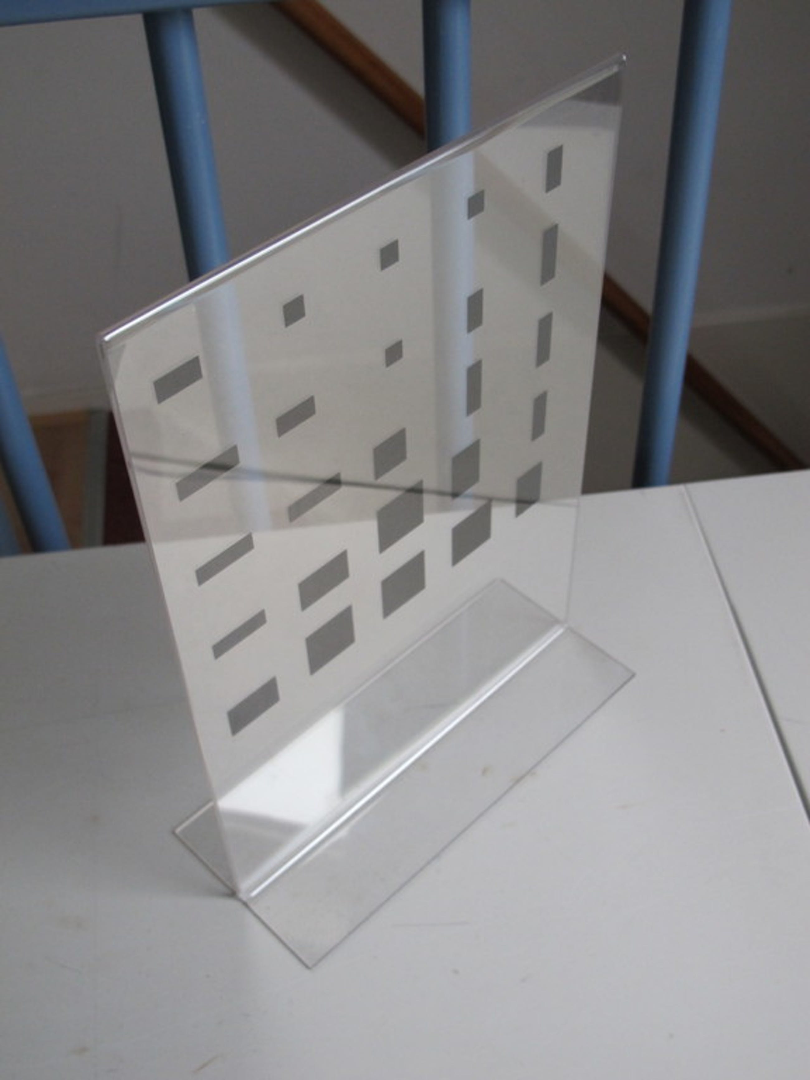 Display met plastiek van Peter Struycken. Ameting incl. voet is 30 x 21 cm. Plastiek is 21 x 21 cm.