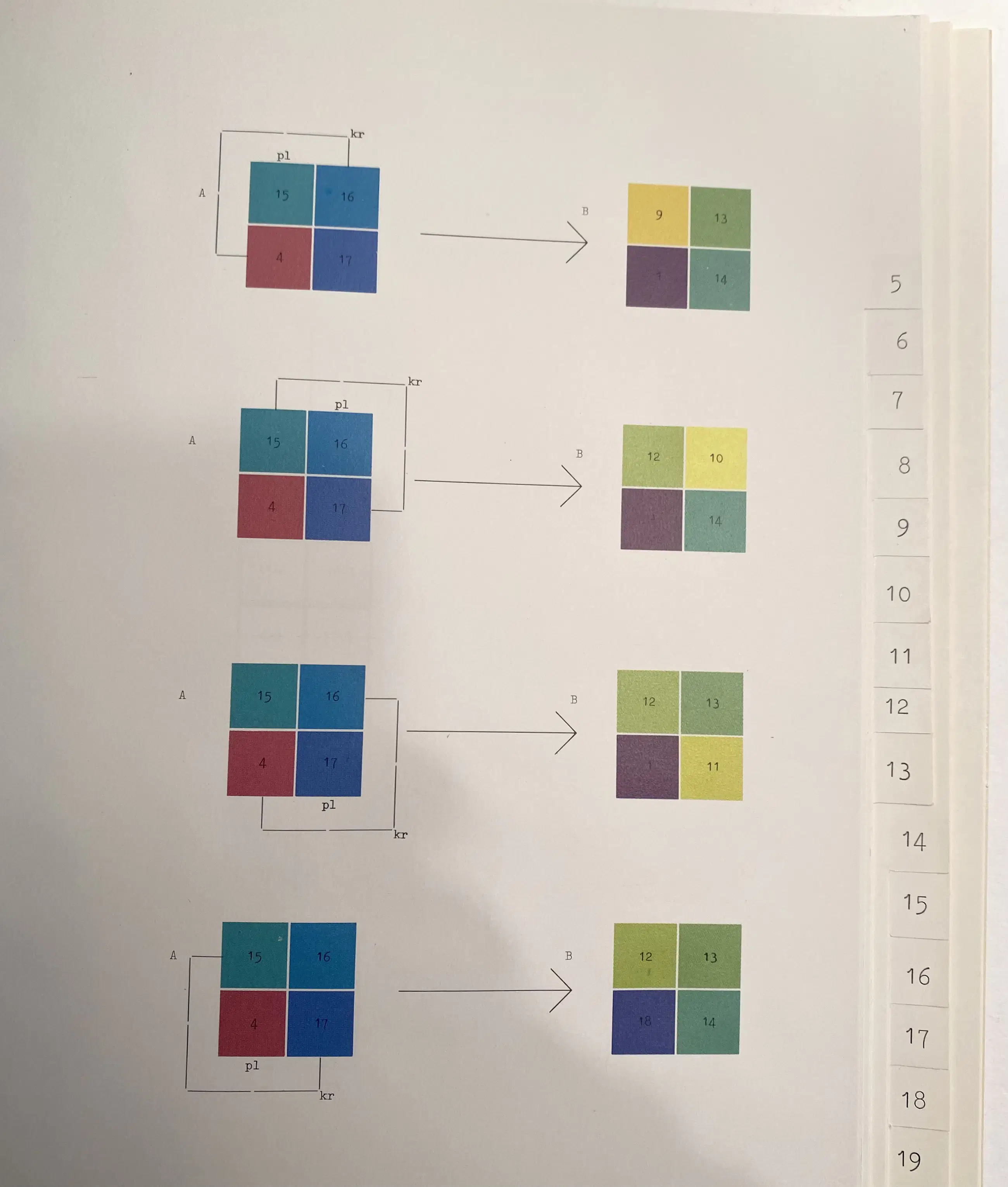 Kleur systeem bladen, genummerde tabbladen 1 t/m 19