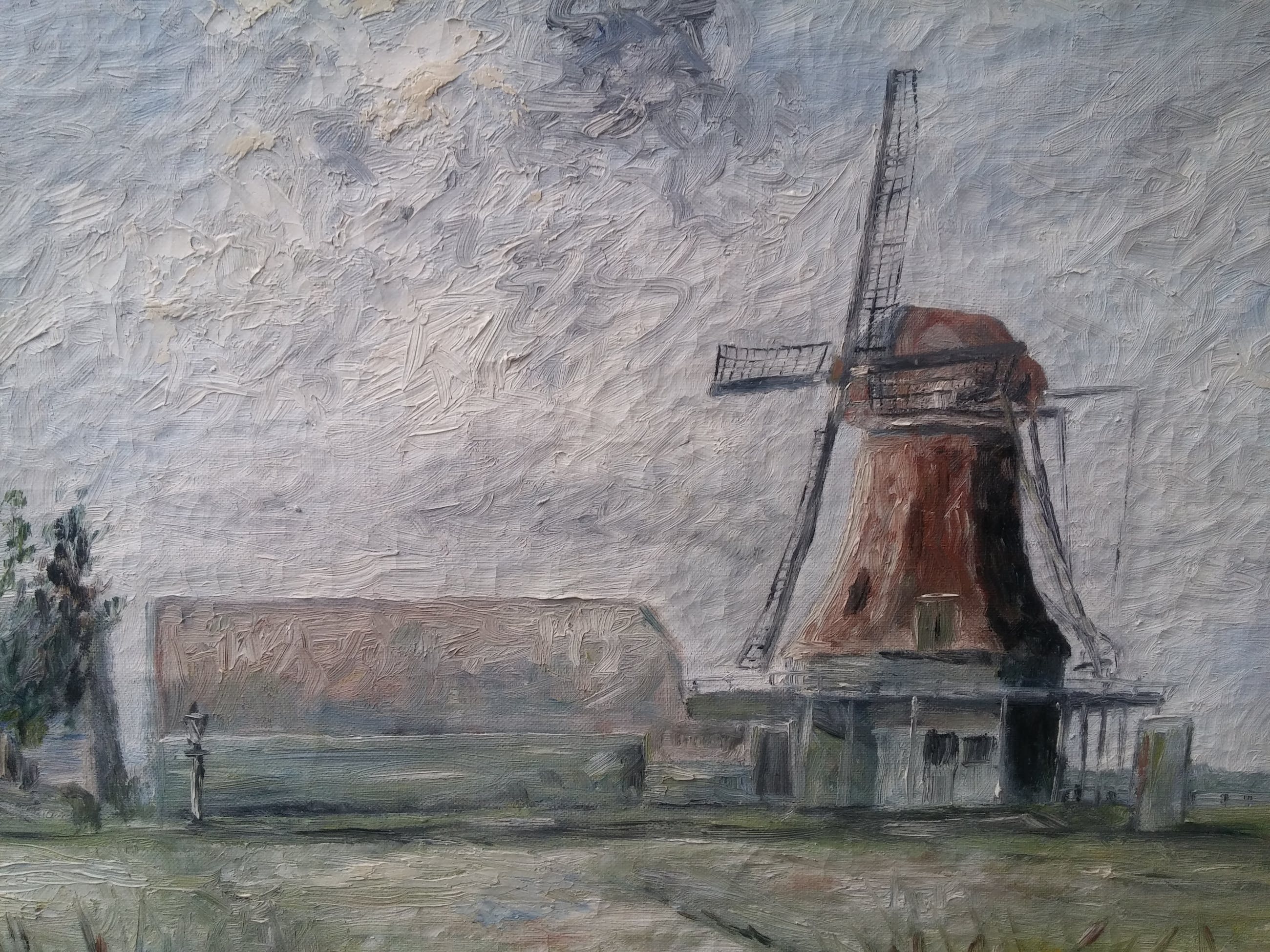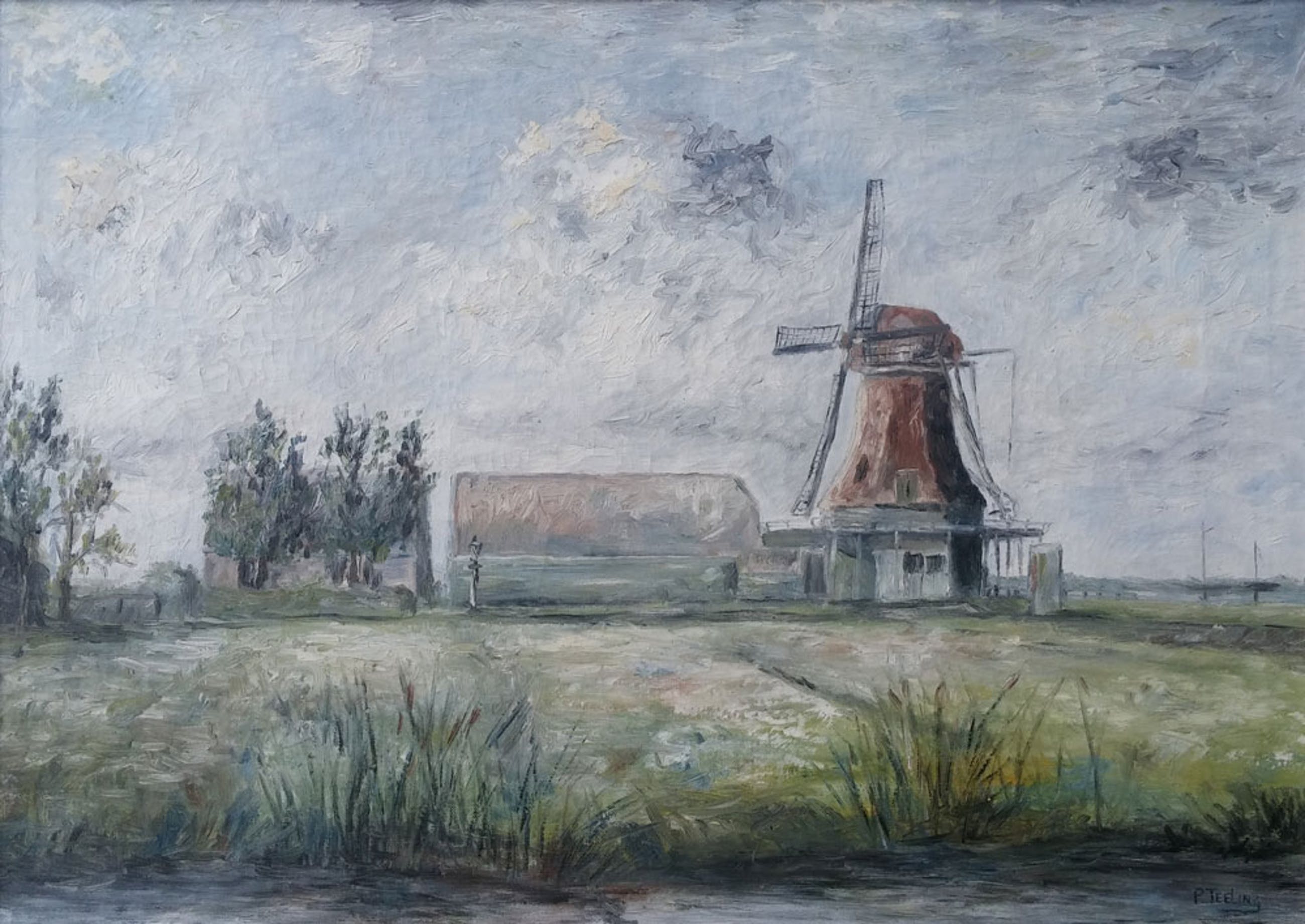 Molen ‘De Bakker’ te Westknollendam geschilderd in 1962 door Peter Teeling. Indertijd zat hij op de Rijksnormaalschool voor Teekenonderwijzers (Amsterdam).