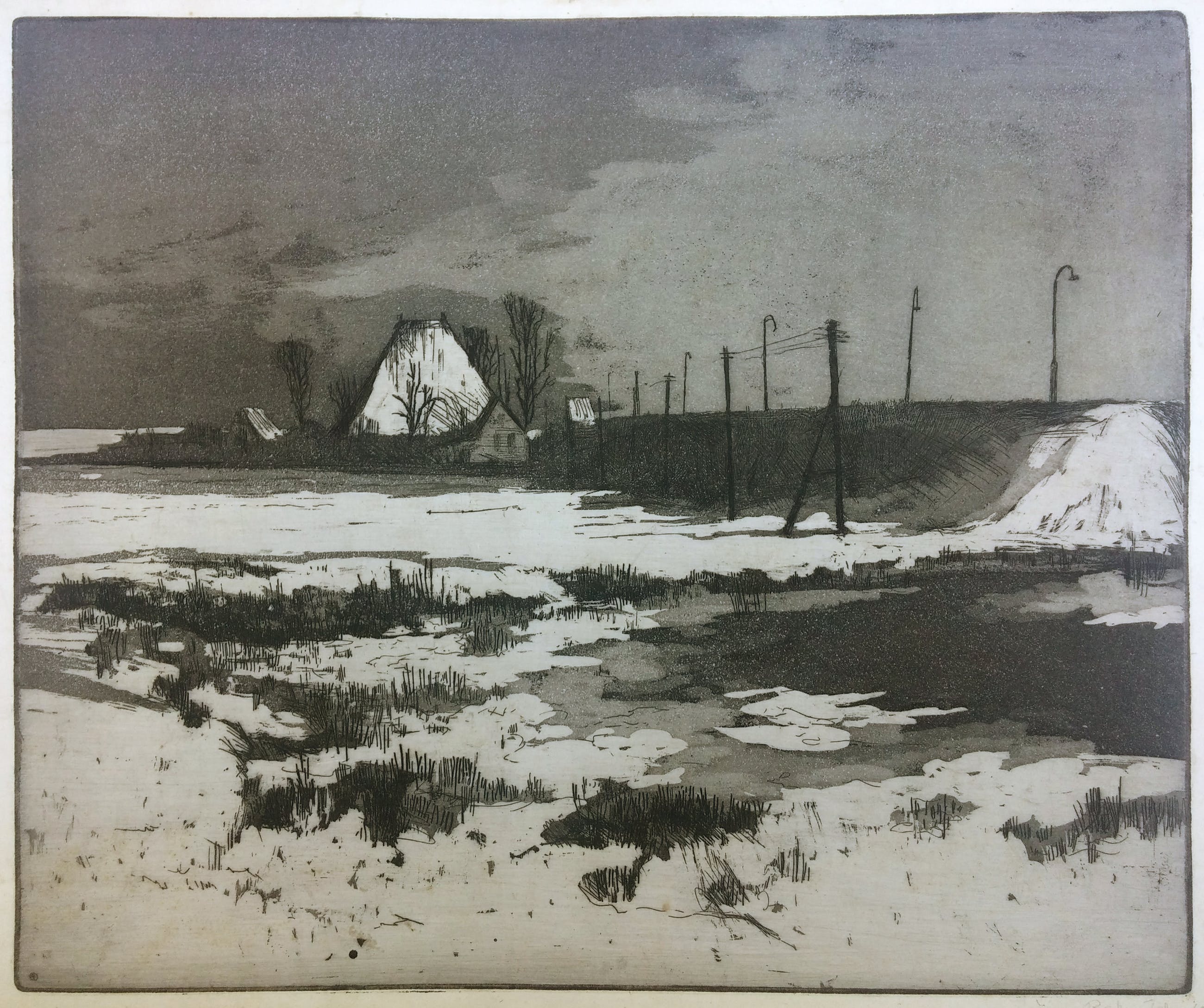 Ets/aquatint van Peter Teeling, uit de nalatenschap van Hans Kuyt. Waarschijnlijk is dit de boerderij van Nachbar waar Kuyt zijn atelier had.