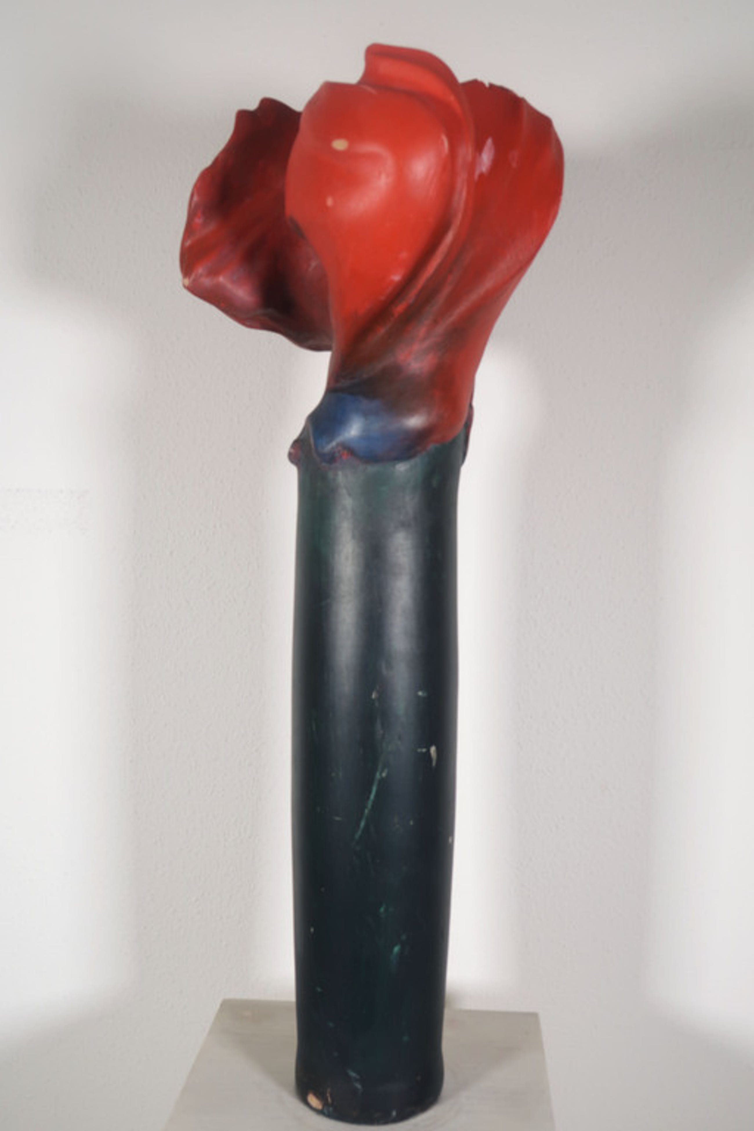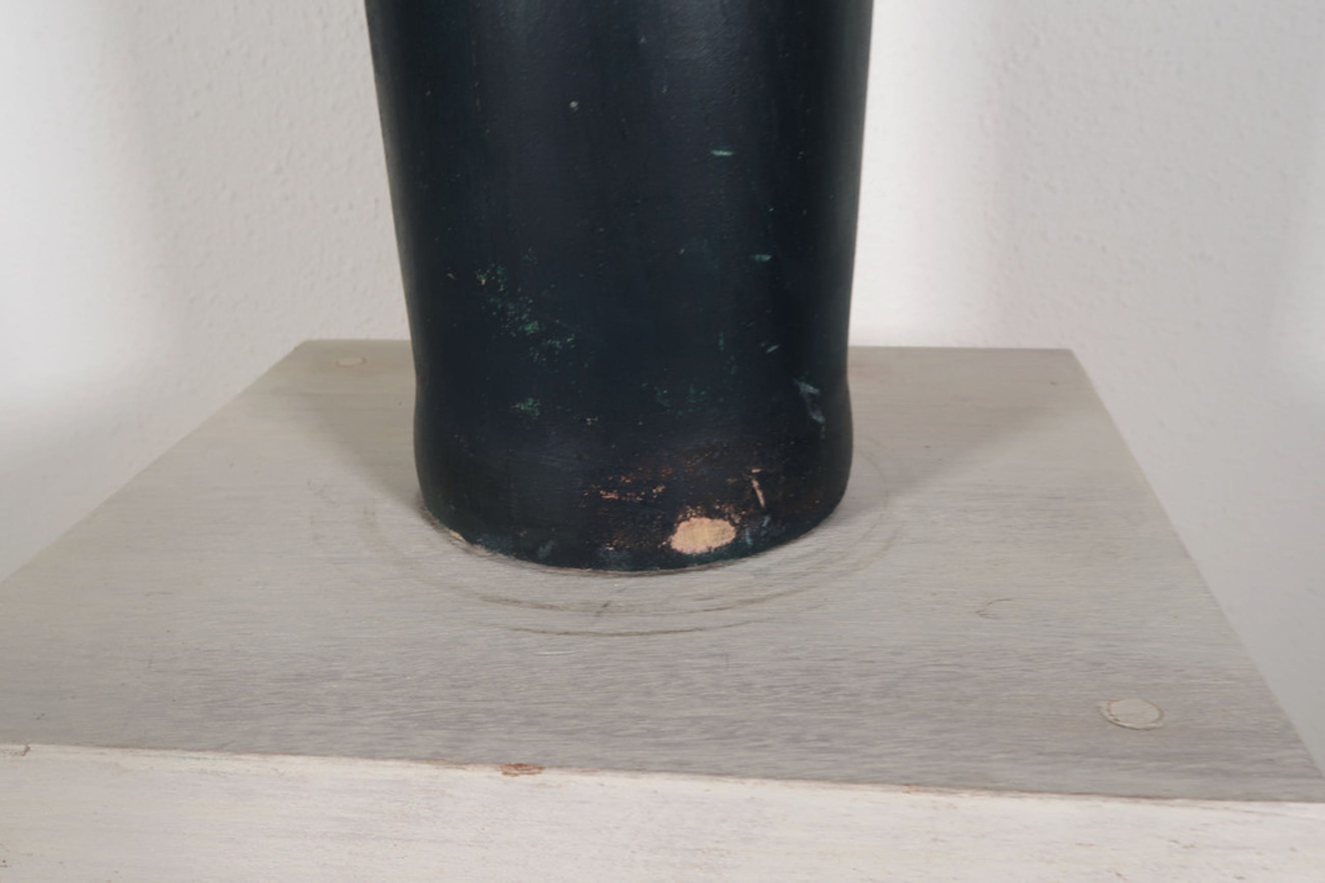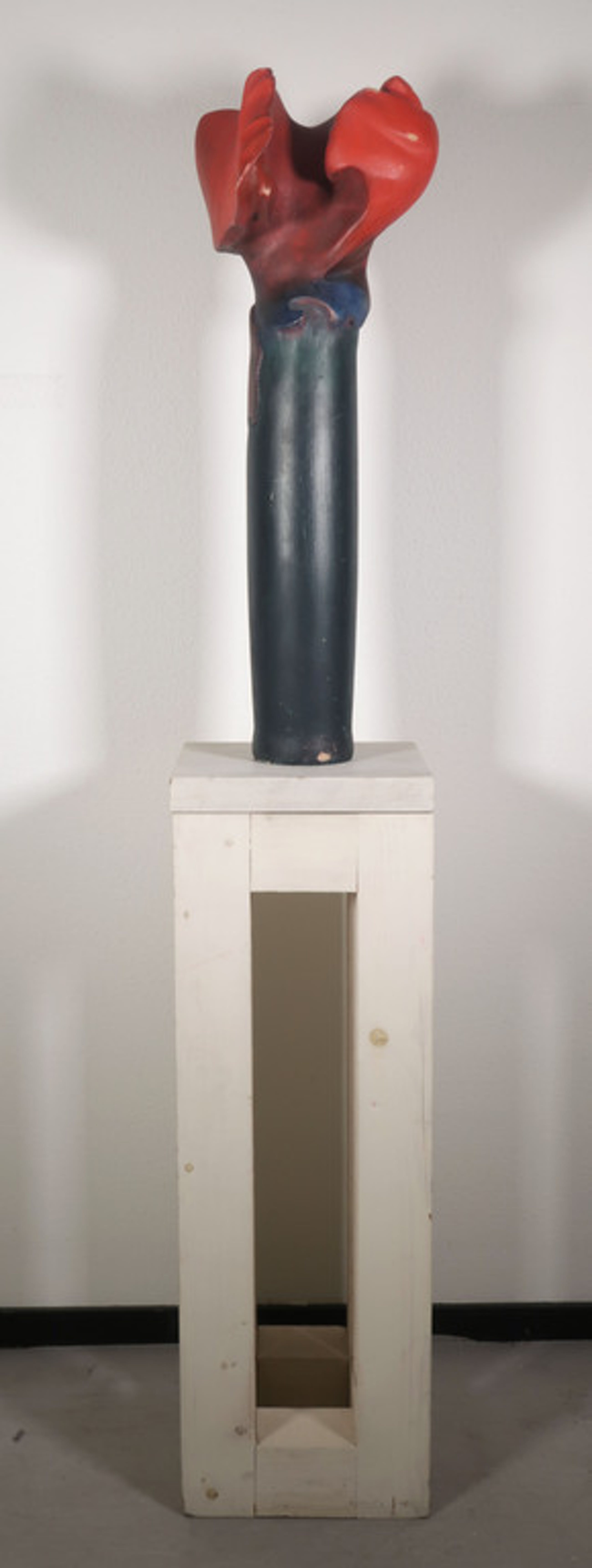 Conditie kunstwerk: In redelijke/goede staat. Het beeld is bovenop beschadigd (zie foto) en met meerdere lichtere beschadigingen/verfverlies over het beeld verspreid. Vandaar de lage inzet.