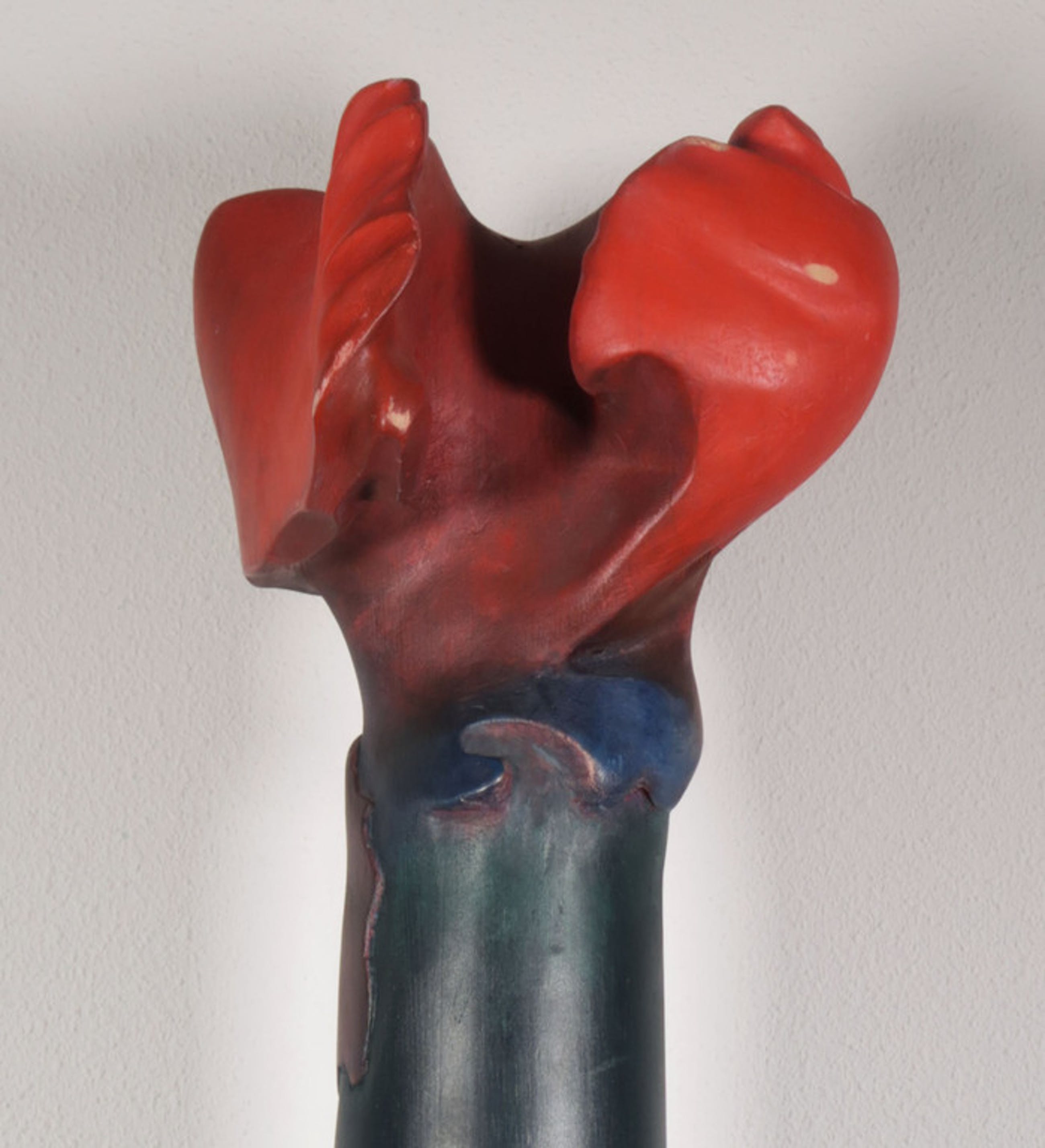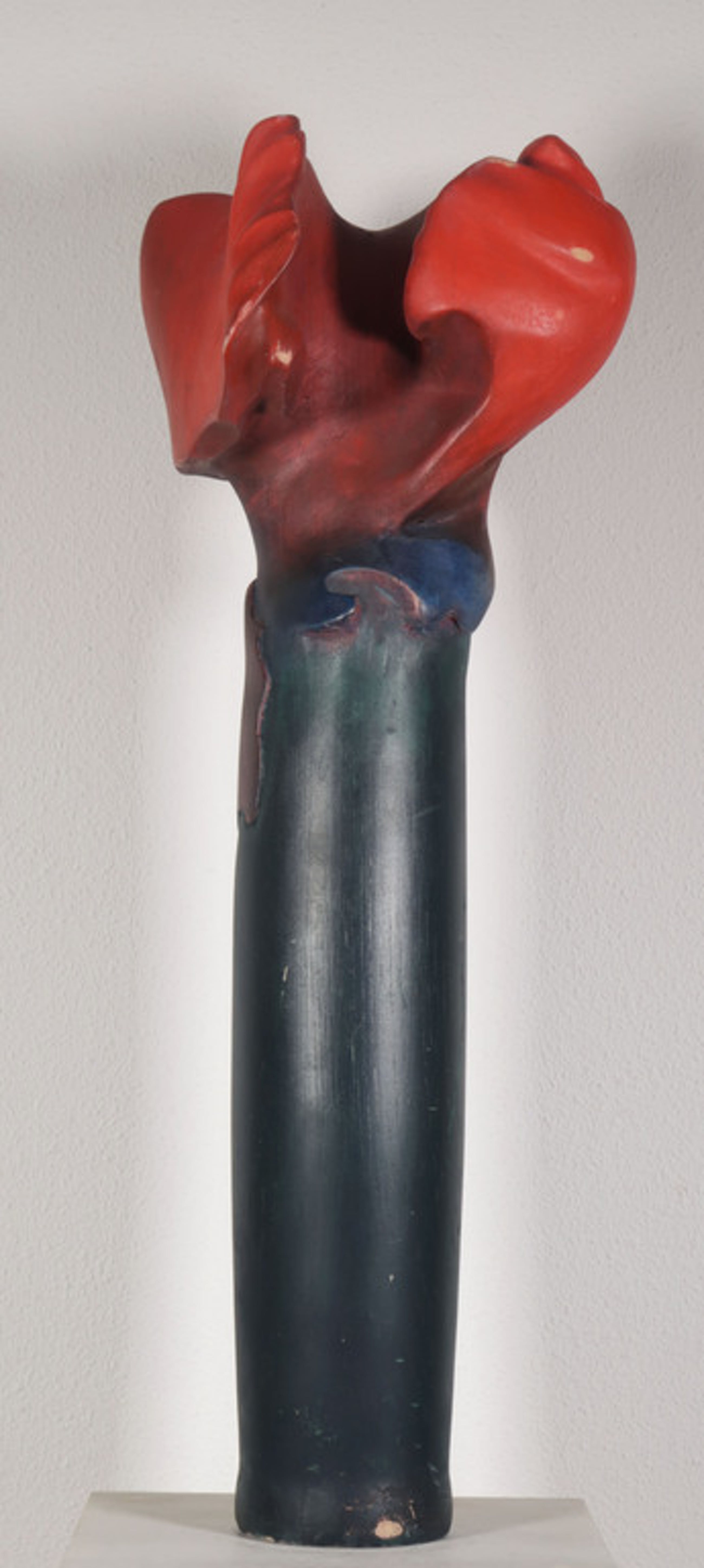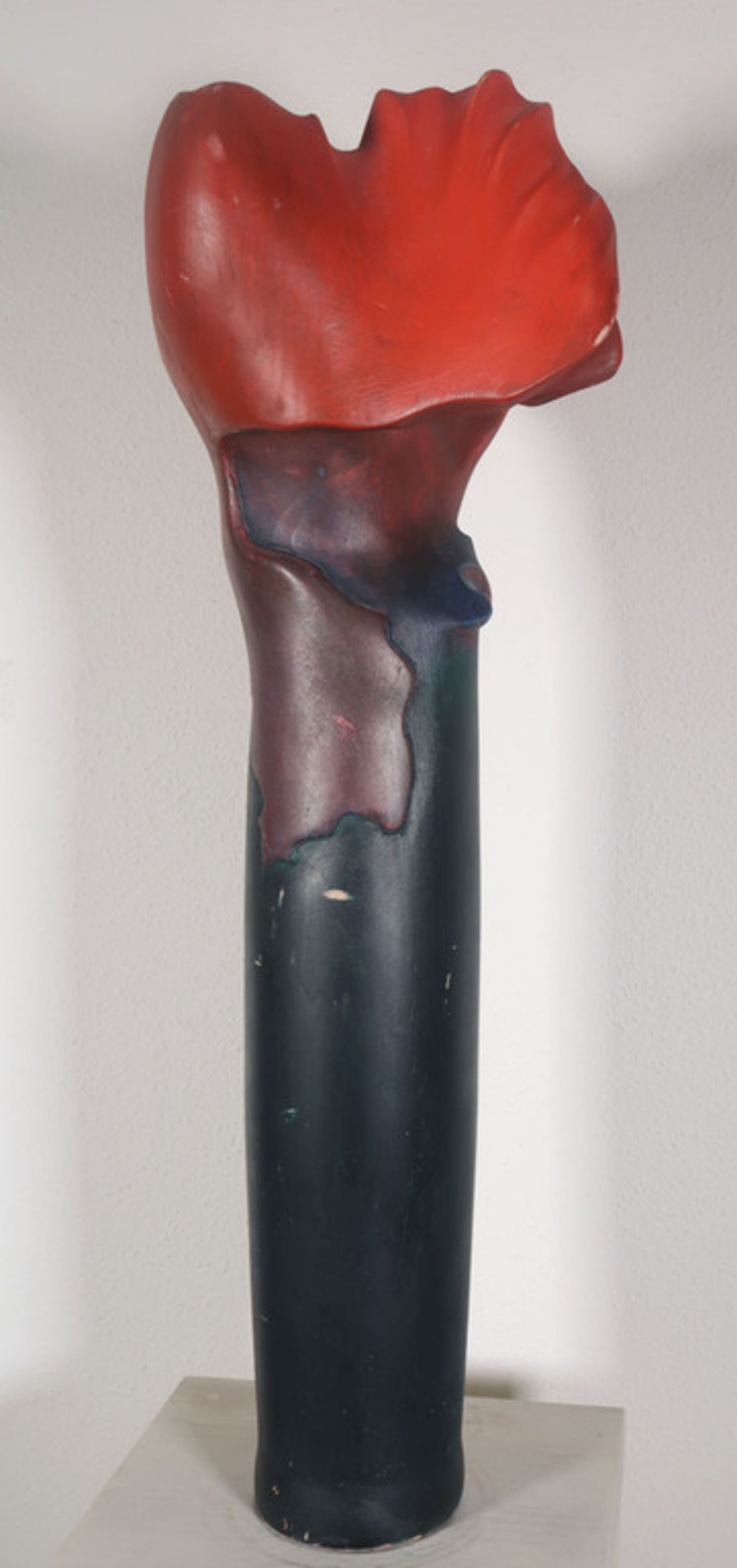 Conditie kunstwerk: In redelijke/goede staat. Het beeld is bovenop beschadigd (zie foto) en met meerdere lichtere beschadigingen/verfverlies over het beeld verspreid. Vandaar de lage inzet.