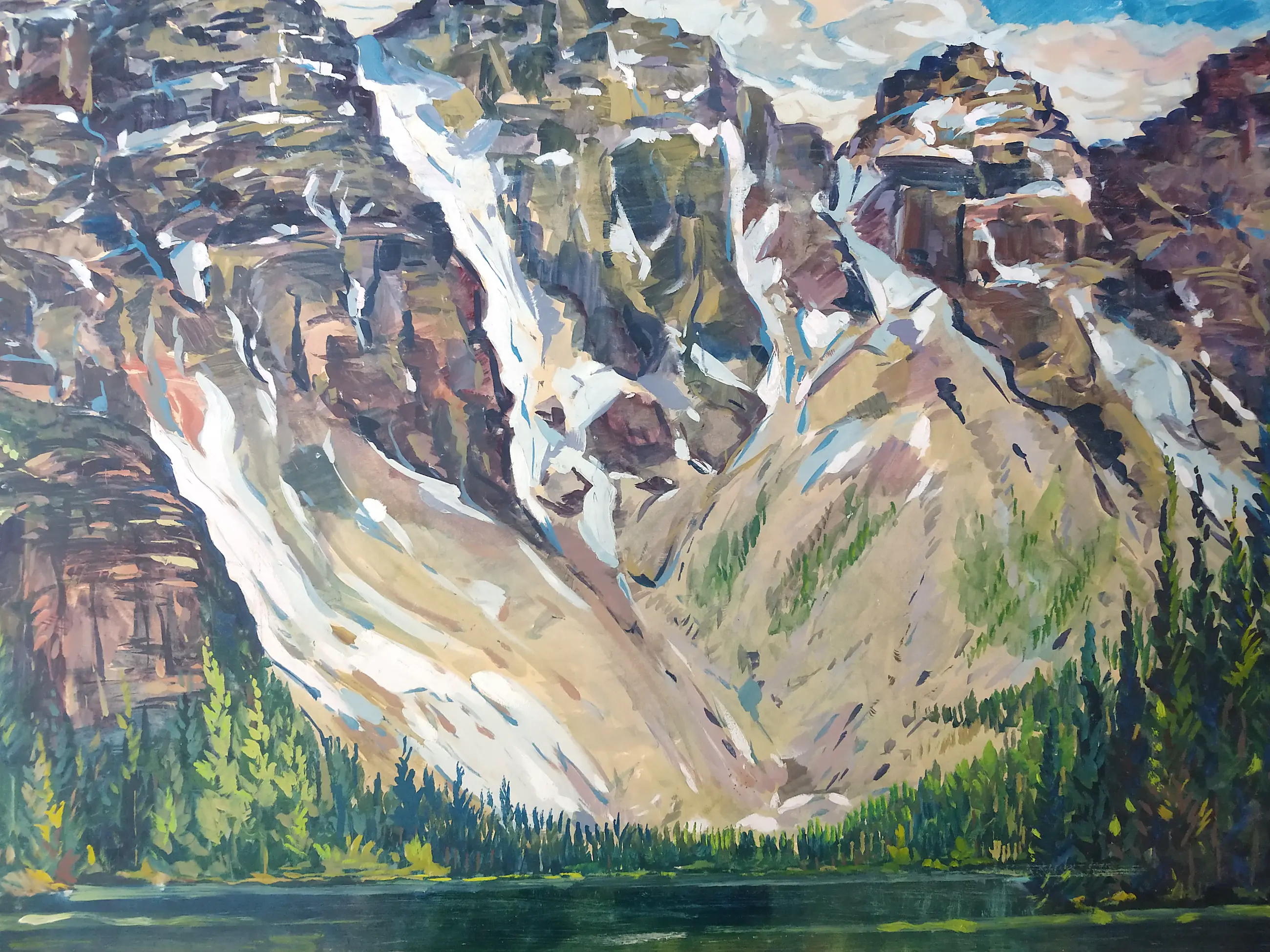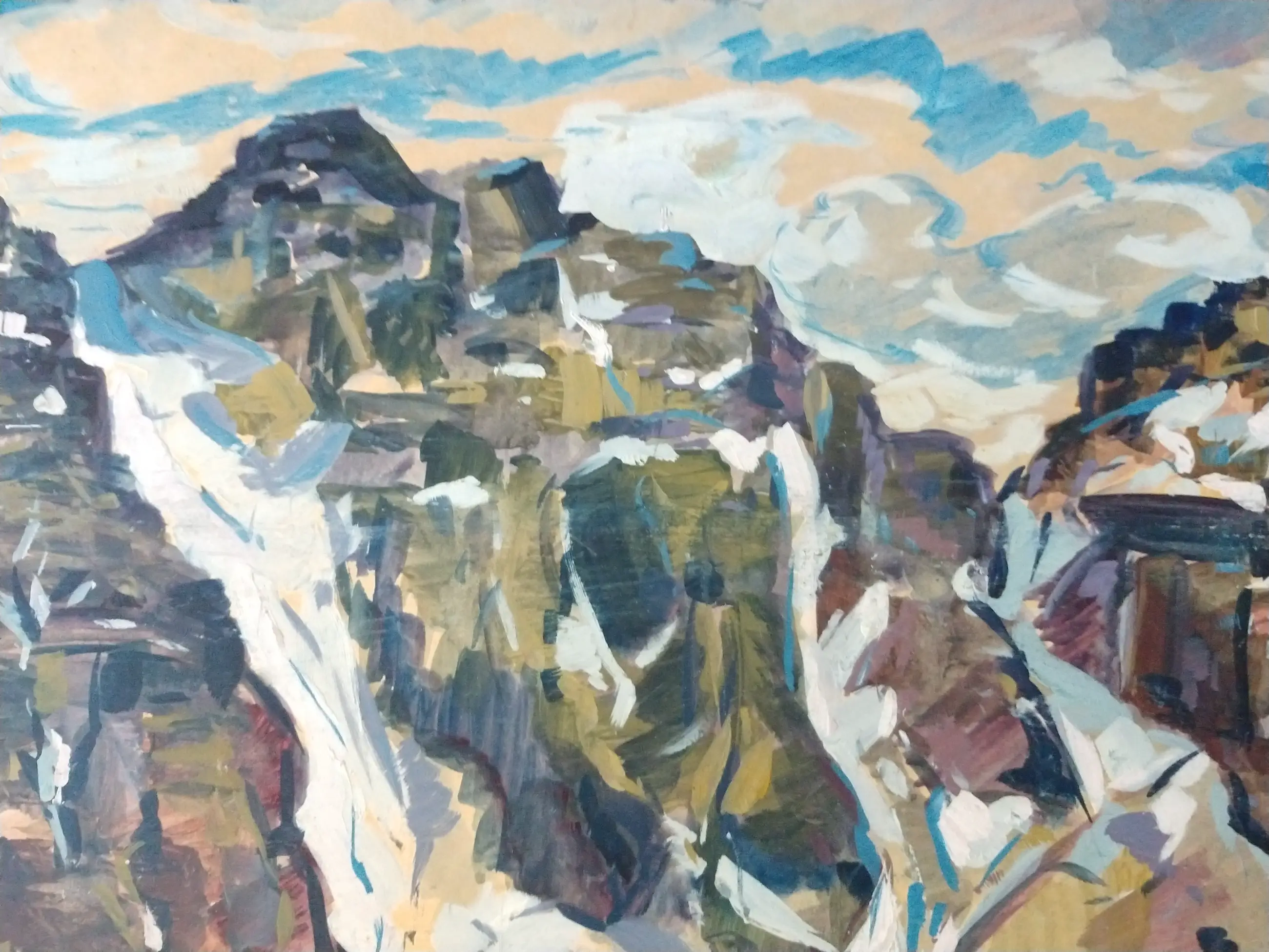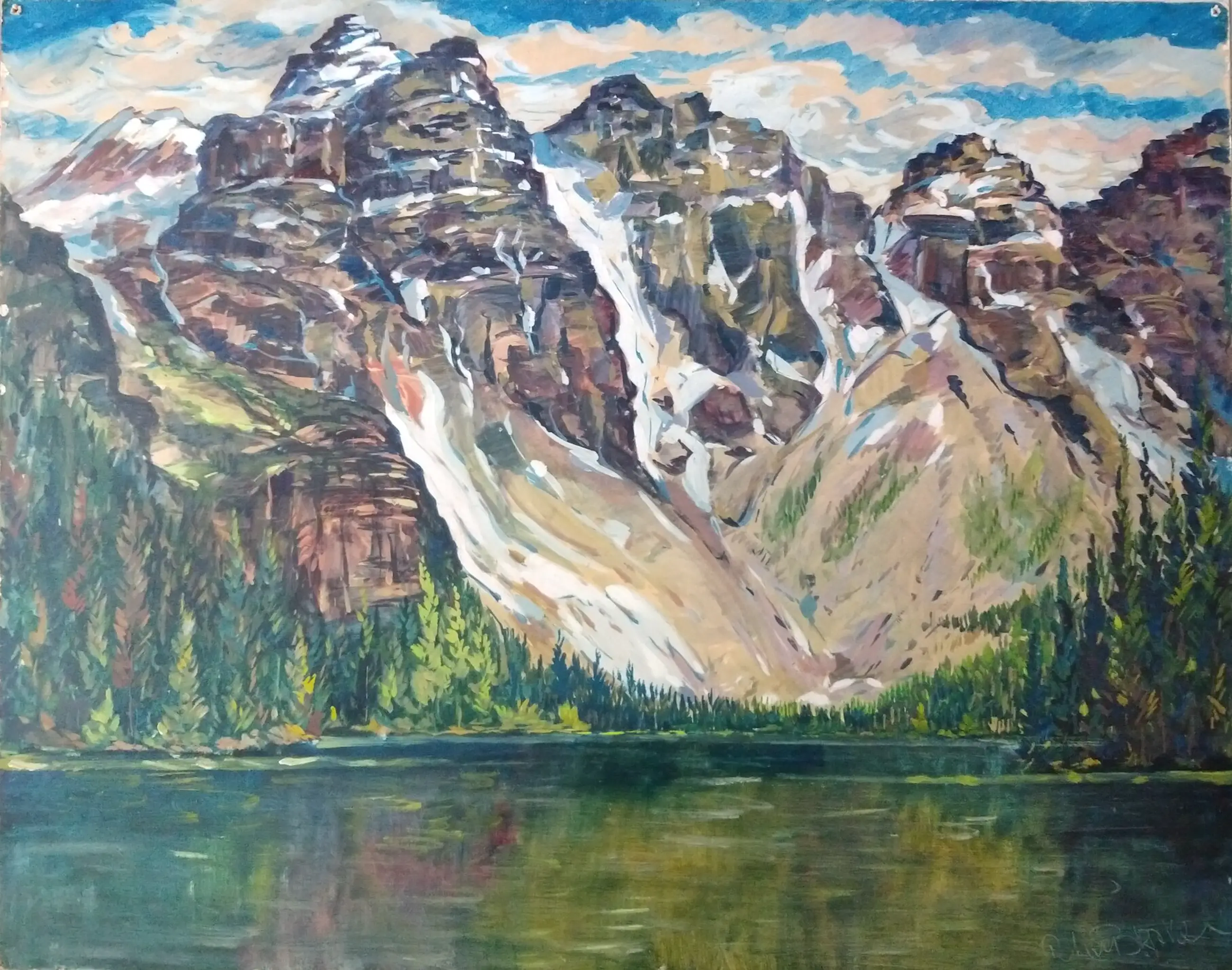 Peter van den Braken (1896-1979). Bergketen aan zee (mogelijk Gardameer te Italië. Olieverf op board. Zeer groot schilderij. Afmeting 73x92 cm. Het schilderij is in goede staat met kleine ouderdomssporen aan de randen.