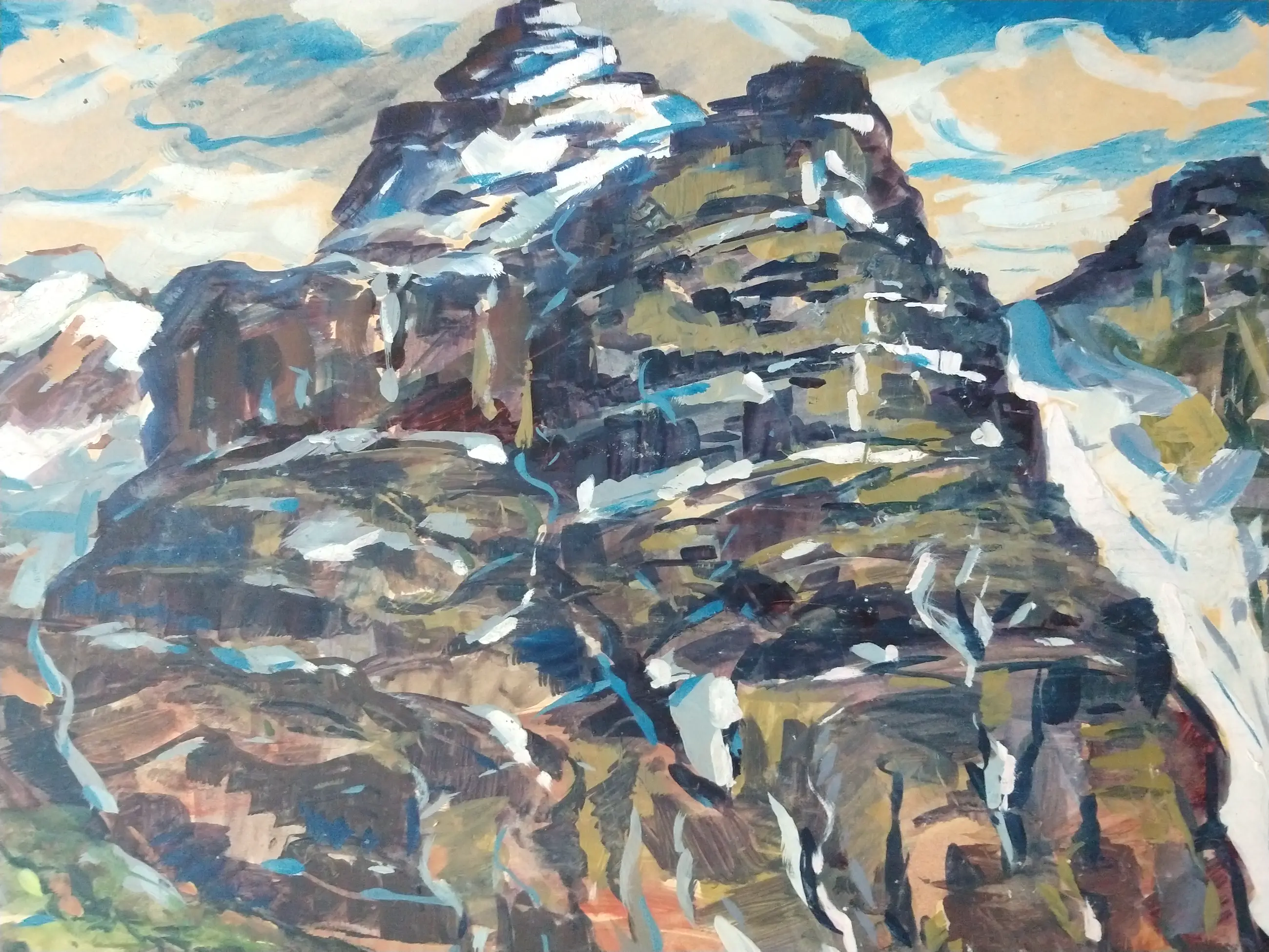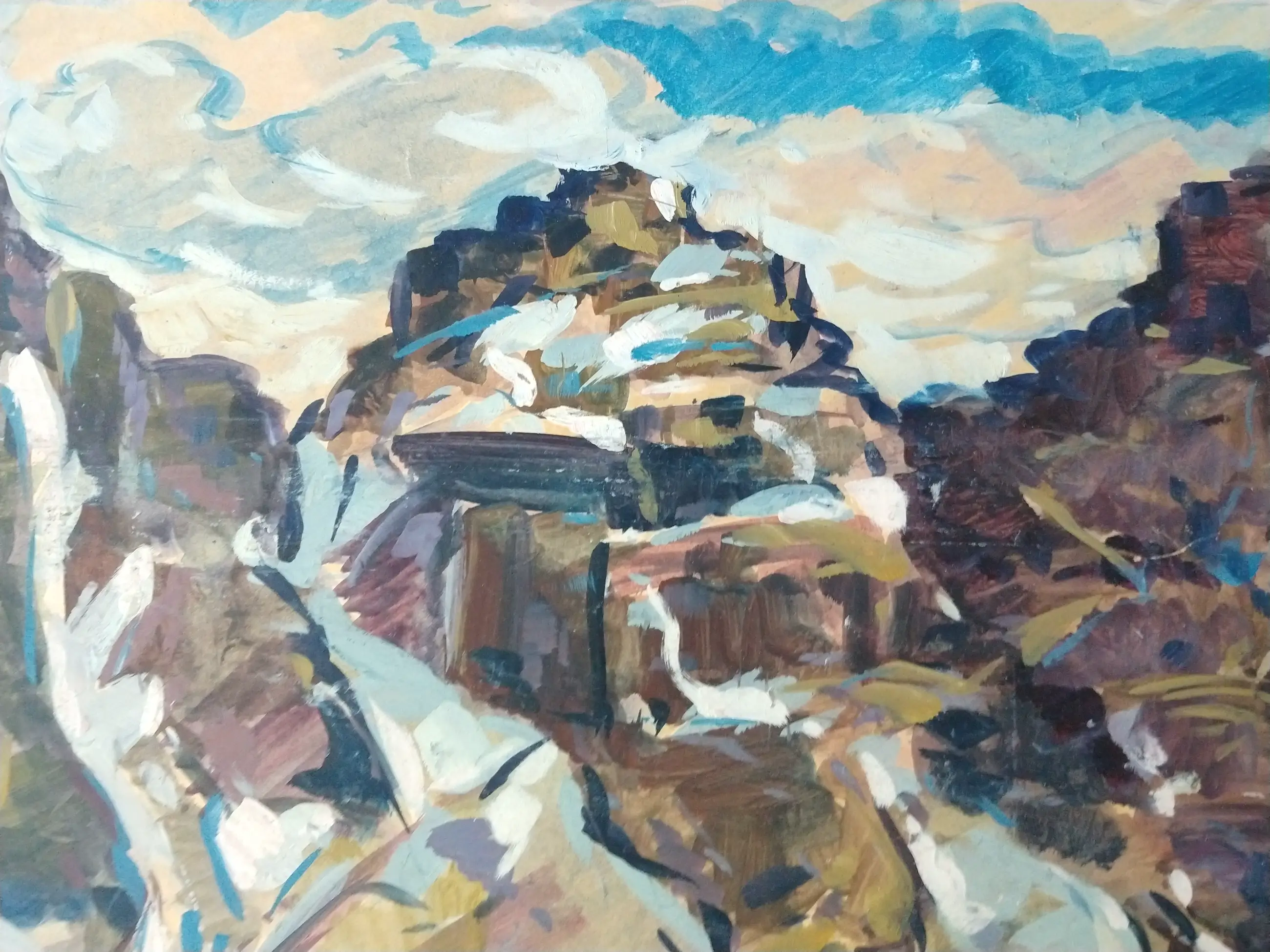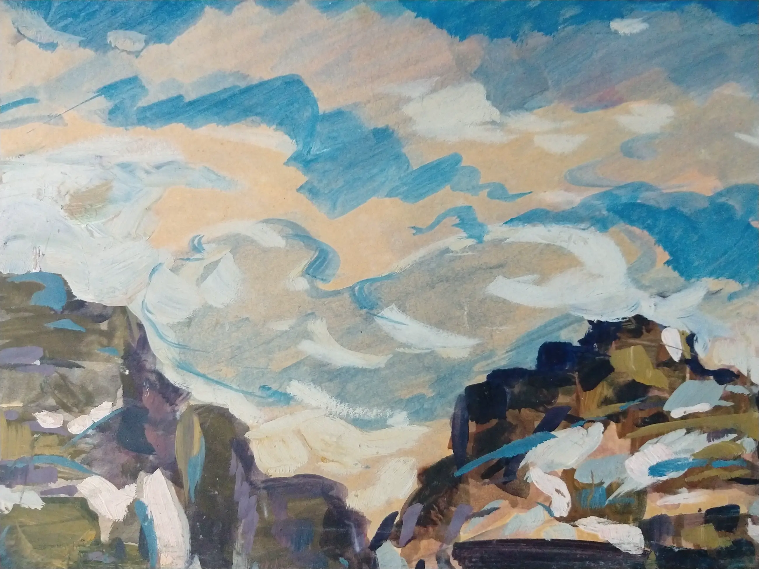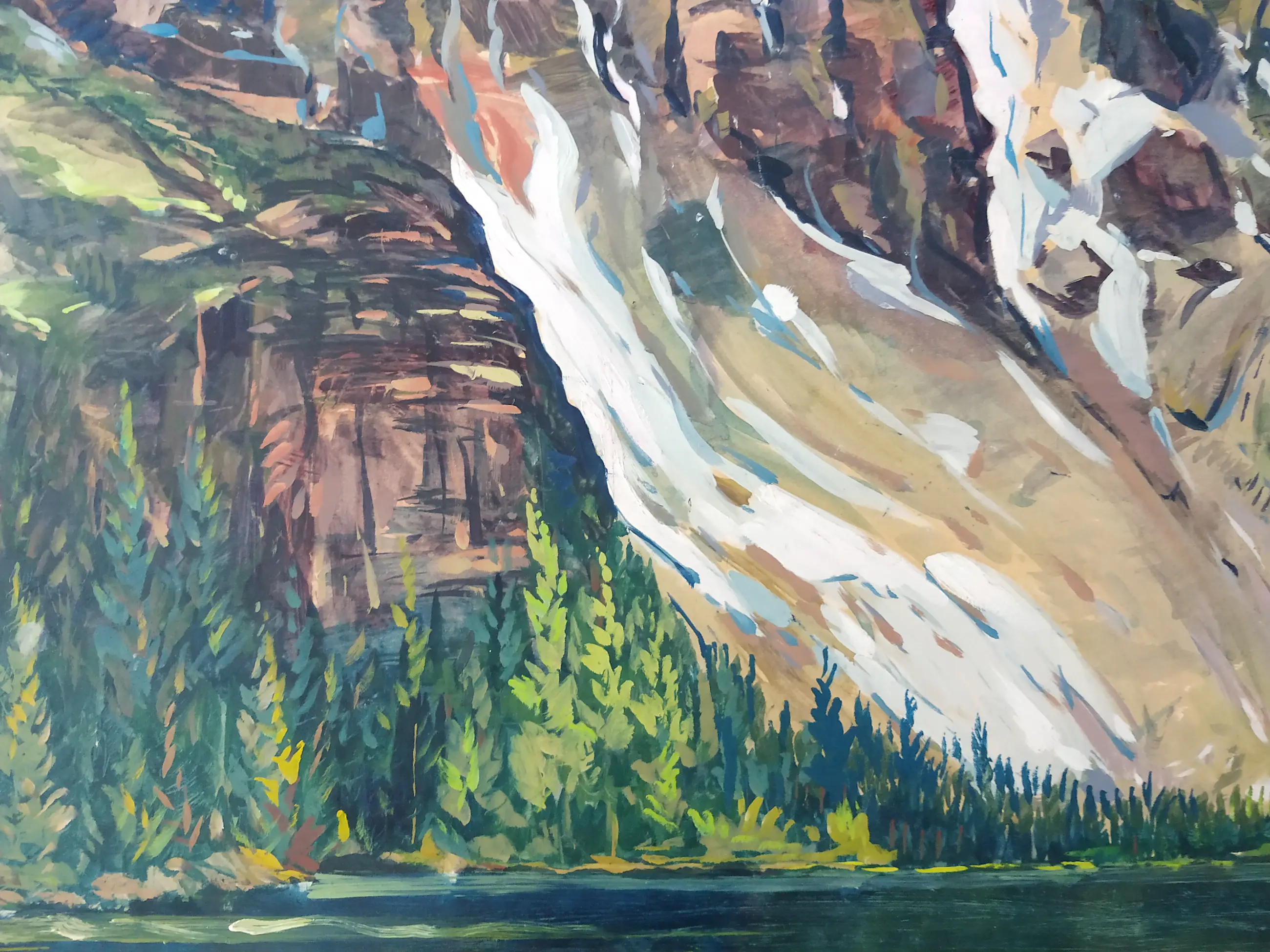 Peter van den Braken (1896-1979). Bergketen aan zee (mogelijk Gardameer te Italië. Olieverf op board. Zeer groot schilderij. Afmeting 73x92 cm. Het schilderij is in goede staat met kleine ouderdomssporen aan de randen.