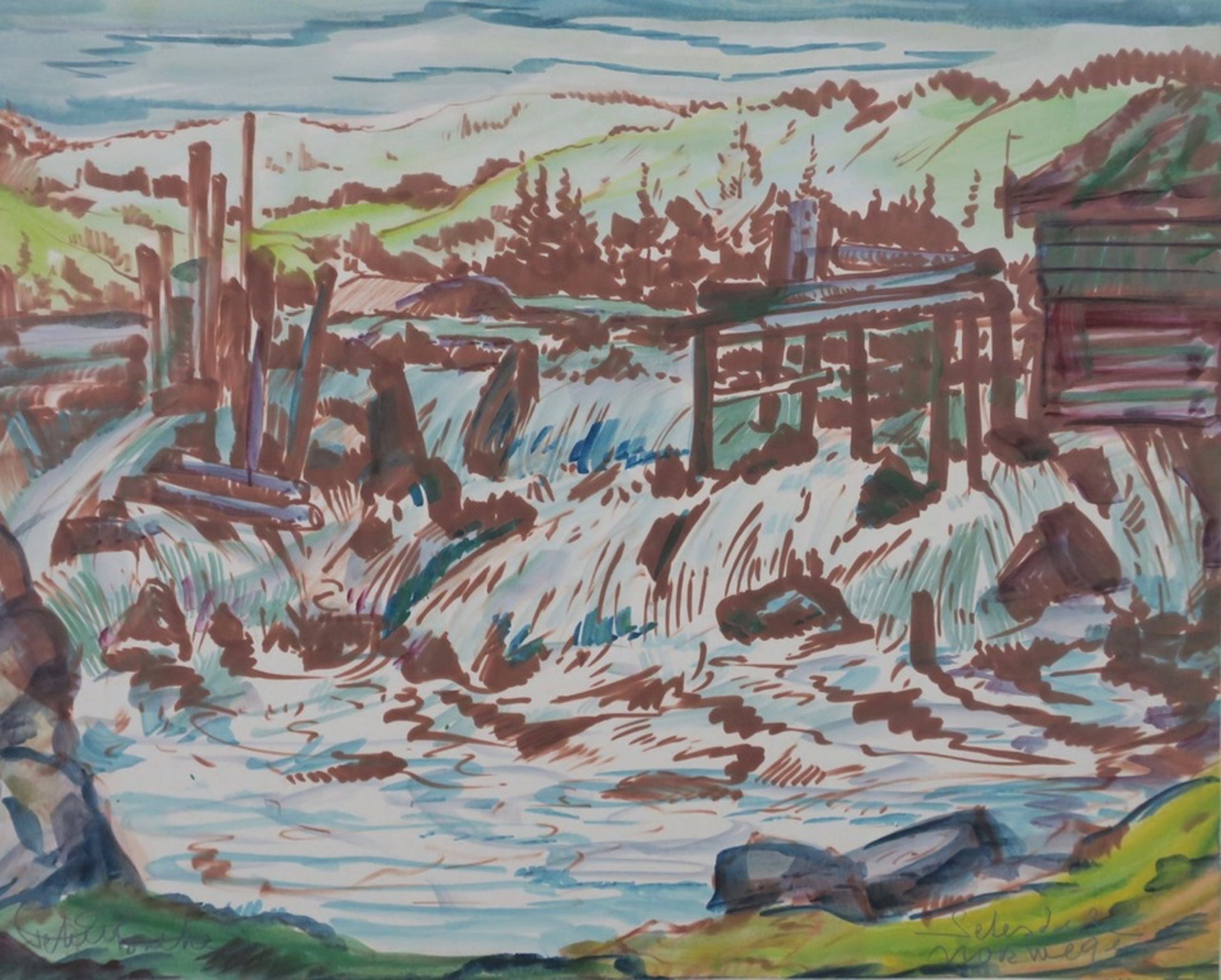 Materiaal: Stift en aquarel op papier, bevestigd op stevig onderblad
