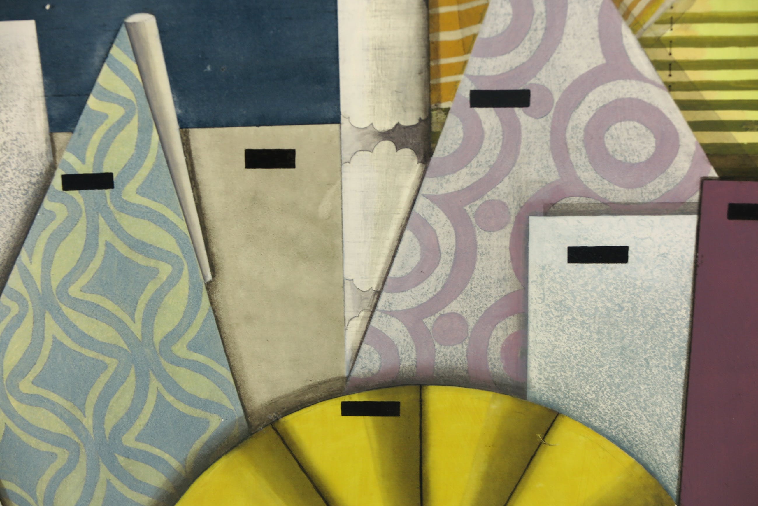| Wat stof/vuil in de lijst. Let op: de witte vlekjes in het midden van het beeld zitten op het glas, niet op het werk zelf. | |
