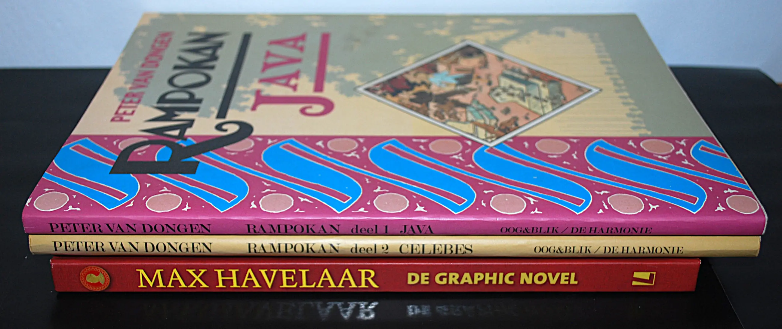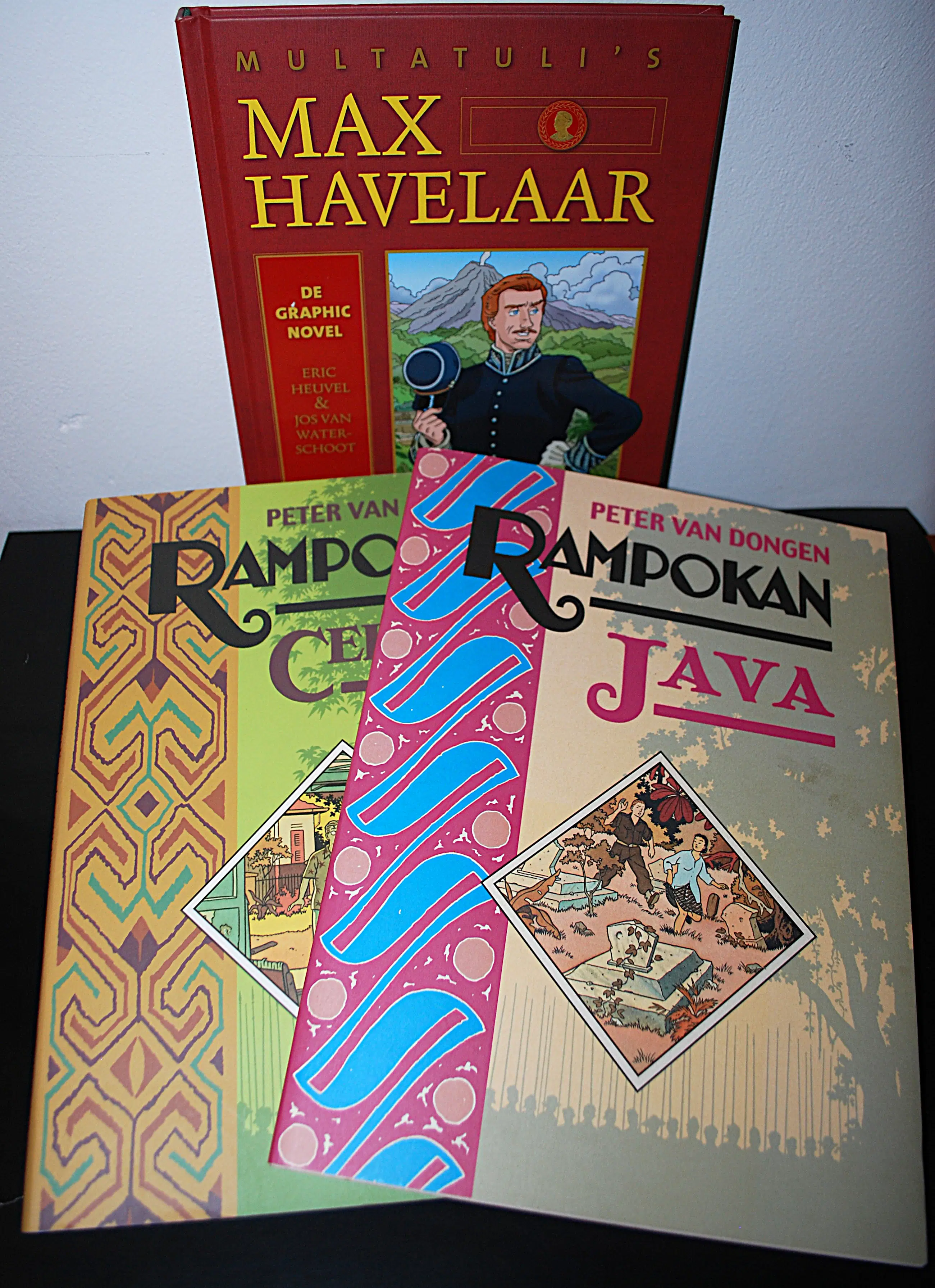 2 prachtig vormgegeven stripromans. Java (deel 1): 3e druk 2005 Celebes (deel 2): 2e druk 2008 Daarbij: Max Havelaar, hardcover beeldroman van Multatuli, getekend door Eric Heuvel. Eerste druk 2020