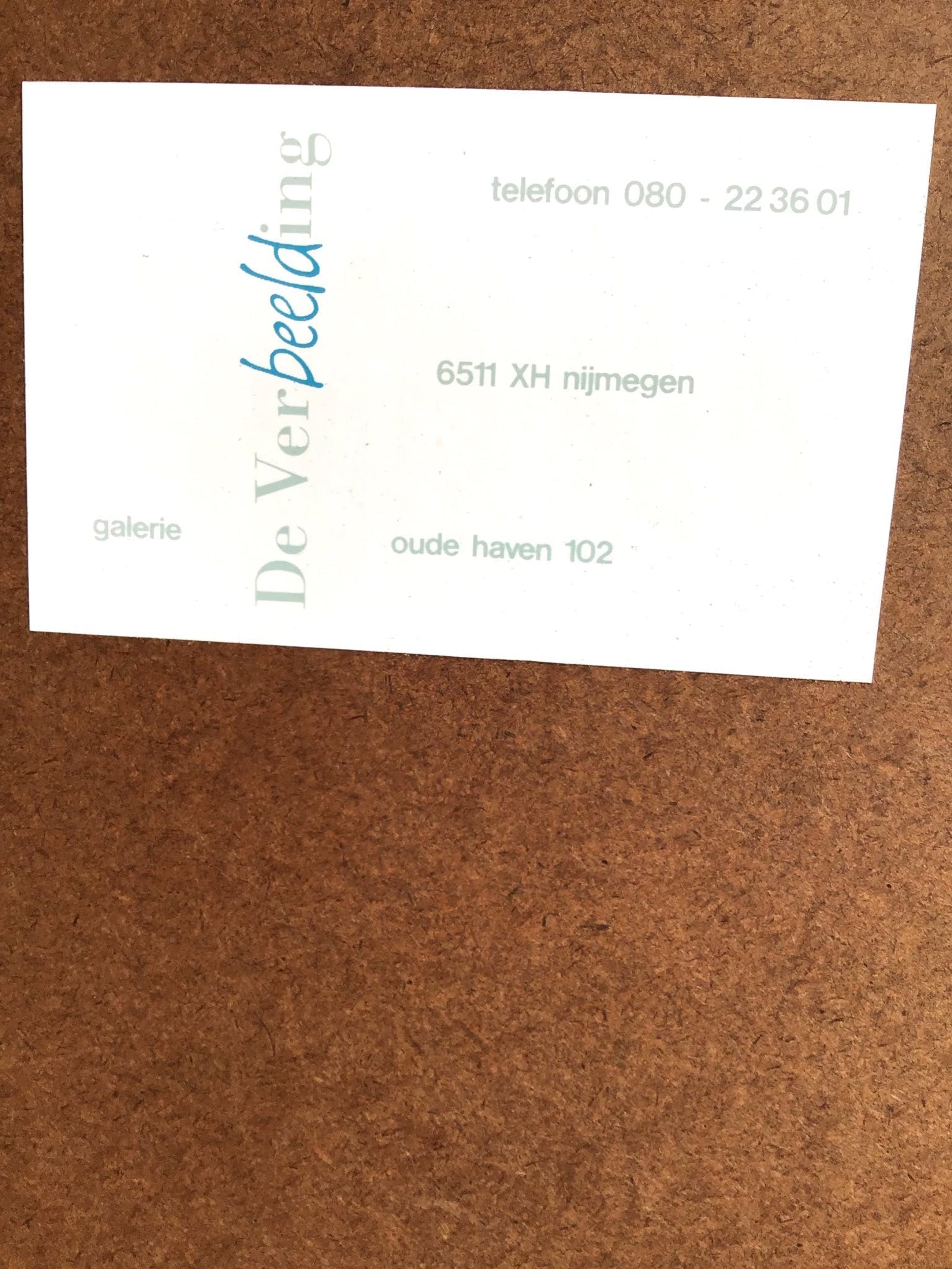 Het werk is af te halen op locatie. Als koper dient u zelf verpakkingsmateriaal mee te nemen. De locatie is: Amstelveen, Nederland