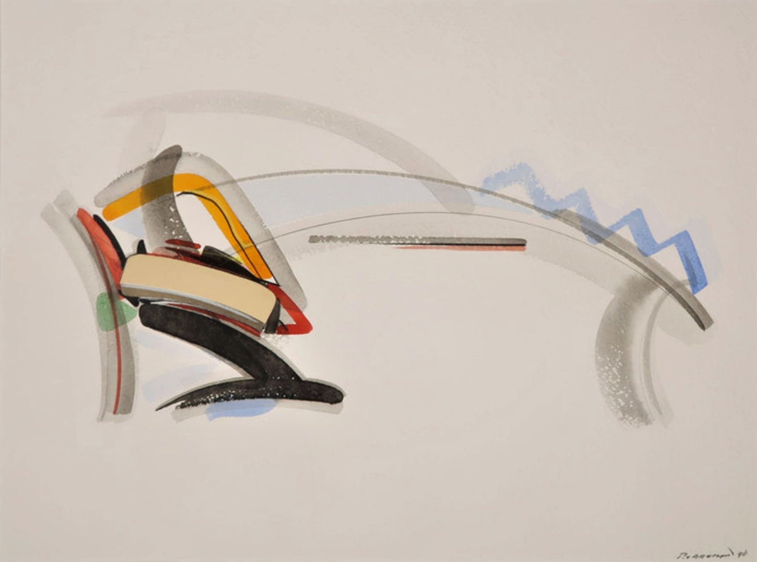 Fraaie aquarel/collage van de kunstenaar Peter van Drumpt. Bijzonder exemplaar omdat het door 1 stuk in het beeld opgeplakt (beige/goud deel) door de kunstenaar, feitelijk ook een collage betreft. Werk is in uitstekende conditie en gemaakt op stevig/zwaar aquarelpapier. Struktuur van het papier als wel de kleuren zijn in het echt veel mooier dan op de fotos.