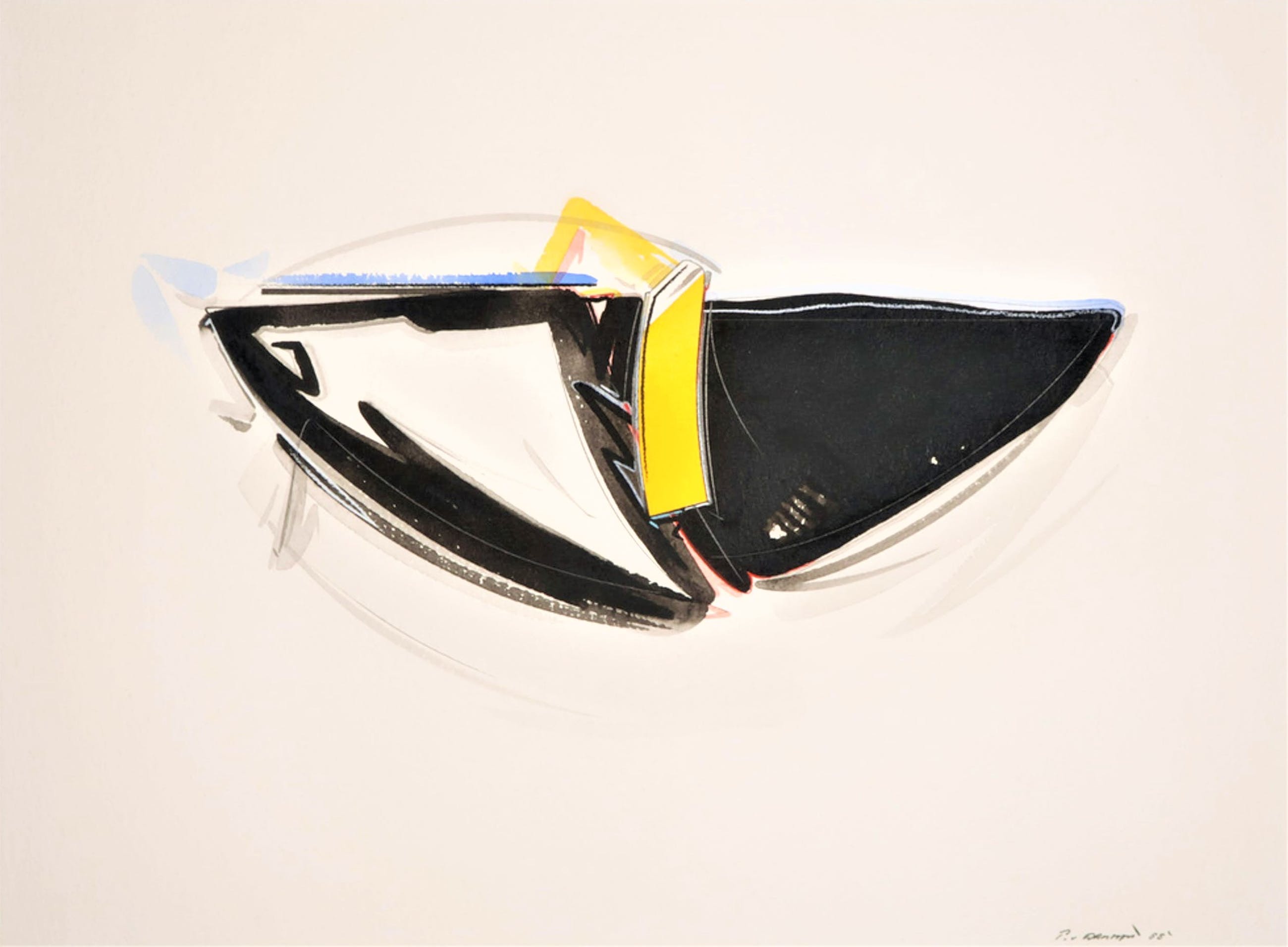 Fraaie aquarel/collage van de kunstenaar Peter van Drumpt. Bijzonder exemplaar omdat een strook papier in het beeld is opgeplakt (geel/oranje) , het eveneens een collage betreft. Werk is in uitstekende conditie en gemaakt op stevig/zwaar aquarelpapier. Struktuur van het papier als wel de kleuren zijn in het echt mooier dan op de fotos.
