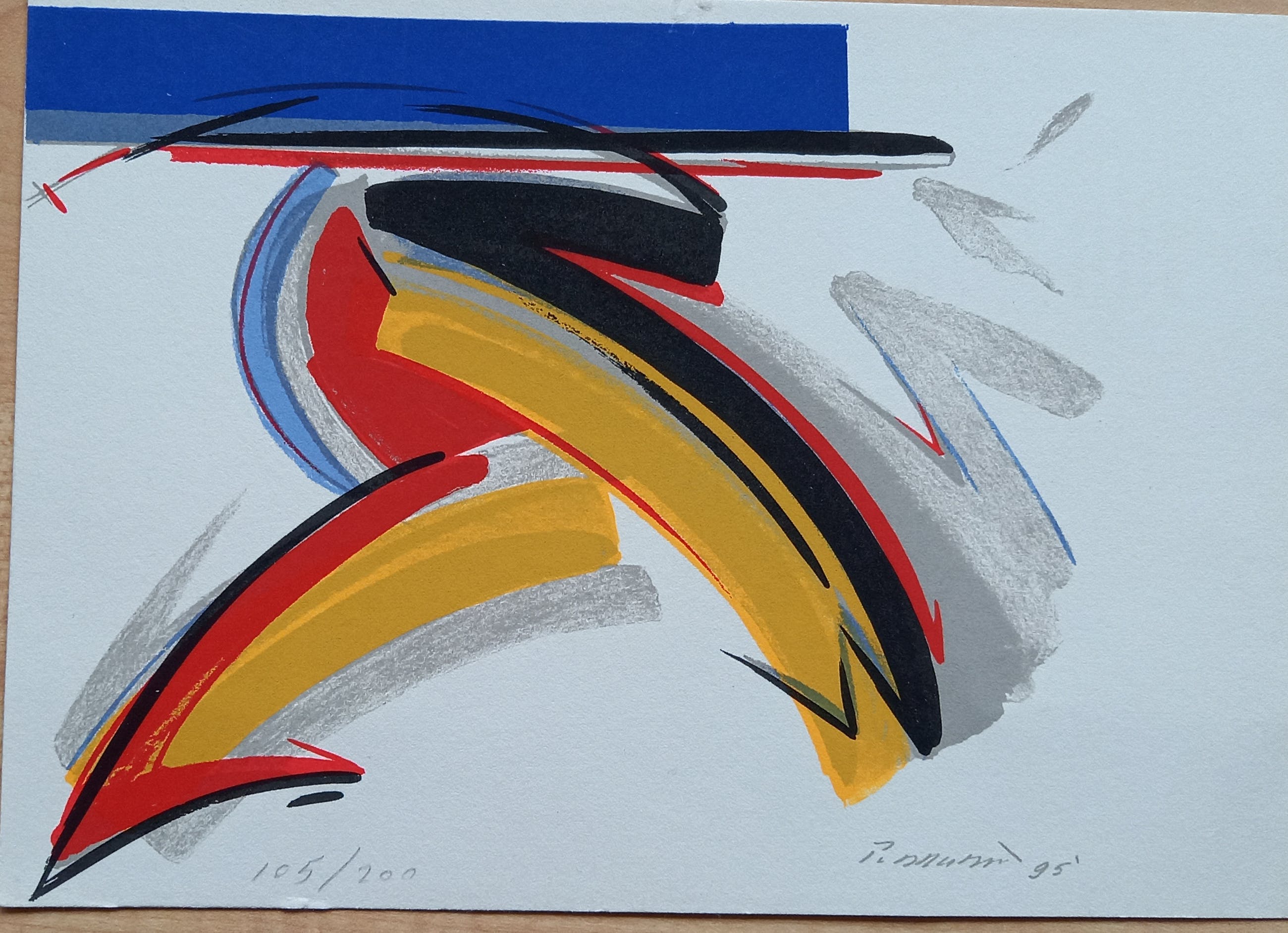 zeefdruk, abstracte voorstelling; 15 x 21 cm; nr. 105/200, 1995; gesigneerd met potlood