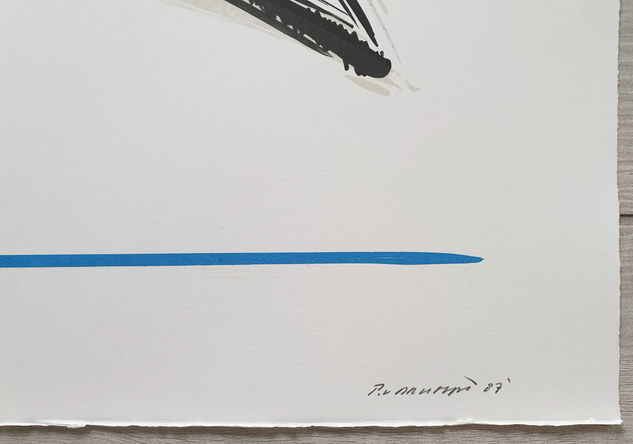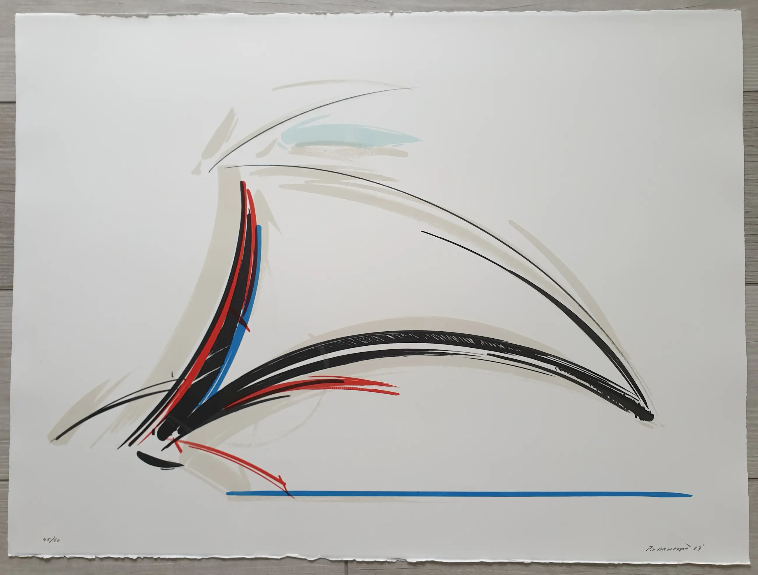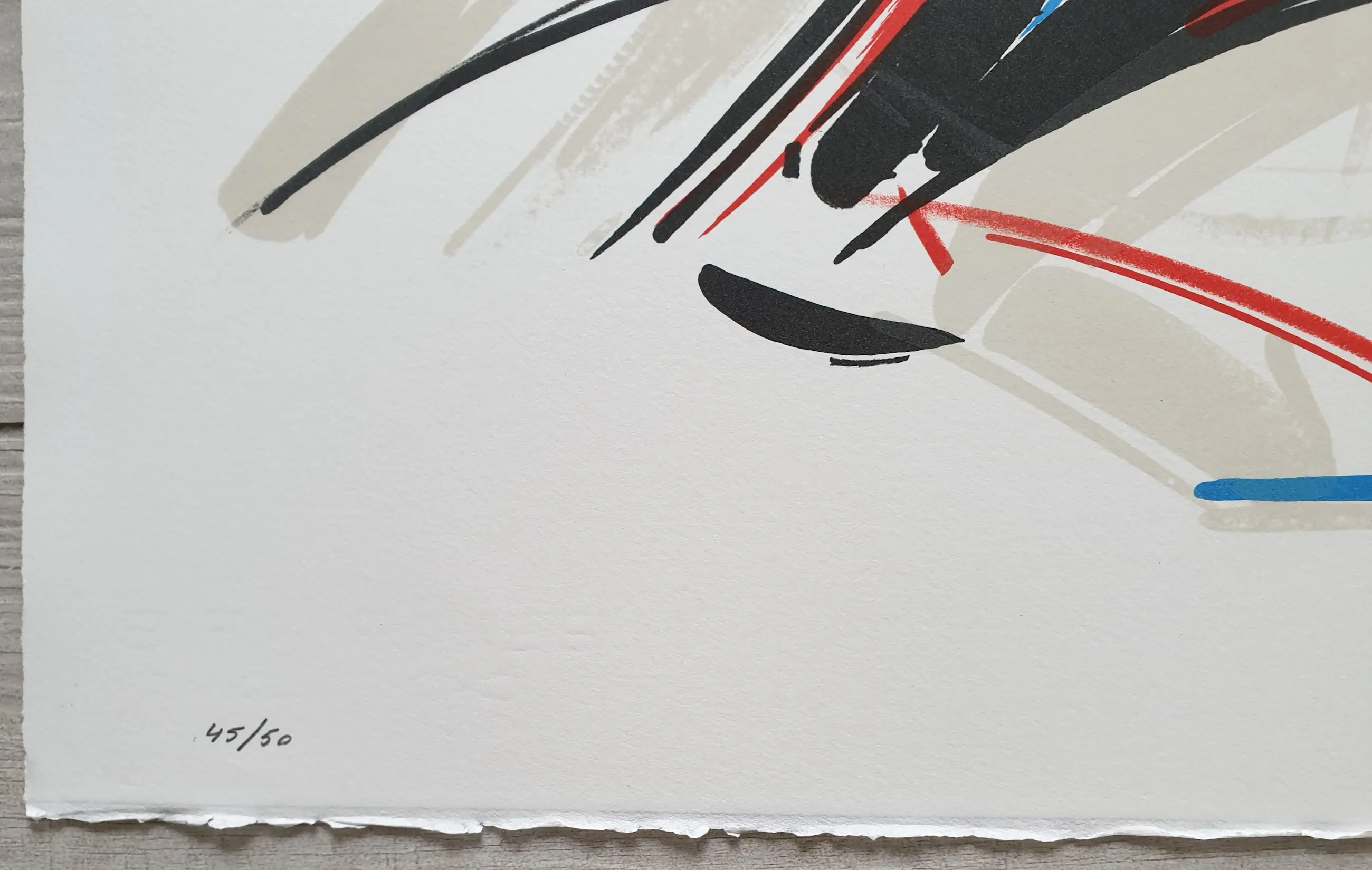 Mooie kleurenlithografie, handgesigneerd, gedateerd ('87) en genummerd (45/50) in potlood. Afkomstig uit de portfolio '30 jaar Piet Clement', uitgegeven door Printshop (Amsterdam) in 1988. Wordt verstuurd in een verstevigde koker, incl. track en trace.