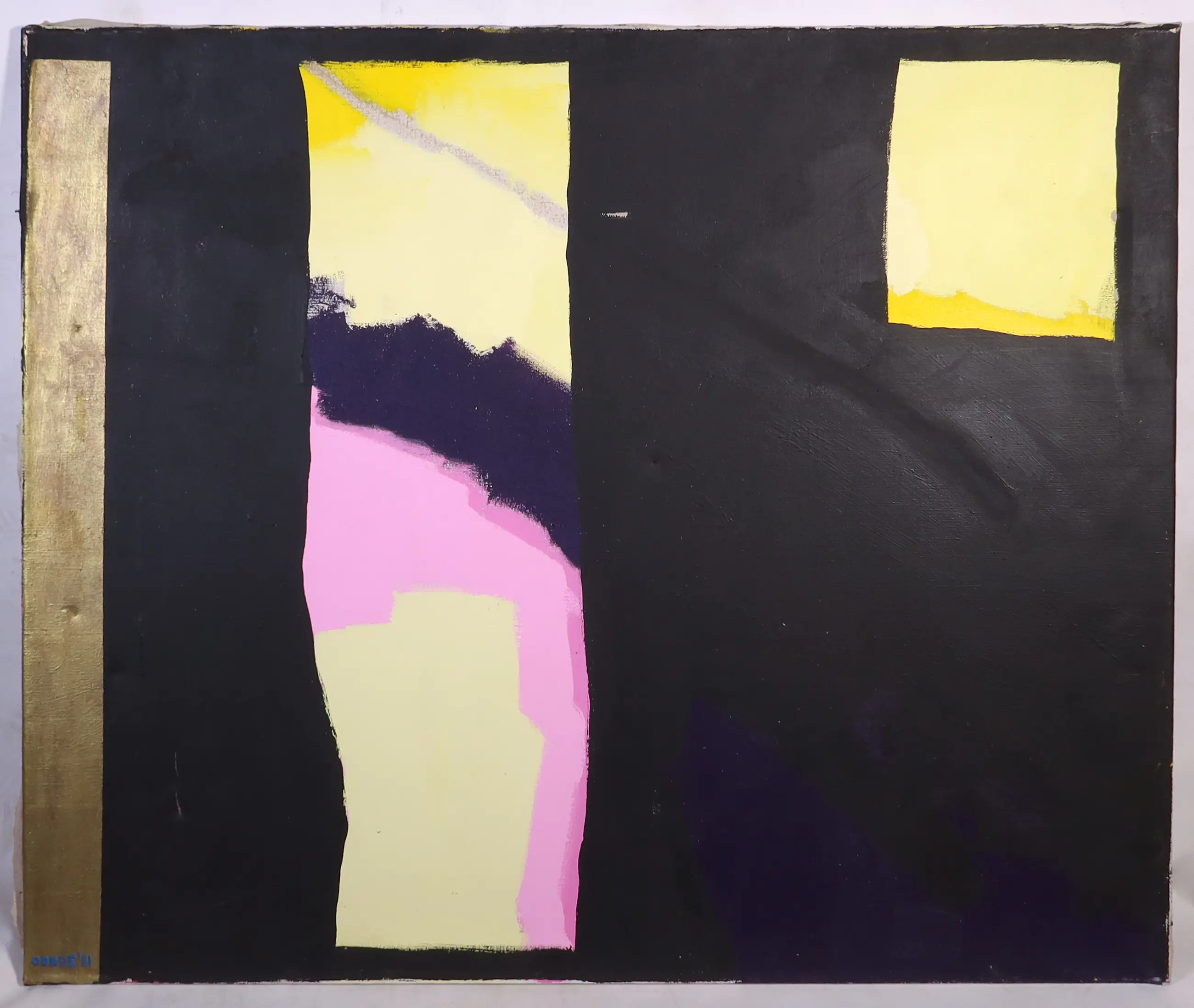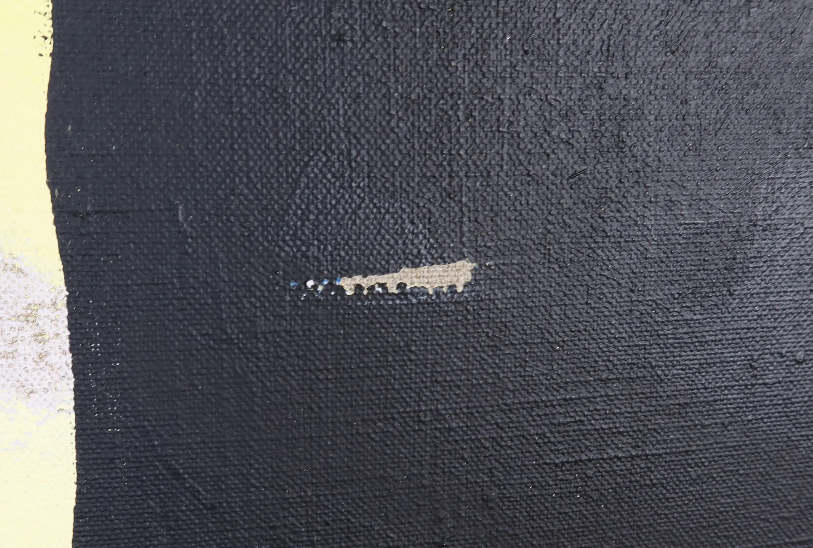 | Enkele butsjes aanwezig in het doek. Wat verfschade/krasjes en vuil. | |