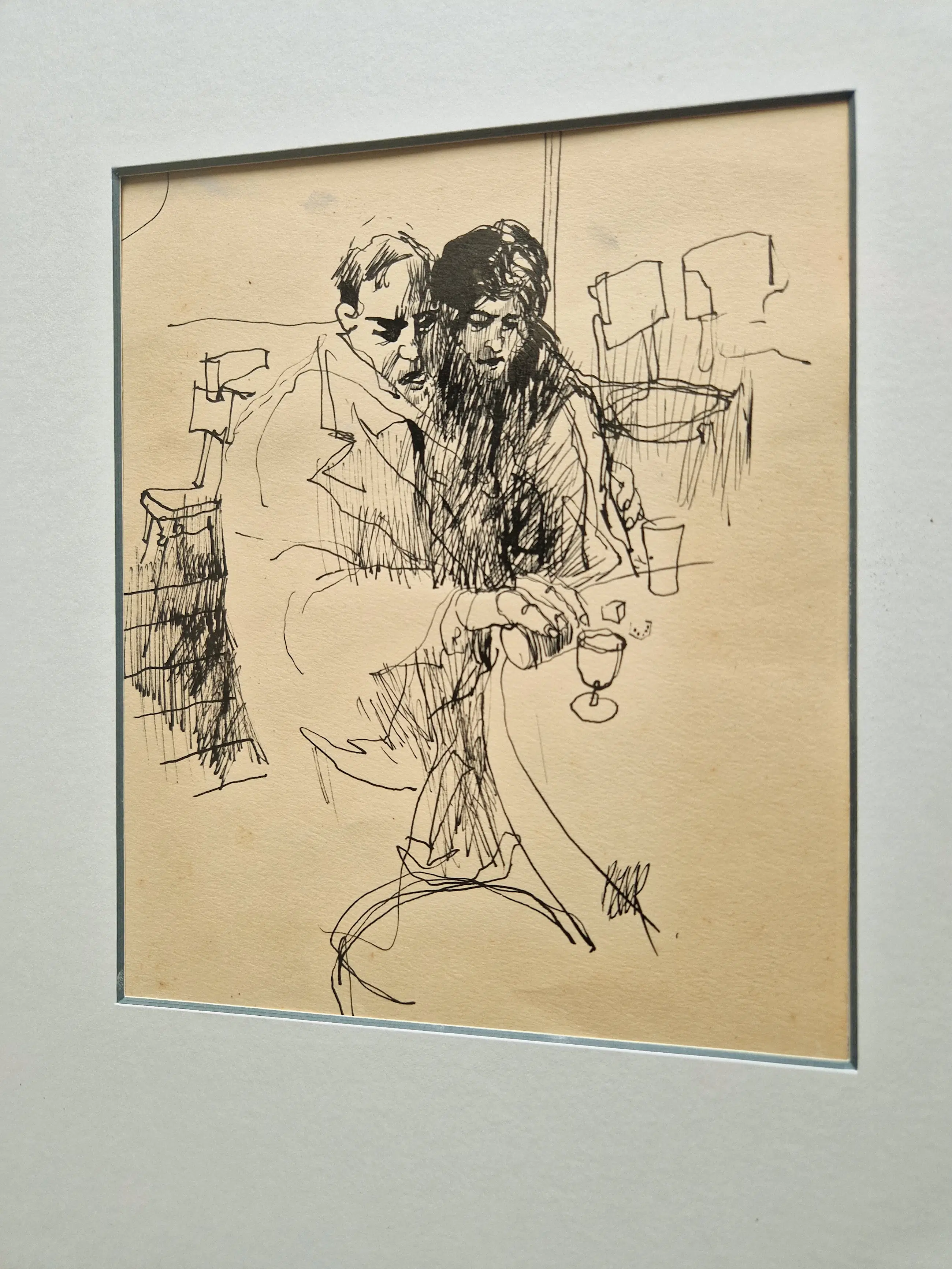 - Karakteristieke peter van Straaten oostindische inkt-tekening "laat mij maar even...". De tekening verkeert in goede staat. Het papier is alleen wat van de kleur af (gelig). Gesigneerd rechts midden. In exclusieve verdiepte passe partout geplaatst. Totale afmetingen 40x30cm.