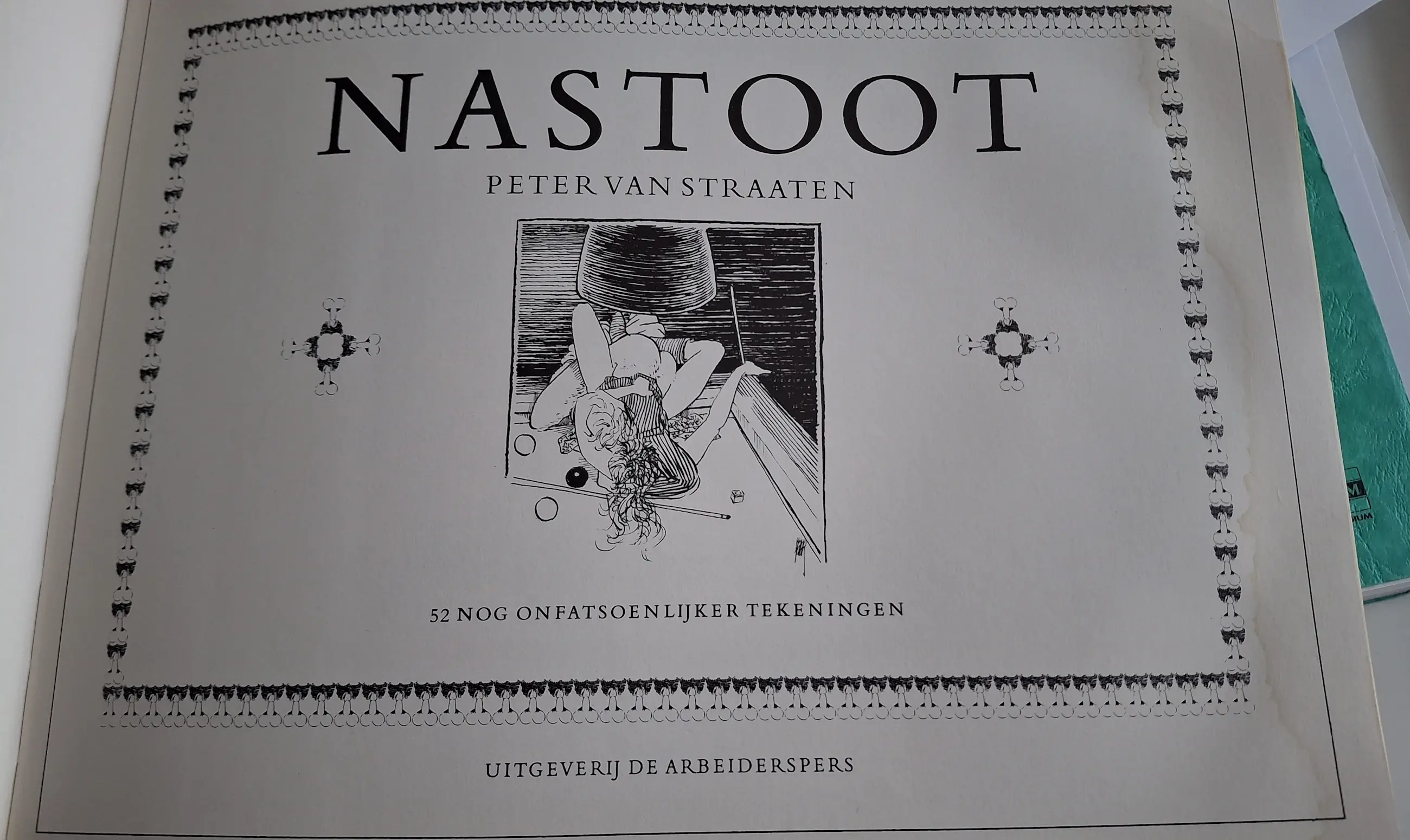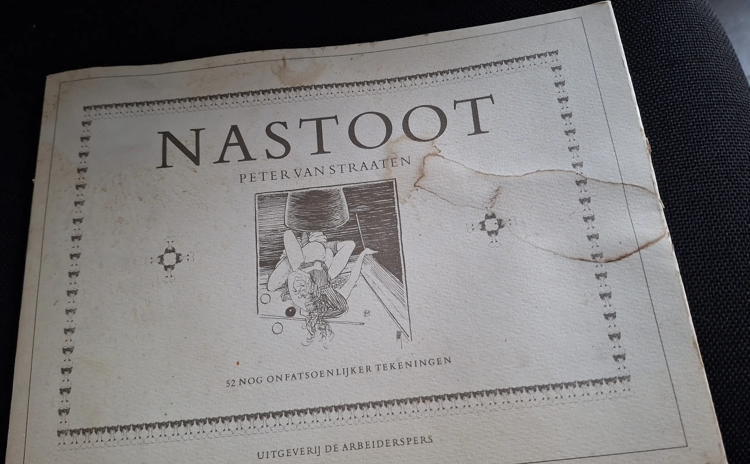 De auteur geeft als ondertitel mee: "52 nog onfatsoenlijke tekeningen". De kaft heeft wel een vlekomtrek. De tekeningen binnenin zijn onbeschadigd.