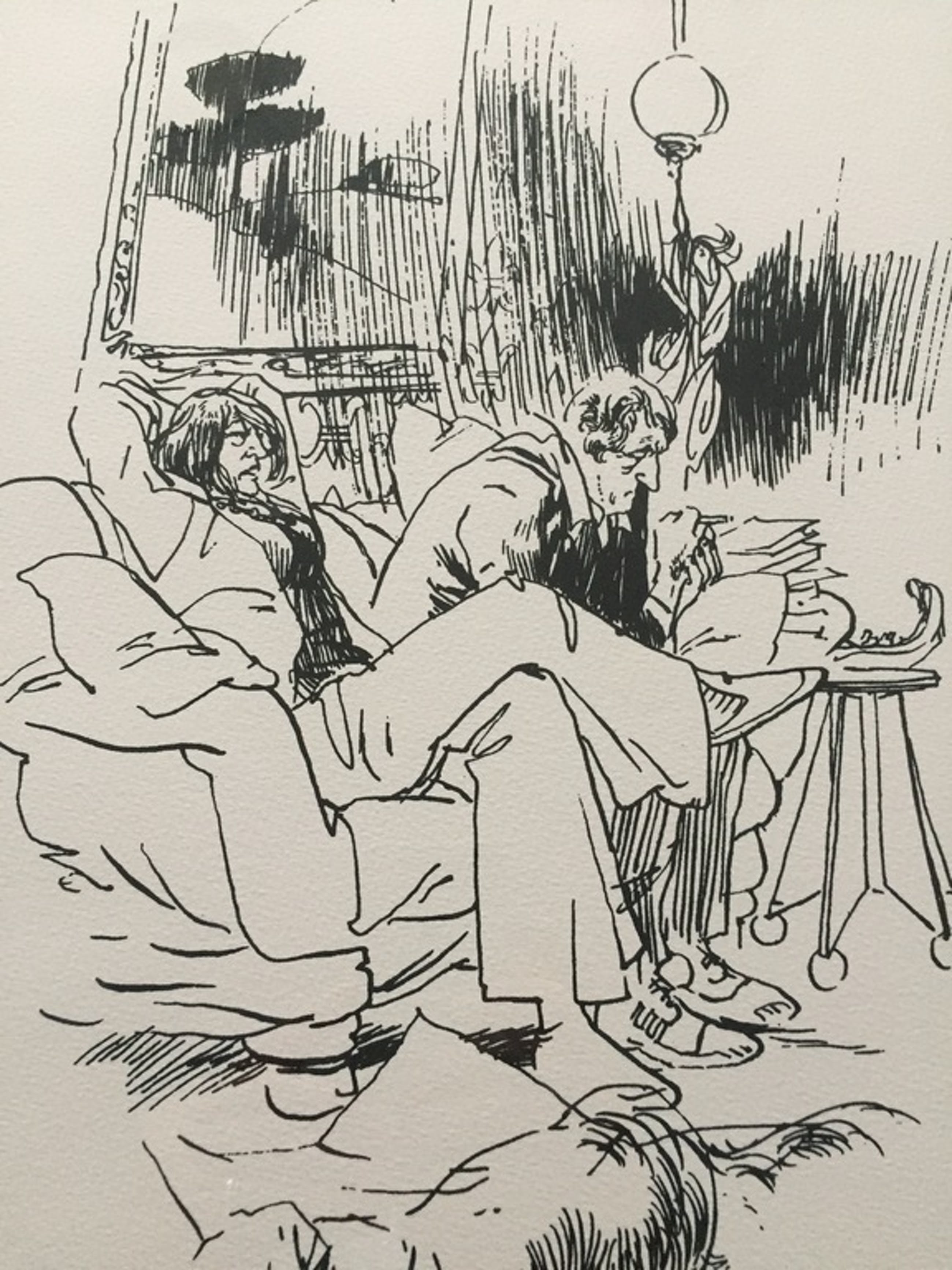 Litho met de tekst: 'Ach, misschien heb je wel gelijk, Guus, en moesten we maar bij elkaar blijven.'