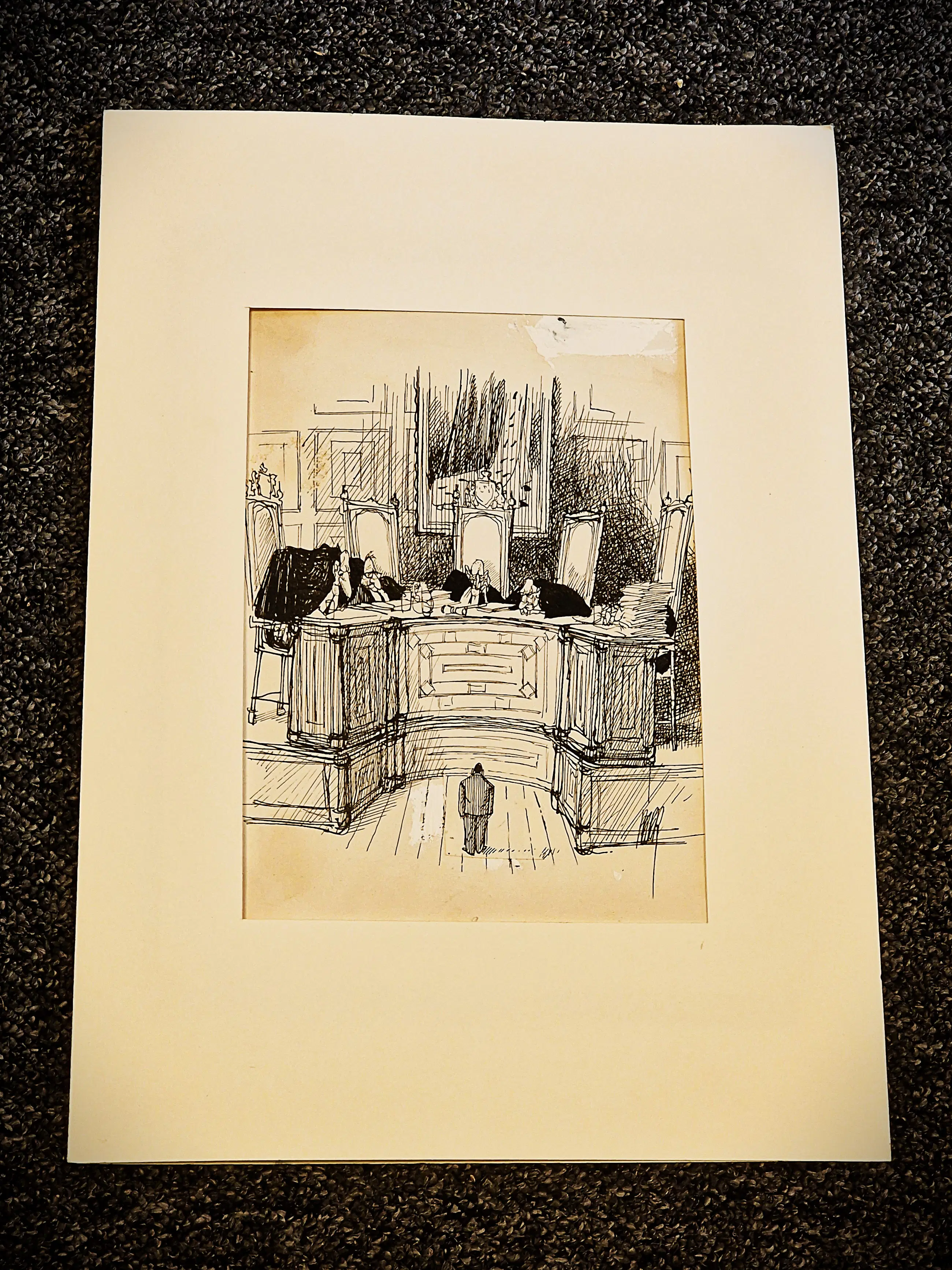 - Karakteristieke peter van Straaten inkt-tekening in redelijk goede staat (papier gelig en linksboven wat onregelmatig) Her en der in de tekening heeft de kunstenaar een beetje typex gebruikt en met potlood aantekeningen gemaakt. Waarschijnlijk is de tekening een keer gebruikt om af te drukken. Gesigneerd met inkt rechts onder.