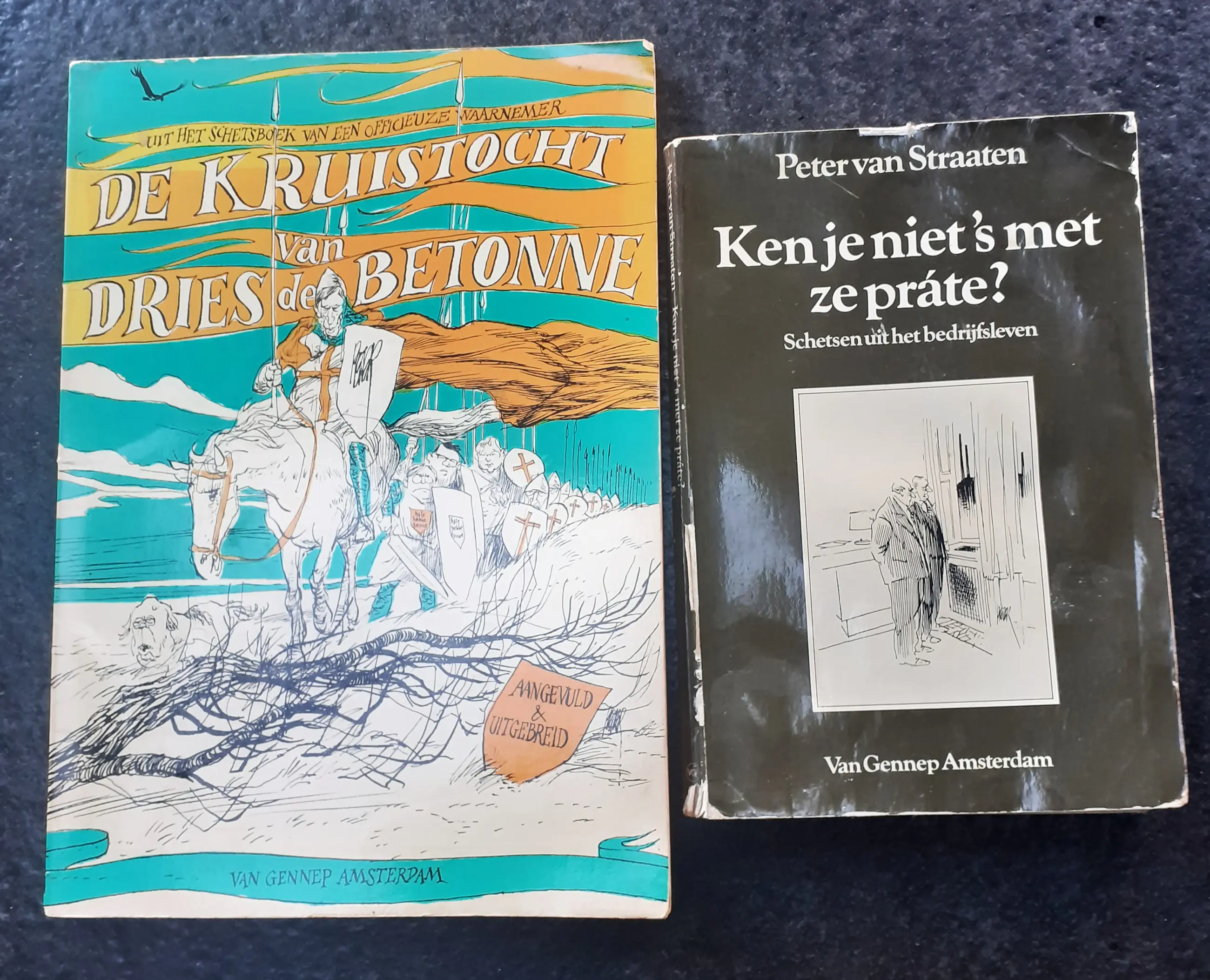 Twee boeken met illustraties van Peter van Straaten: - "Ken je niet 's met ze prate?' (schetsen uit het bedrijfsleven) - De Kruistocht van Dries de Betonne