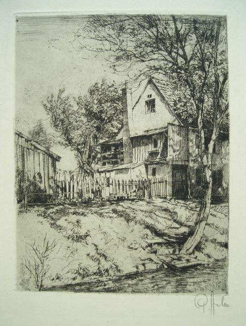 An der Würm (links unten betitelt), Radierung, Blattgröße: 32,5 x 24cm, Plattengröße: 18 x 14cm, rechts unten handsigniert, Knickfalte von oben bis unten links neben der Darstellung geglättet. Rückseitig Reste alter Montierung. Rechts unten alter Sammlungsstempel: Slg. H.Vogler. Versandkosten als unversicherter Maxibrief 2,50 oder als versichertes Paket 7,20 Euro, jeweils mit der Post (DHL).