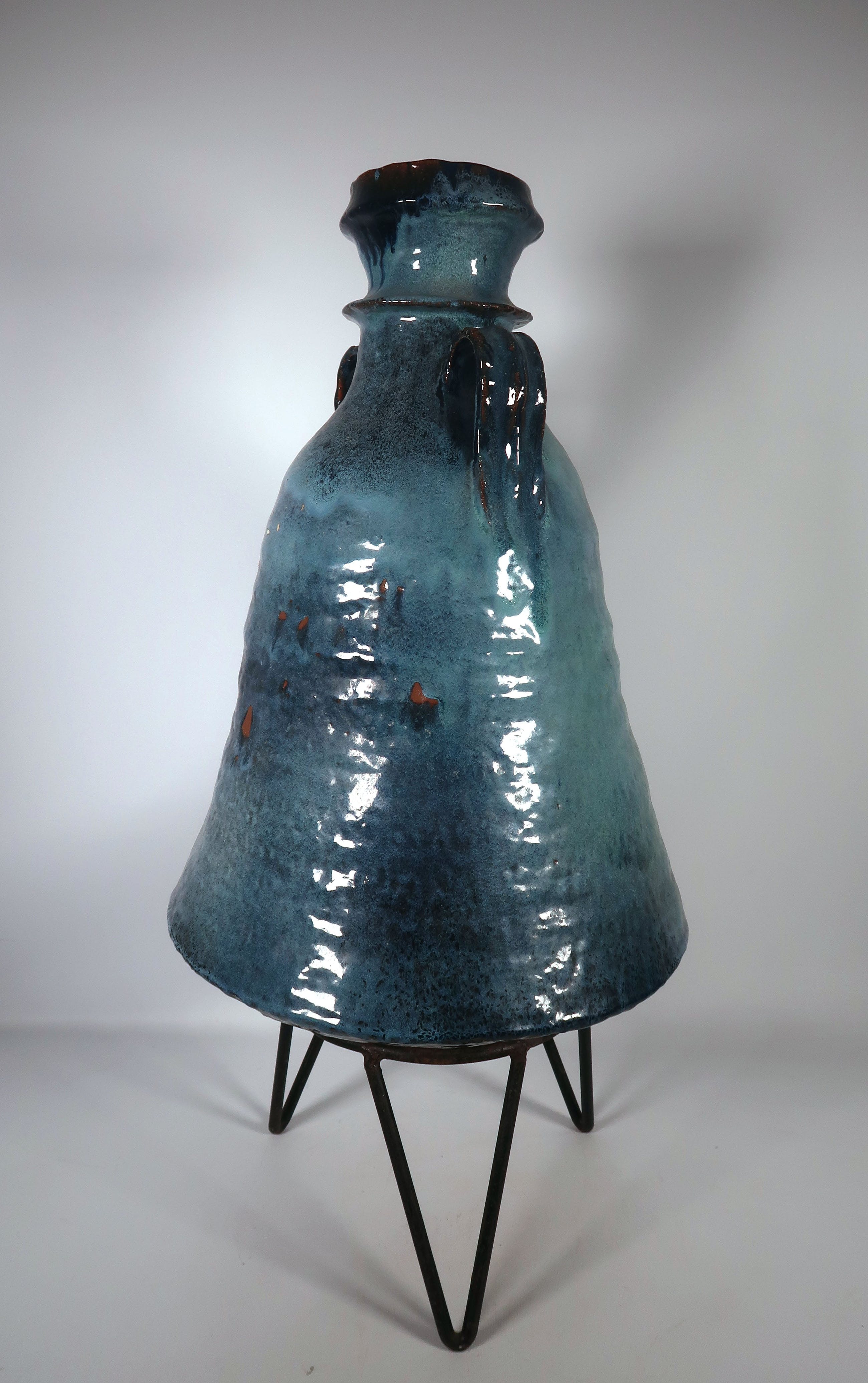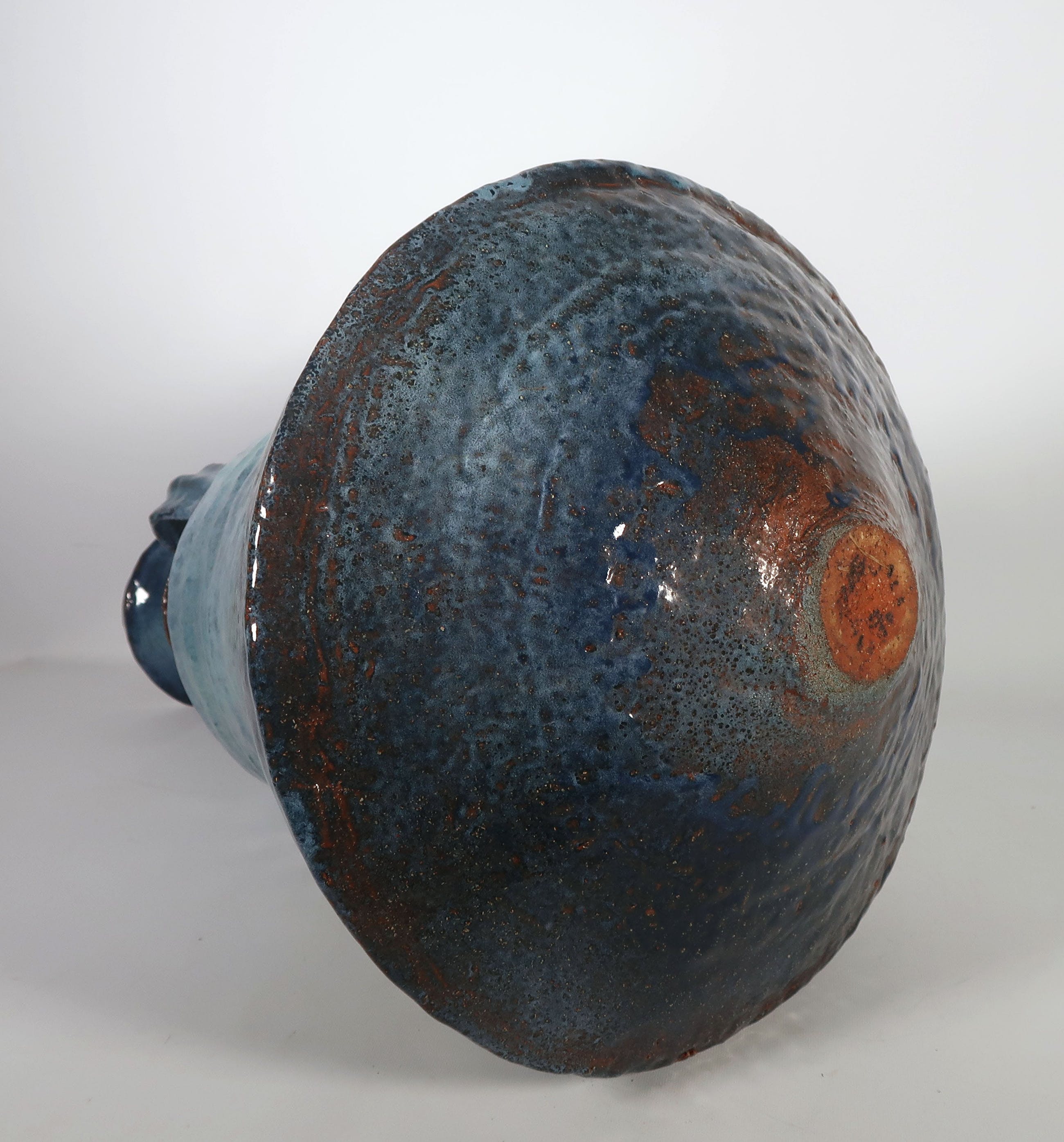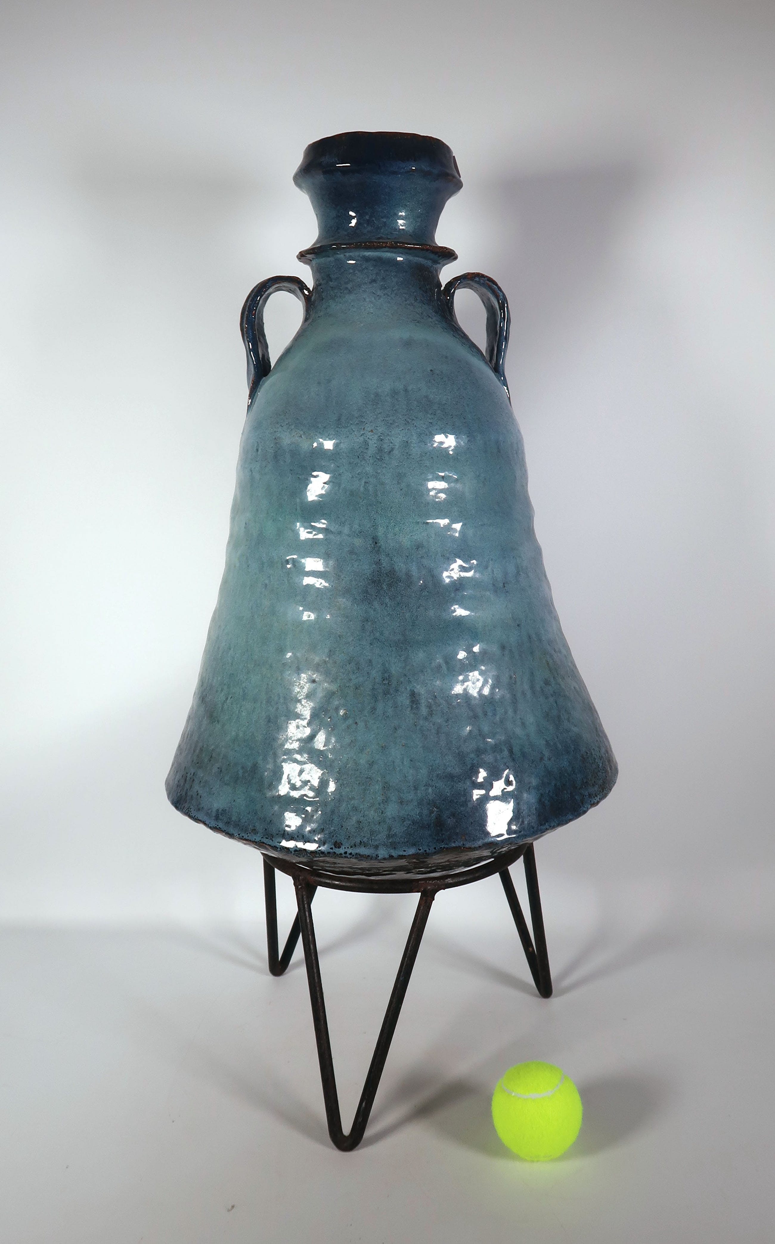Handgemaakte blauwe amfora vaas van keramist Peter von Hartsvelt Müller.