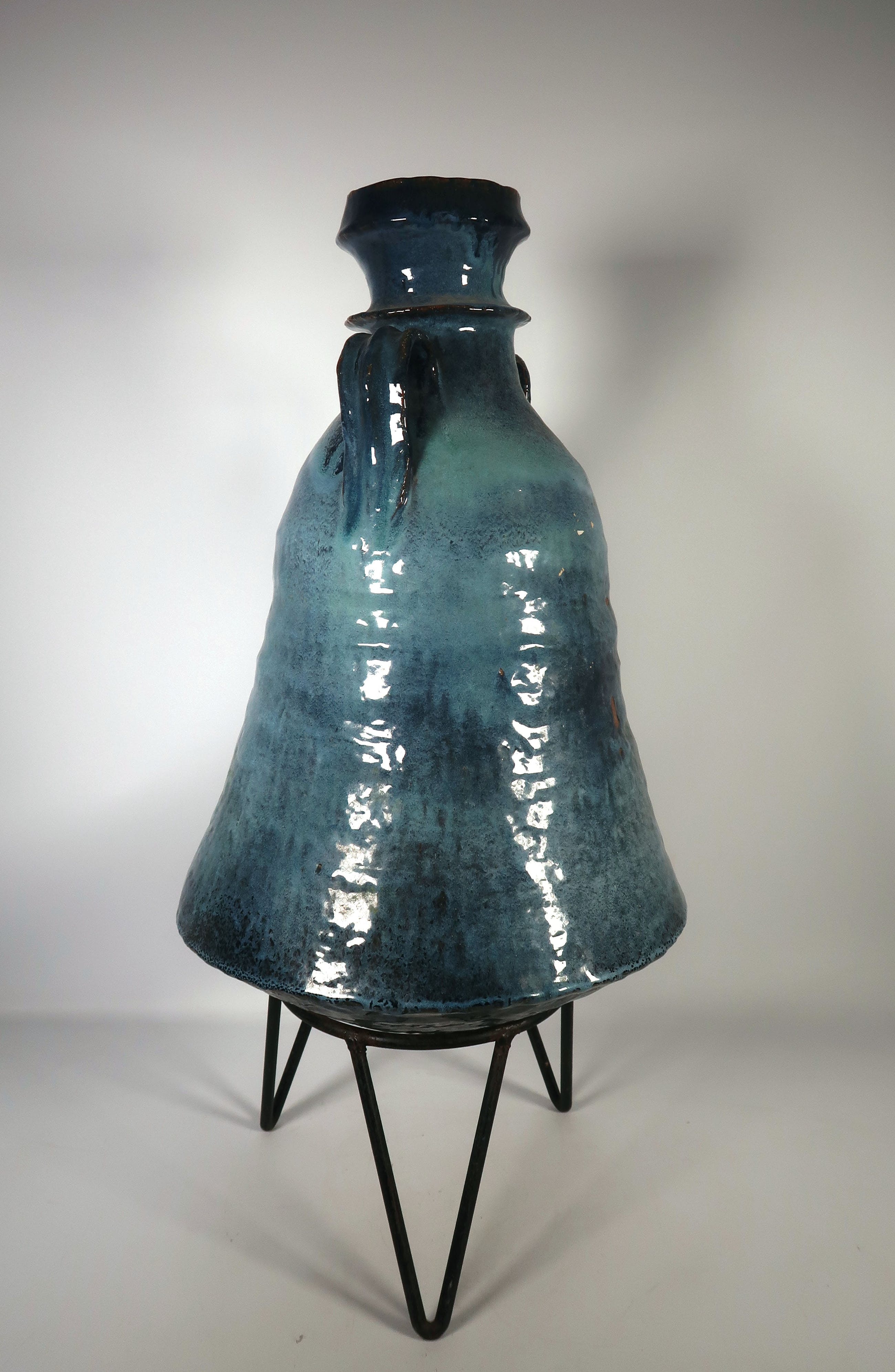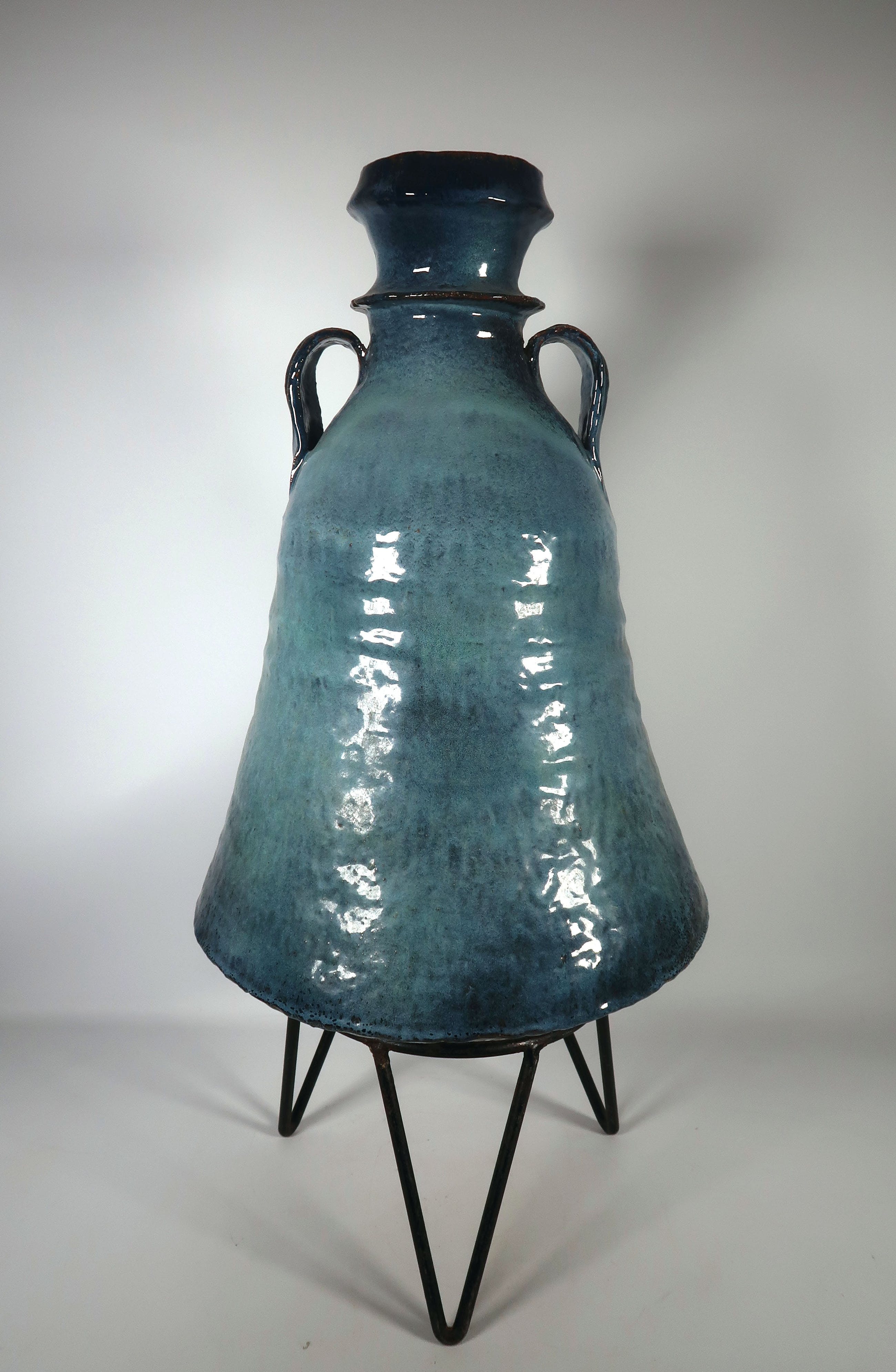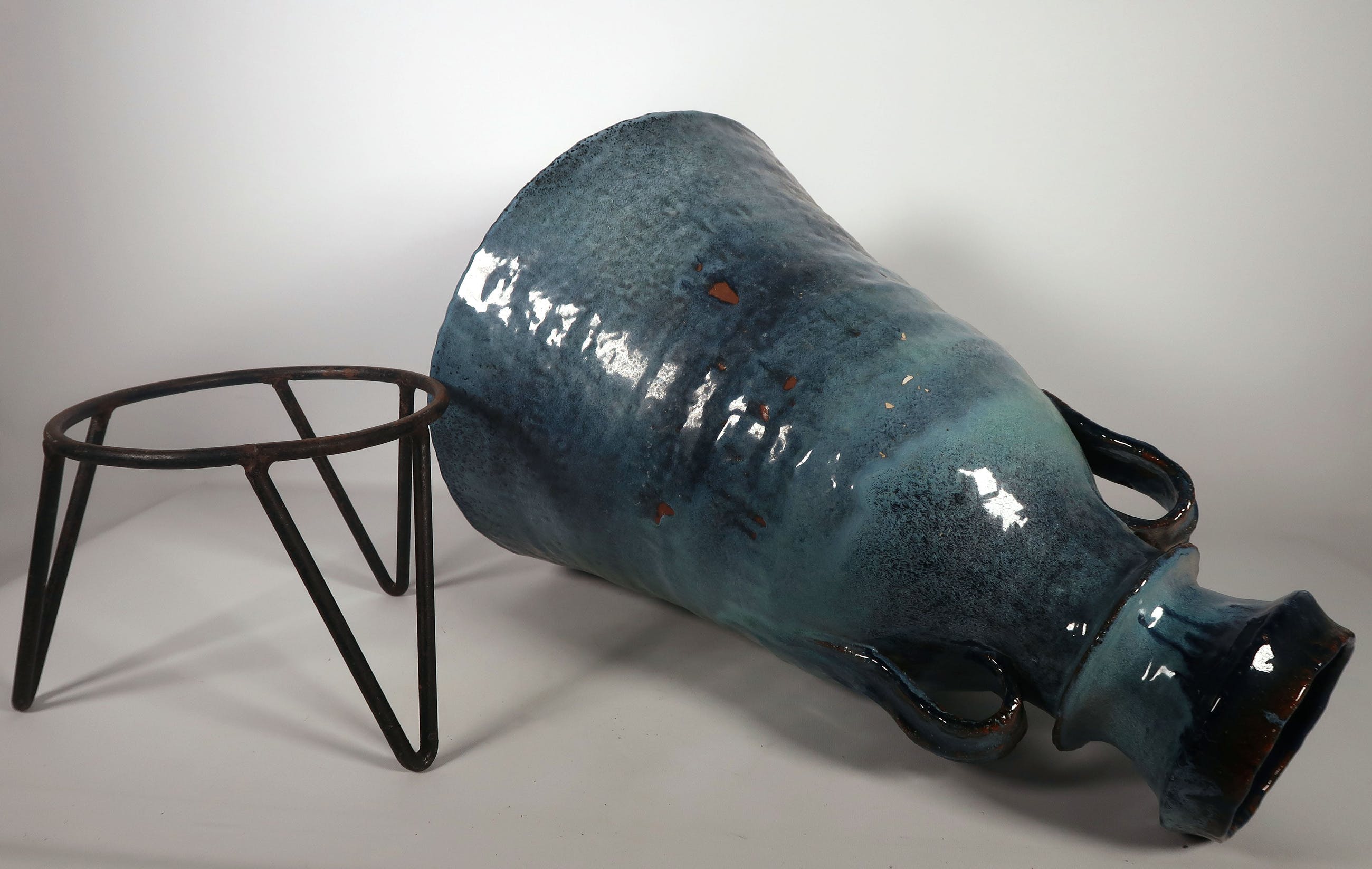 Handgemaakte blauwe amfora vaas van keramist Peter von Hartsvelt Müller.