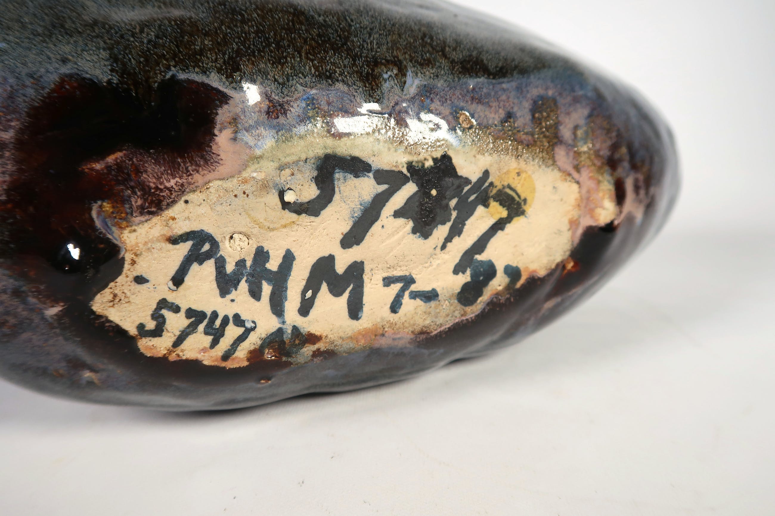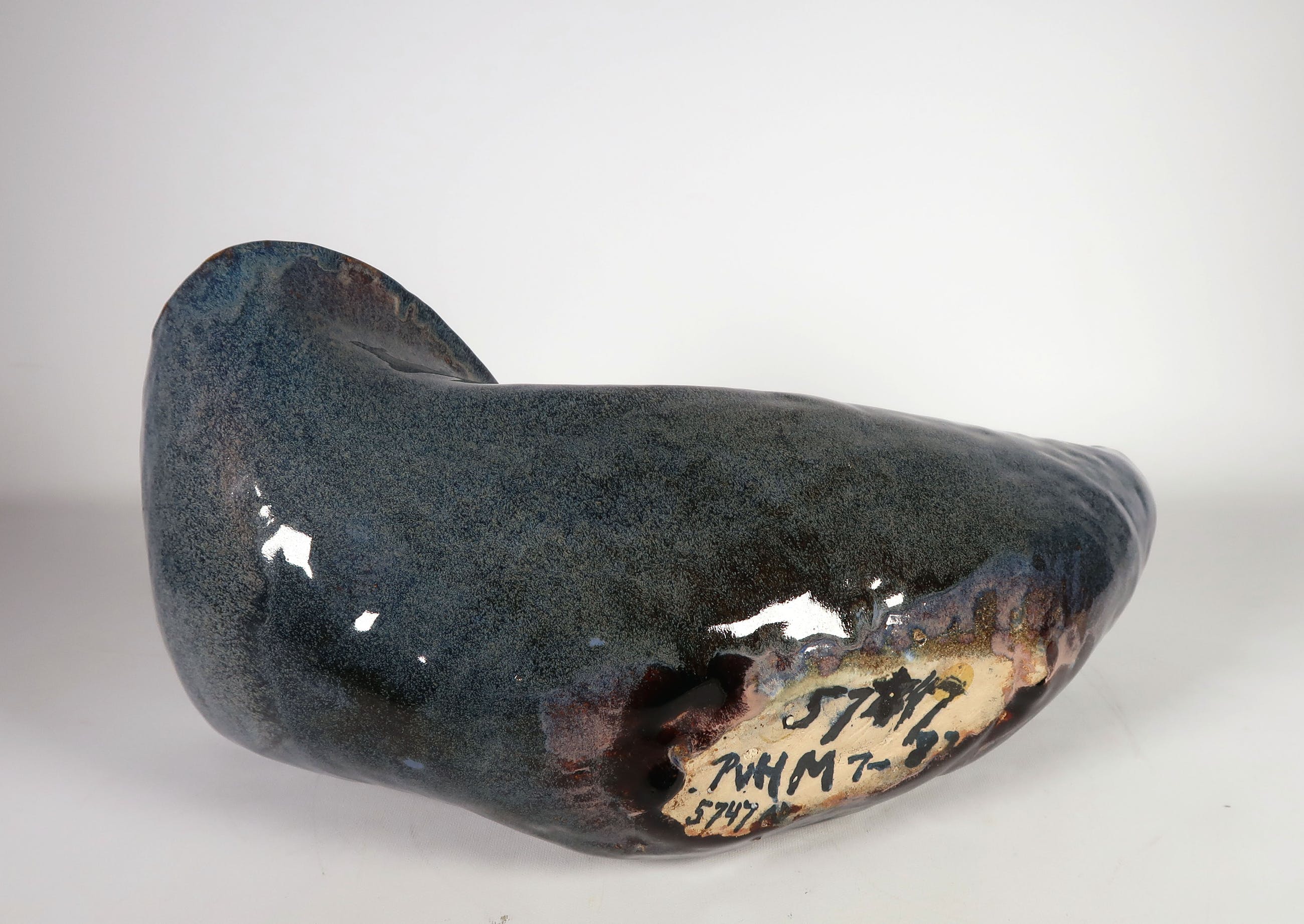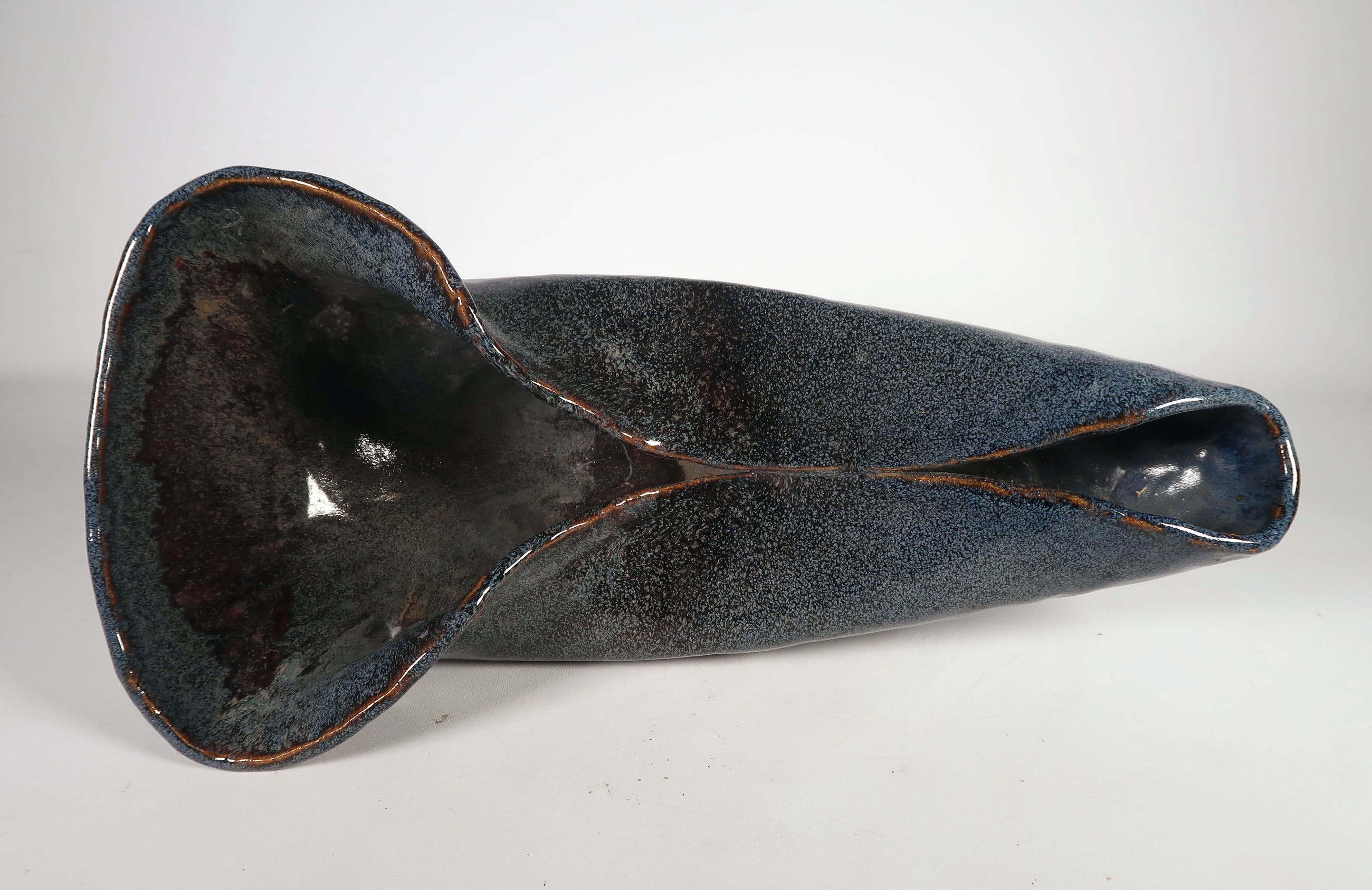 Handgemaakte blauwe olielamp van keramist Peter von Hartsvelt Müller. De vaas is in goede staat en aan de onderzijde gesigneerd. De rand is beschadigd geweest, maar dit is hersteld. Zie hiervoor de foto's.