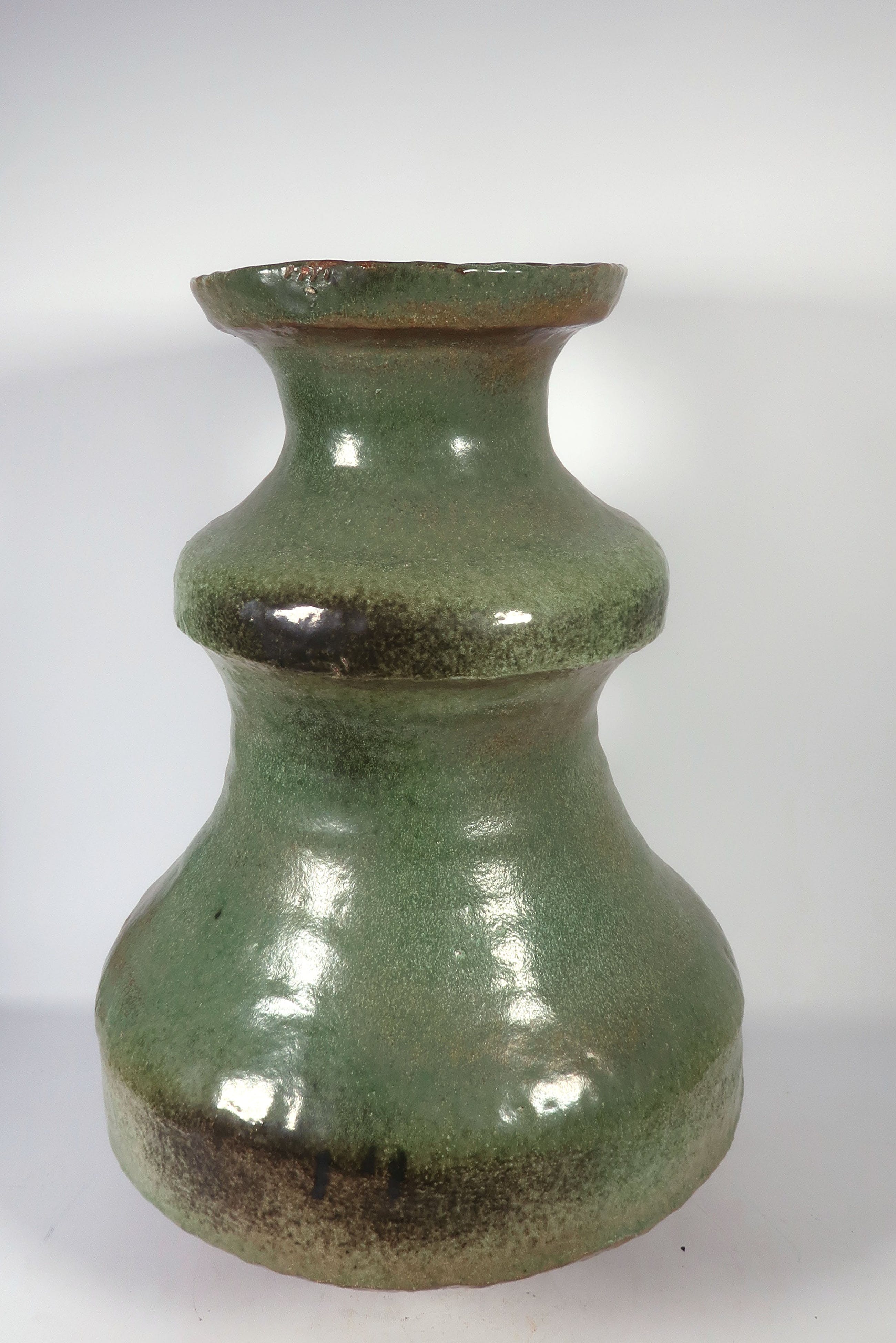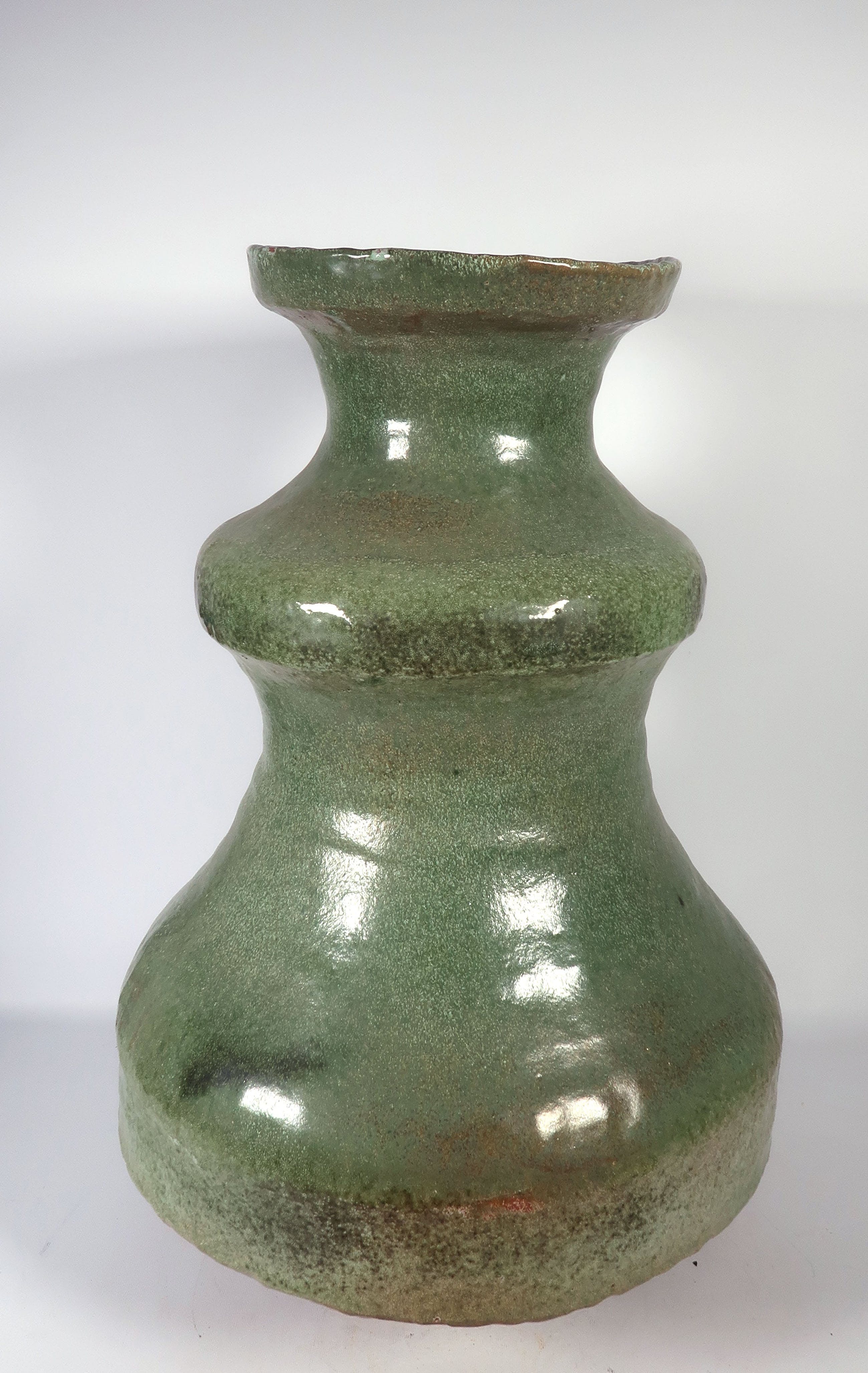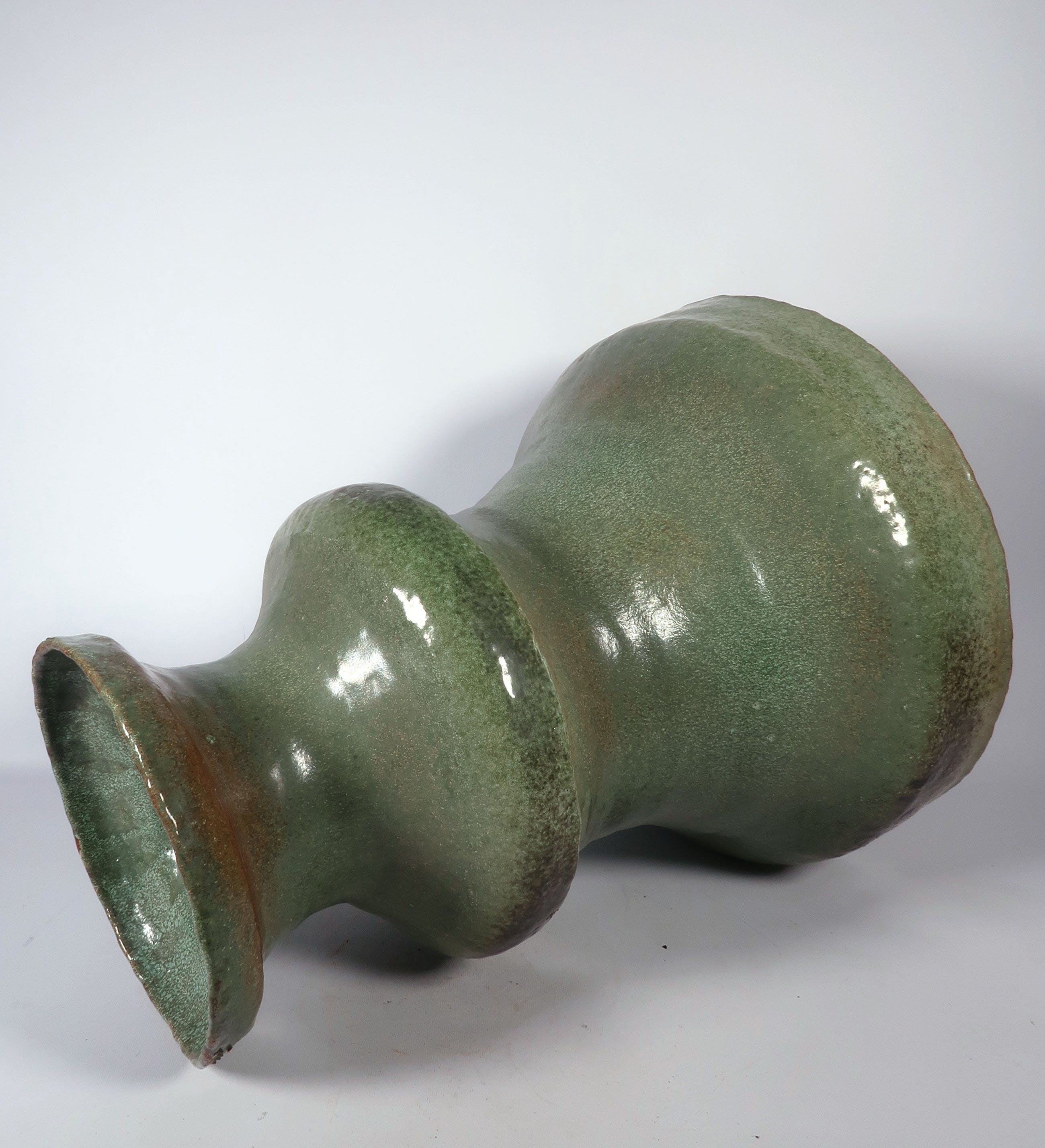 Handgemaakte grote groene vaas van keramist Peter von Hartsvelt Müller.