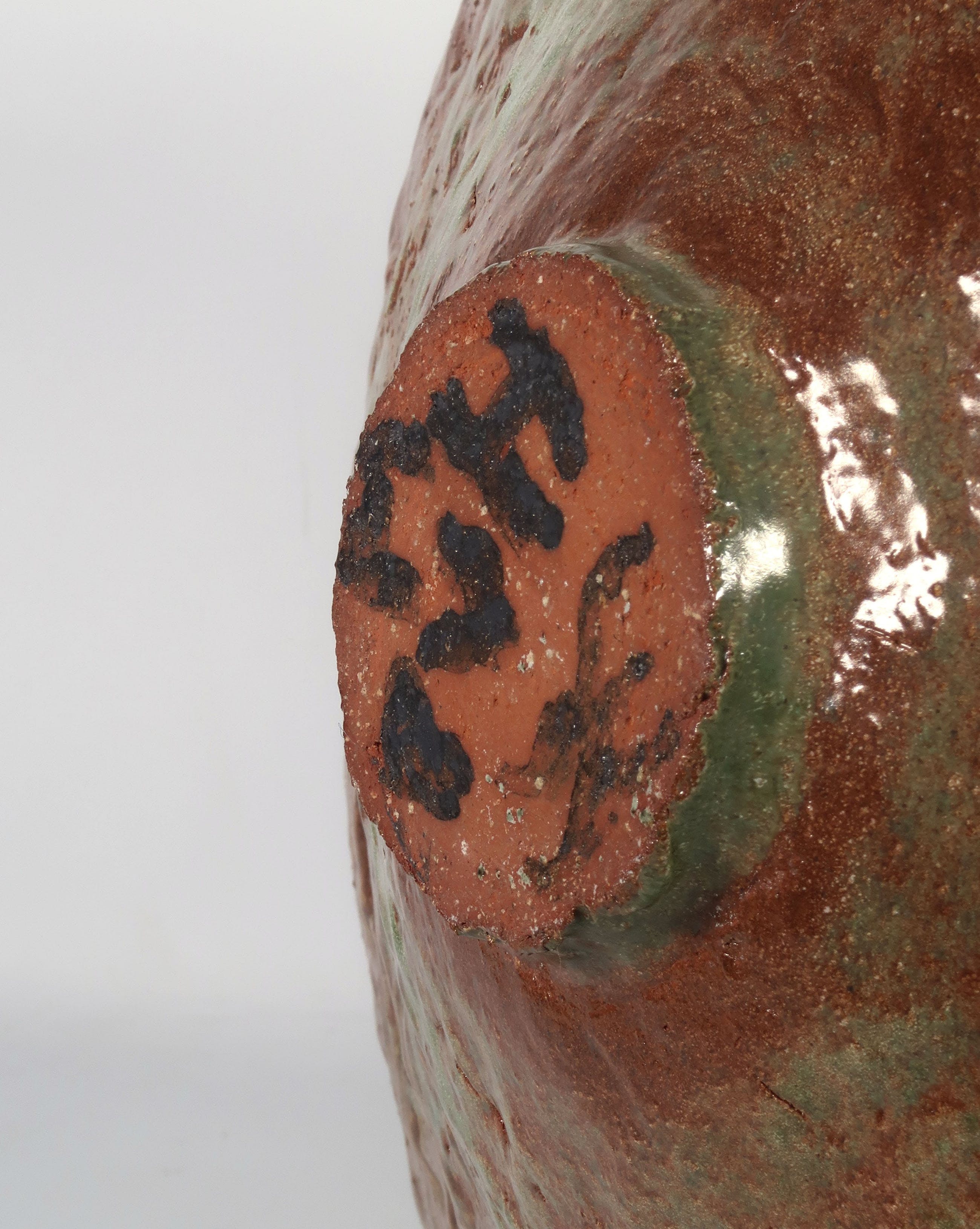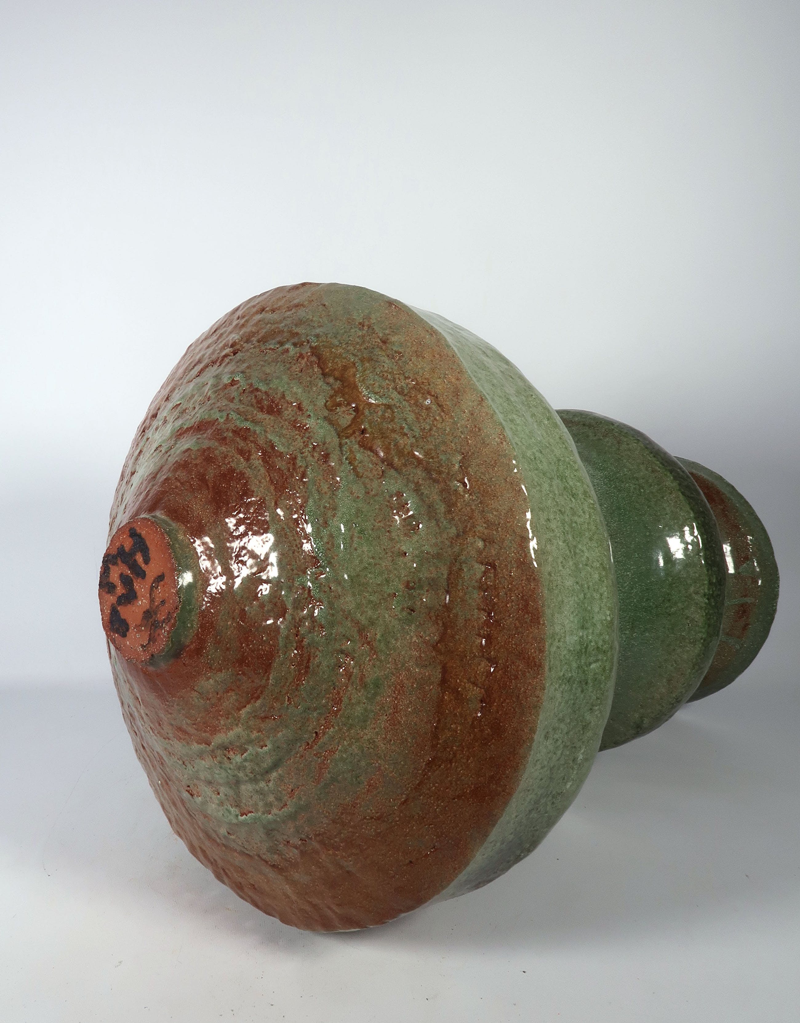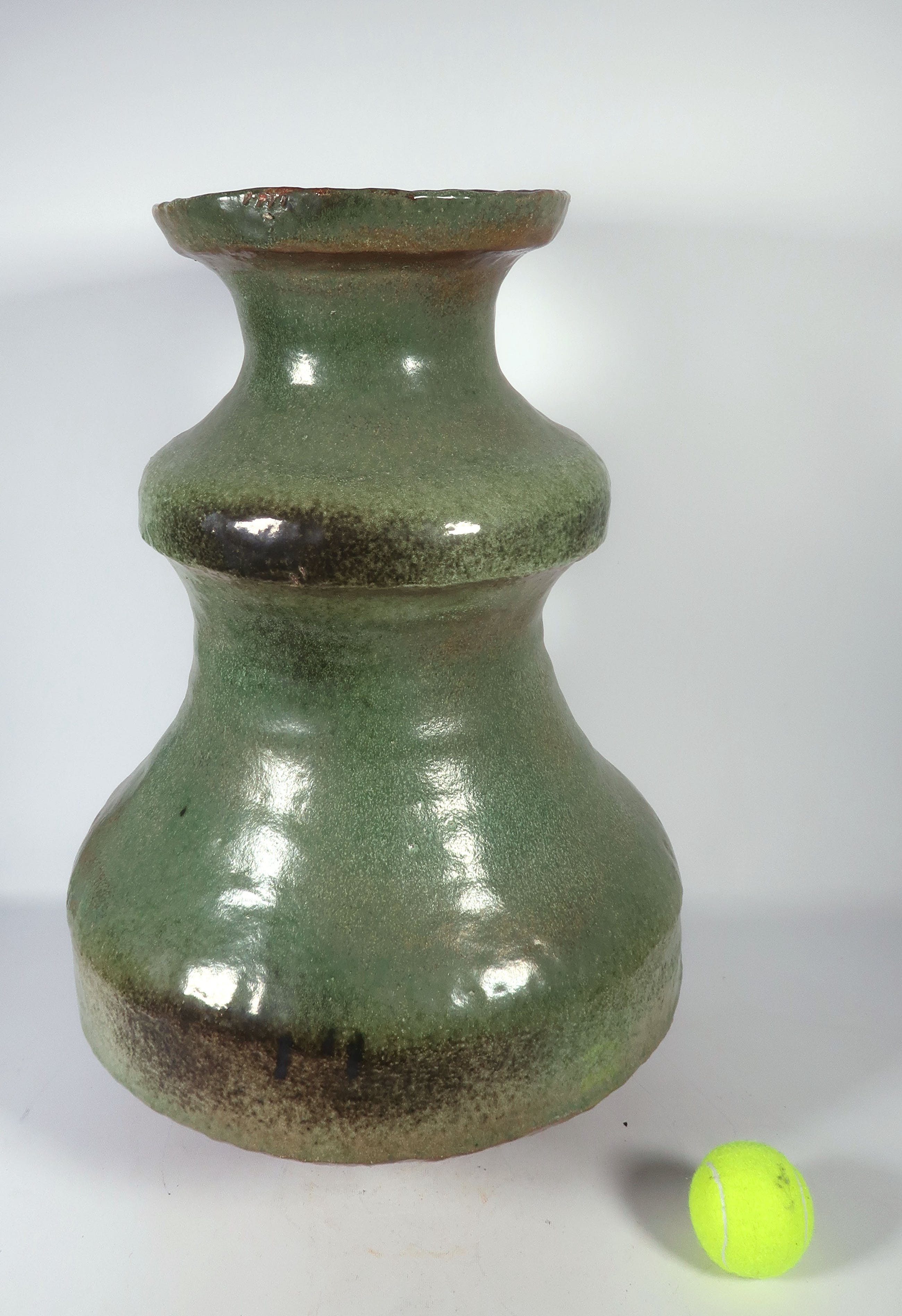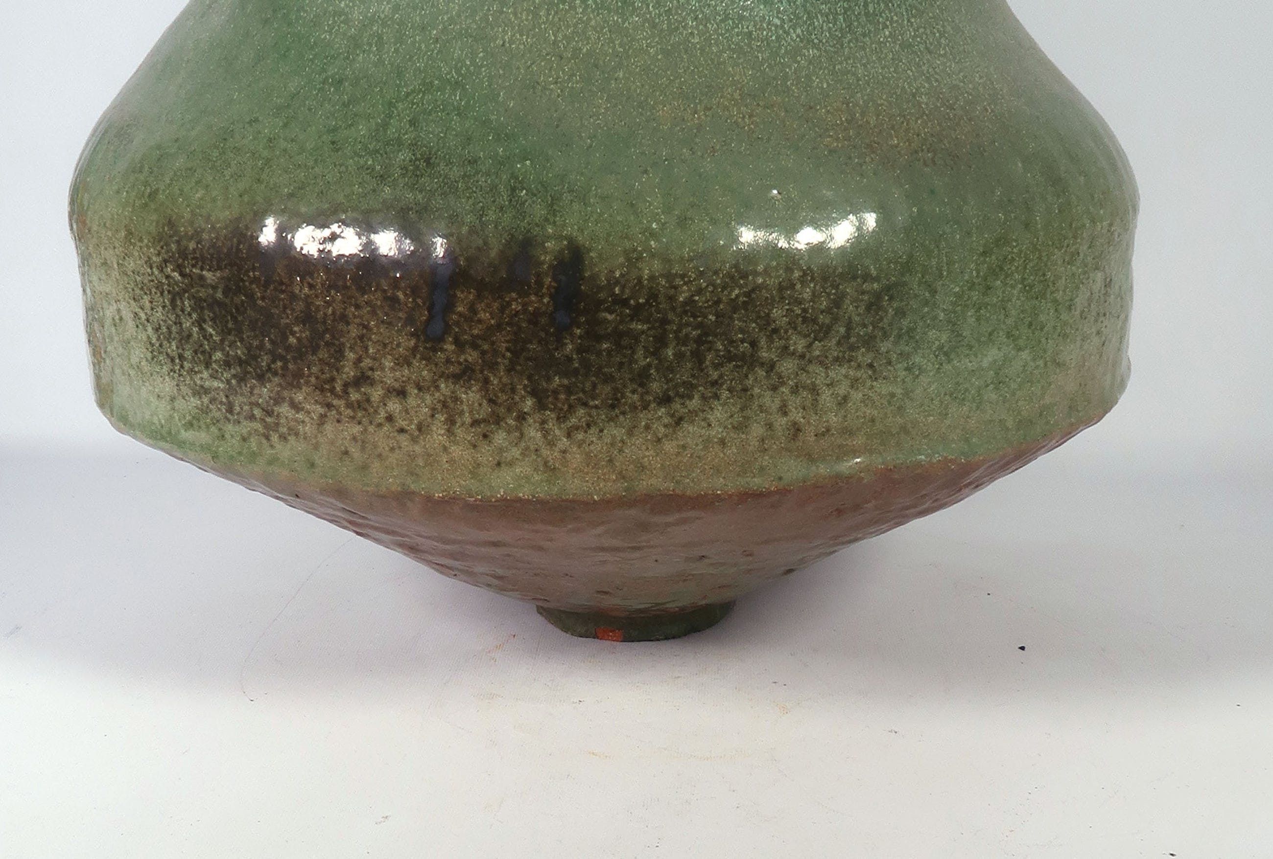 Handgemaakte grote groene vaas van keramist Peter von Hartsvelt Müller.