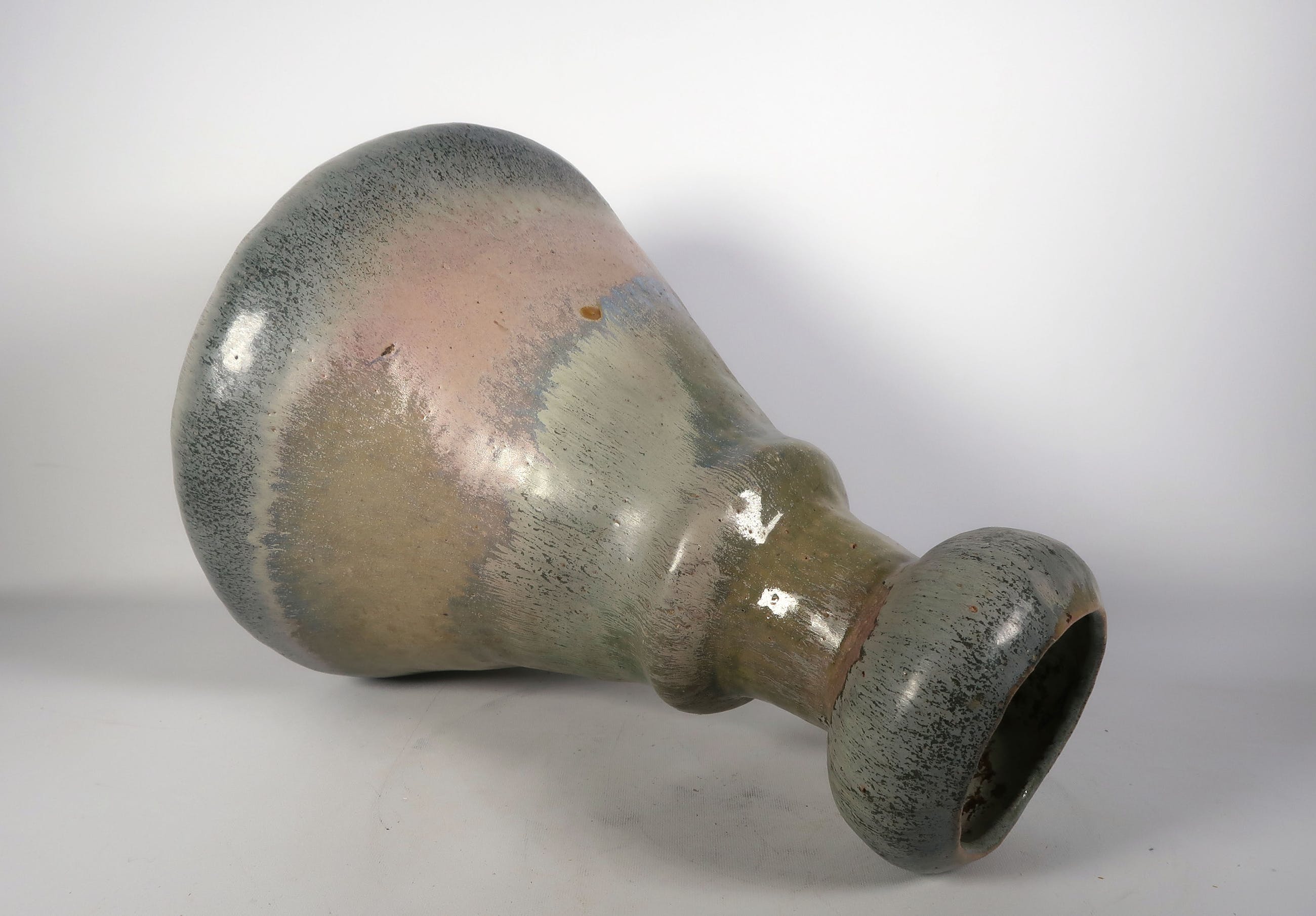 Handgemaakte mosgroene vaas van keramist Peter von Hartsvelt Müller.