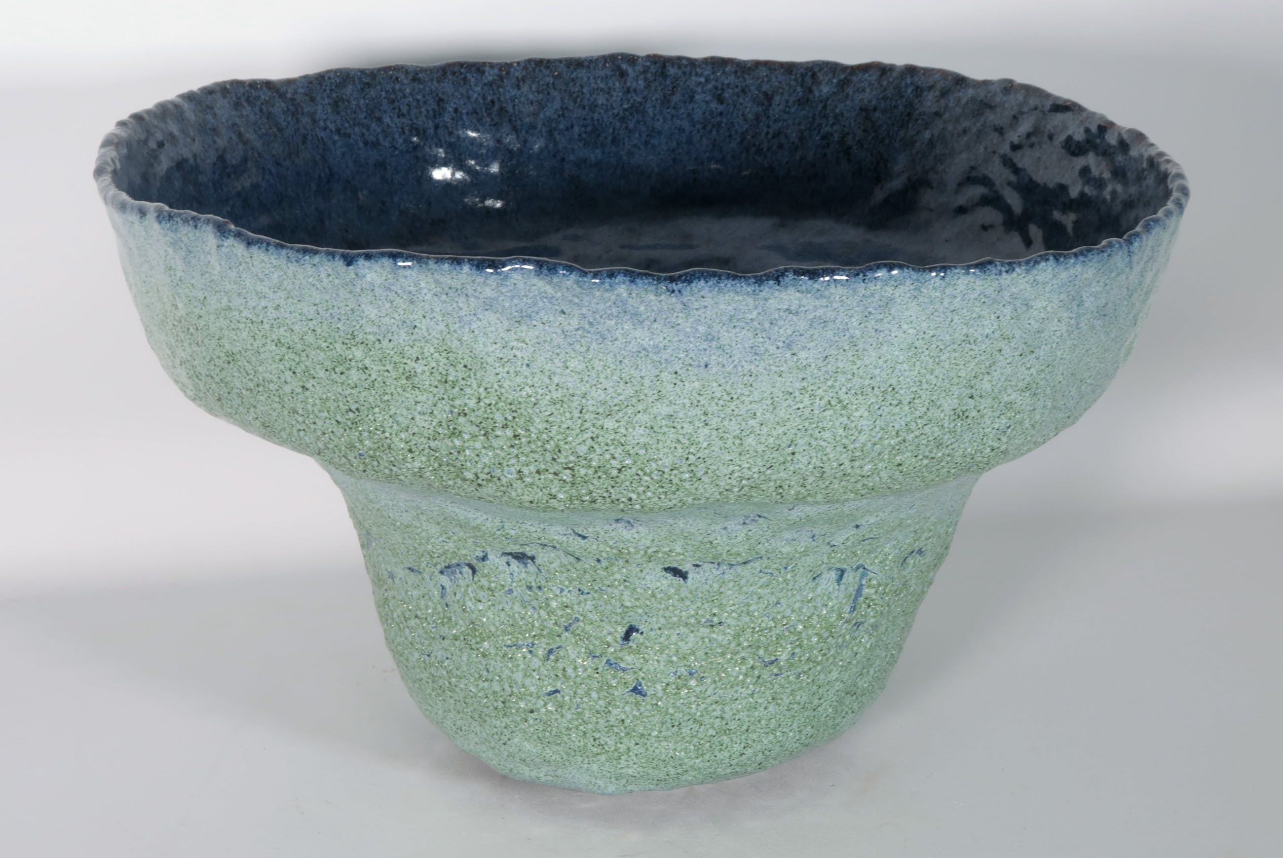 Handgemaakte blauw/groen geglazuurde open vaas van keramist Peter von Hartsvelt Müller. De vaas is in goede staat en is gesigneerd aan de onderkant.