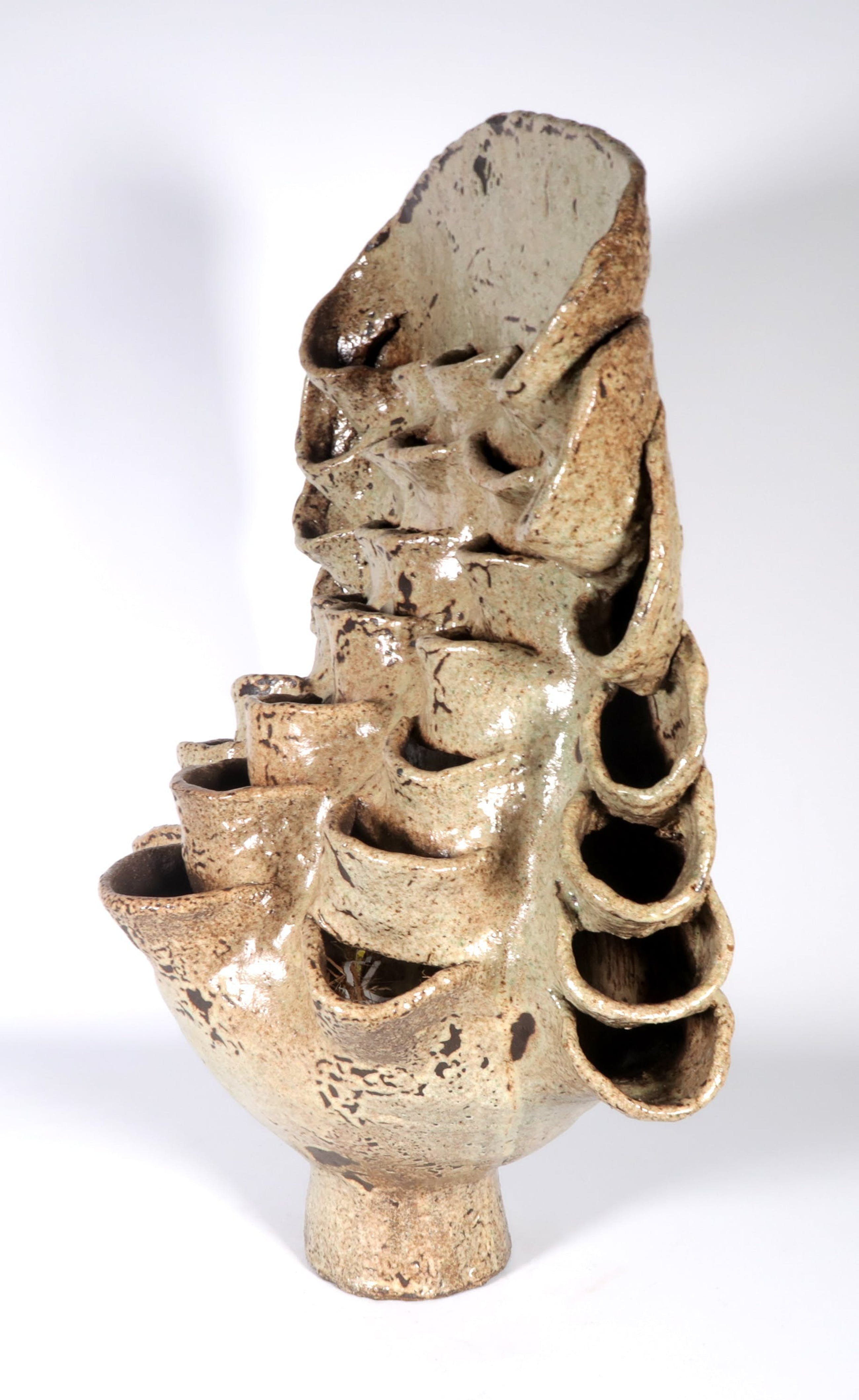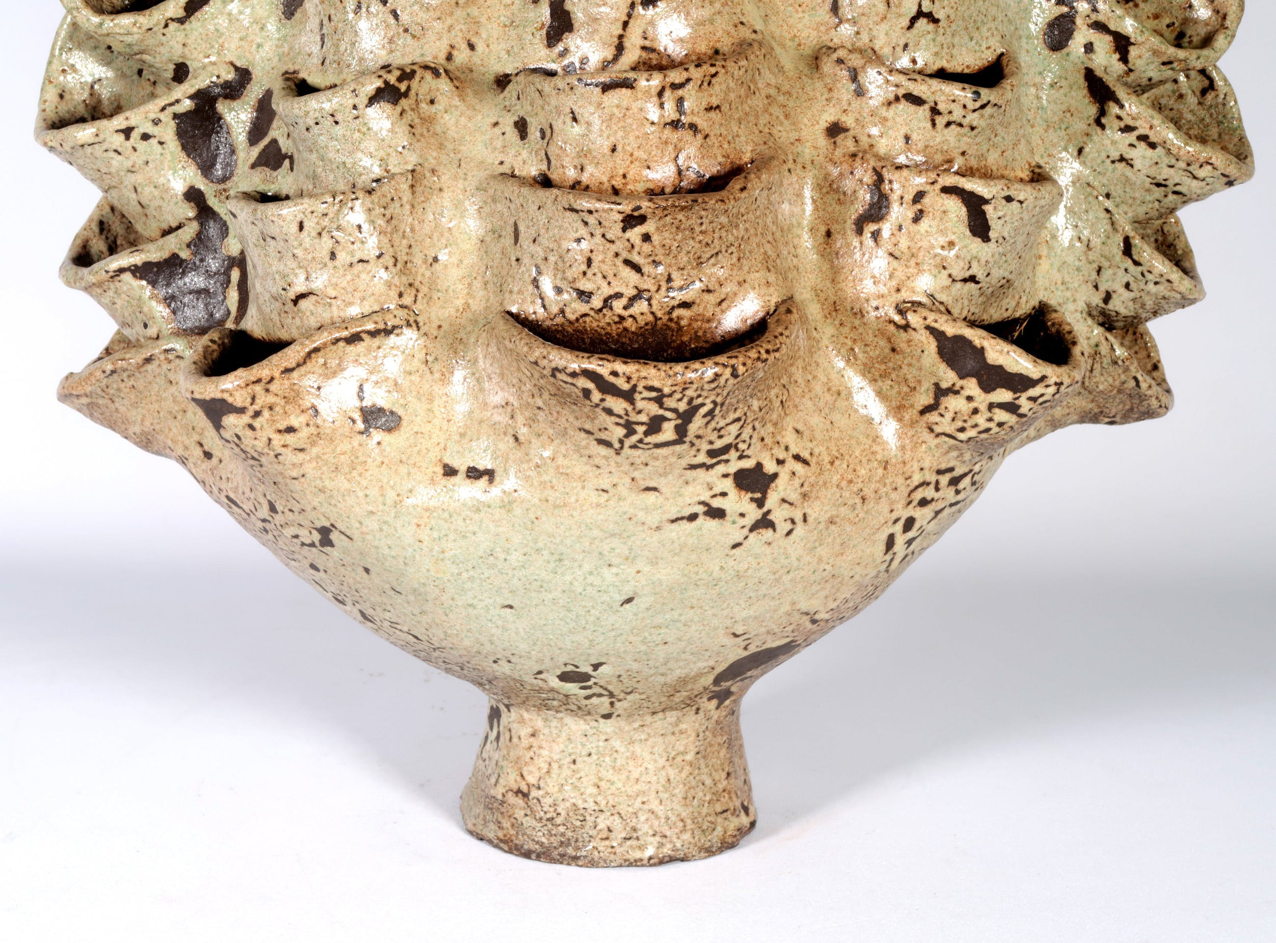 Handgemaakte geglazuurde tulpenvaas van keramist Peter von Hartsvelt Müller. De vaas is in goede staat en is gesigneerd en gedateerd op de achterzijde.