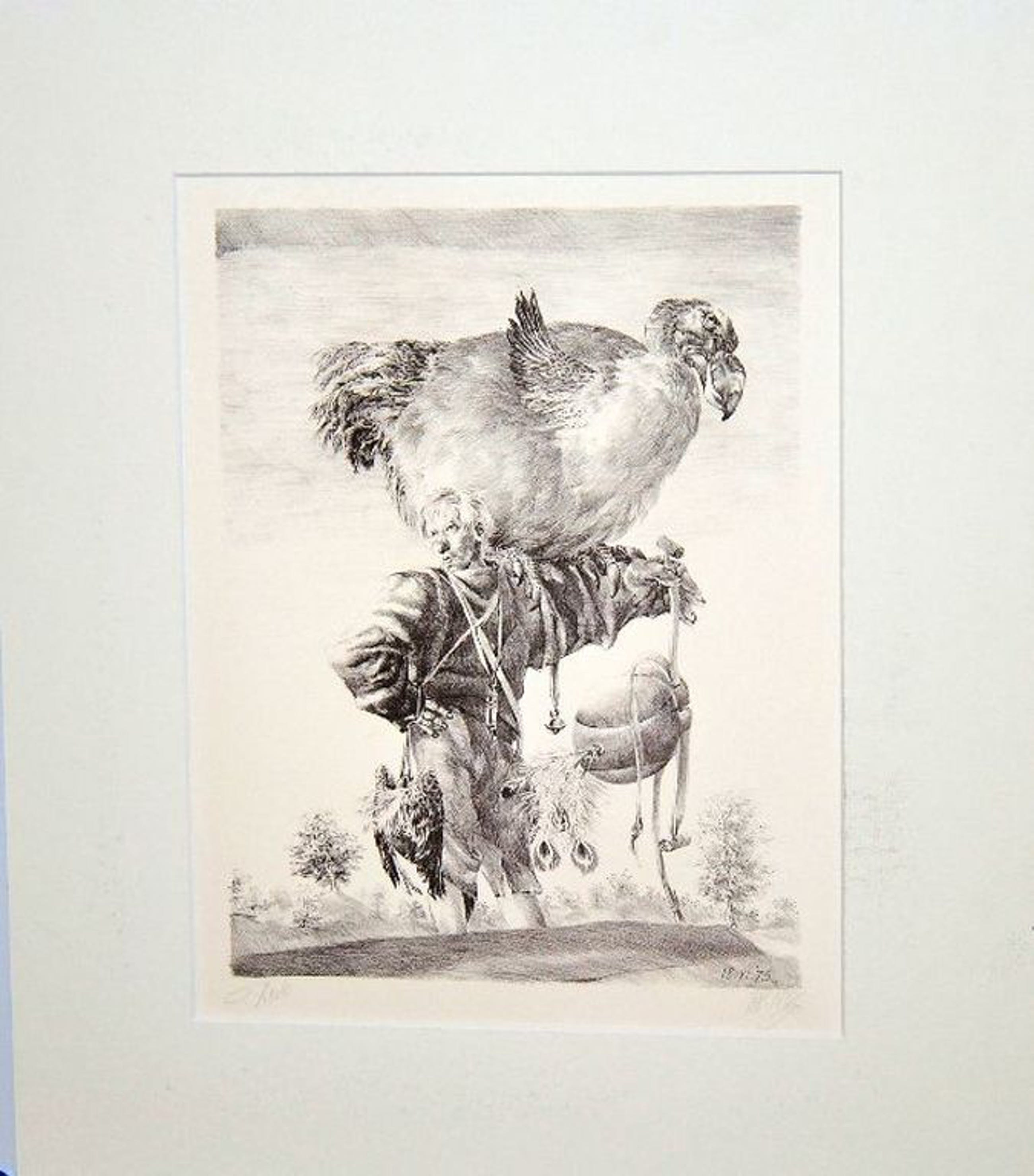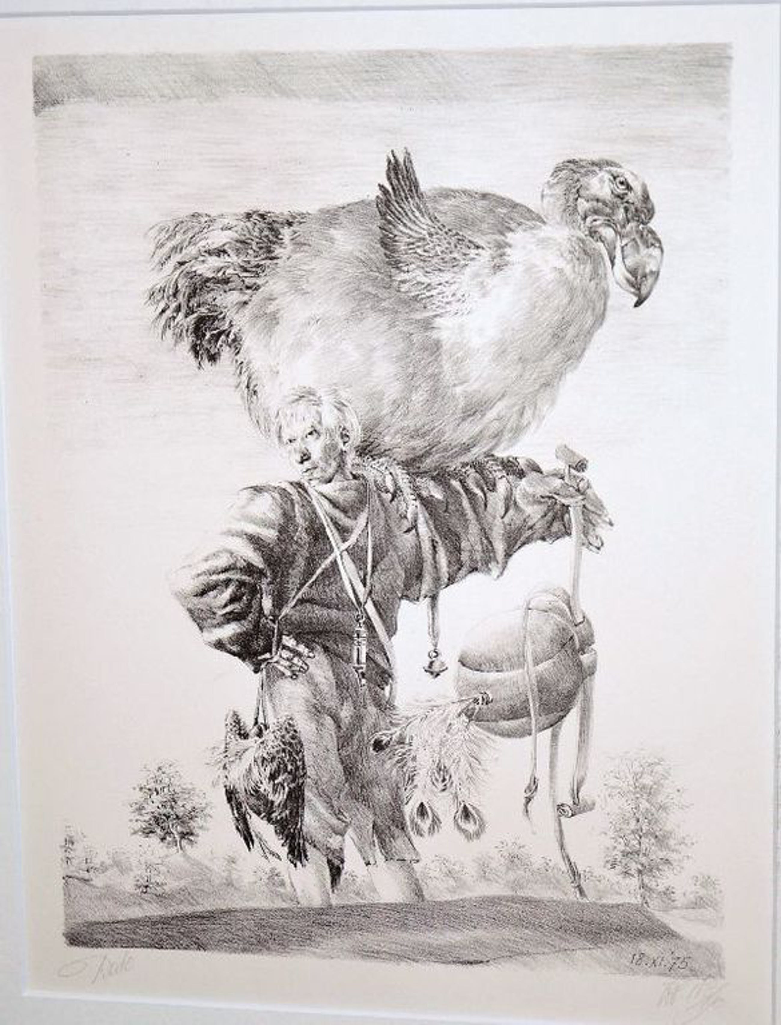 Lithografie Dodo van Peter Vos in opdracht van Prent 190
