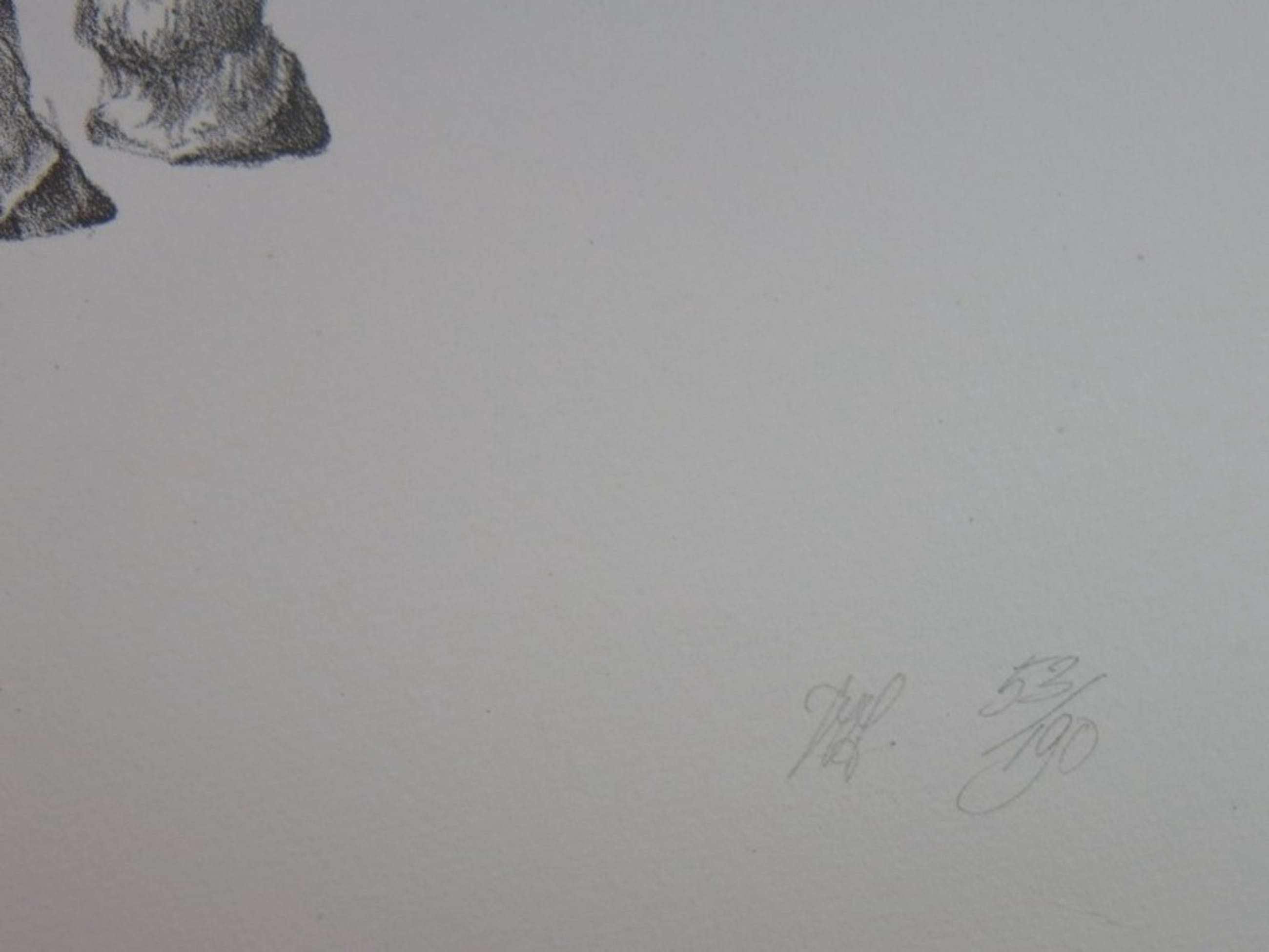 Conditie: Beeld in zeer goede staat. Maar met langs de randen van het blad wat lichte kreuklijnen en lichte beschadiging aan het blad in de bovenrand. Buiten het beeld. Ingelijst niet zichtbaar.