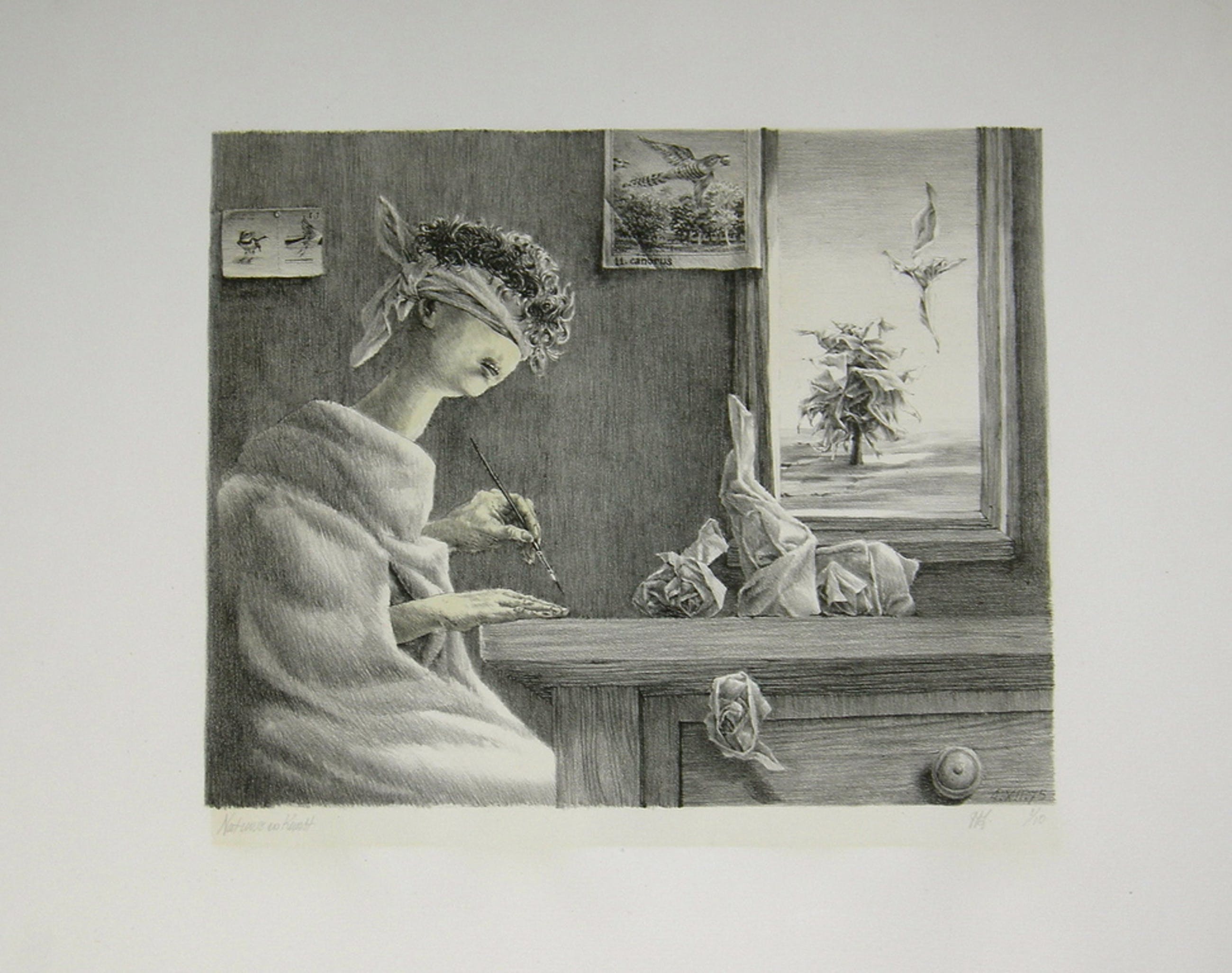 Formaat afbeelding 250 x 300 mm., papierformaat 380 x 500 mm., gesigneerd met potlood. Druk 1/10. In de litho gedateerd: 4.XII.75