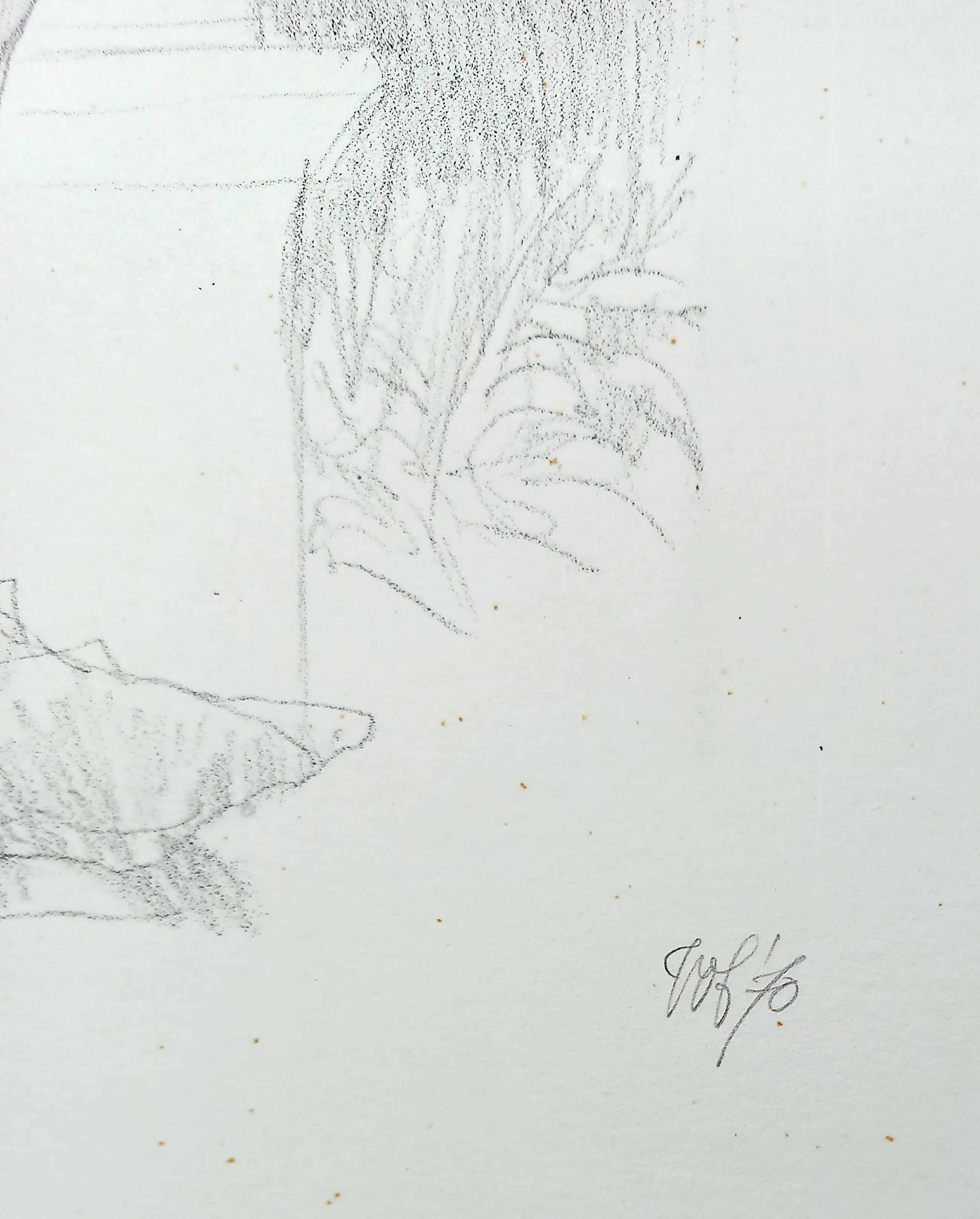 Afmetingen: 50cm x 35cm (blad), 30cm x 25cm (lithobeeld)