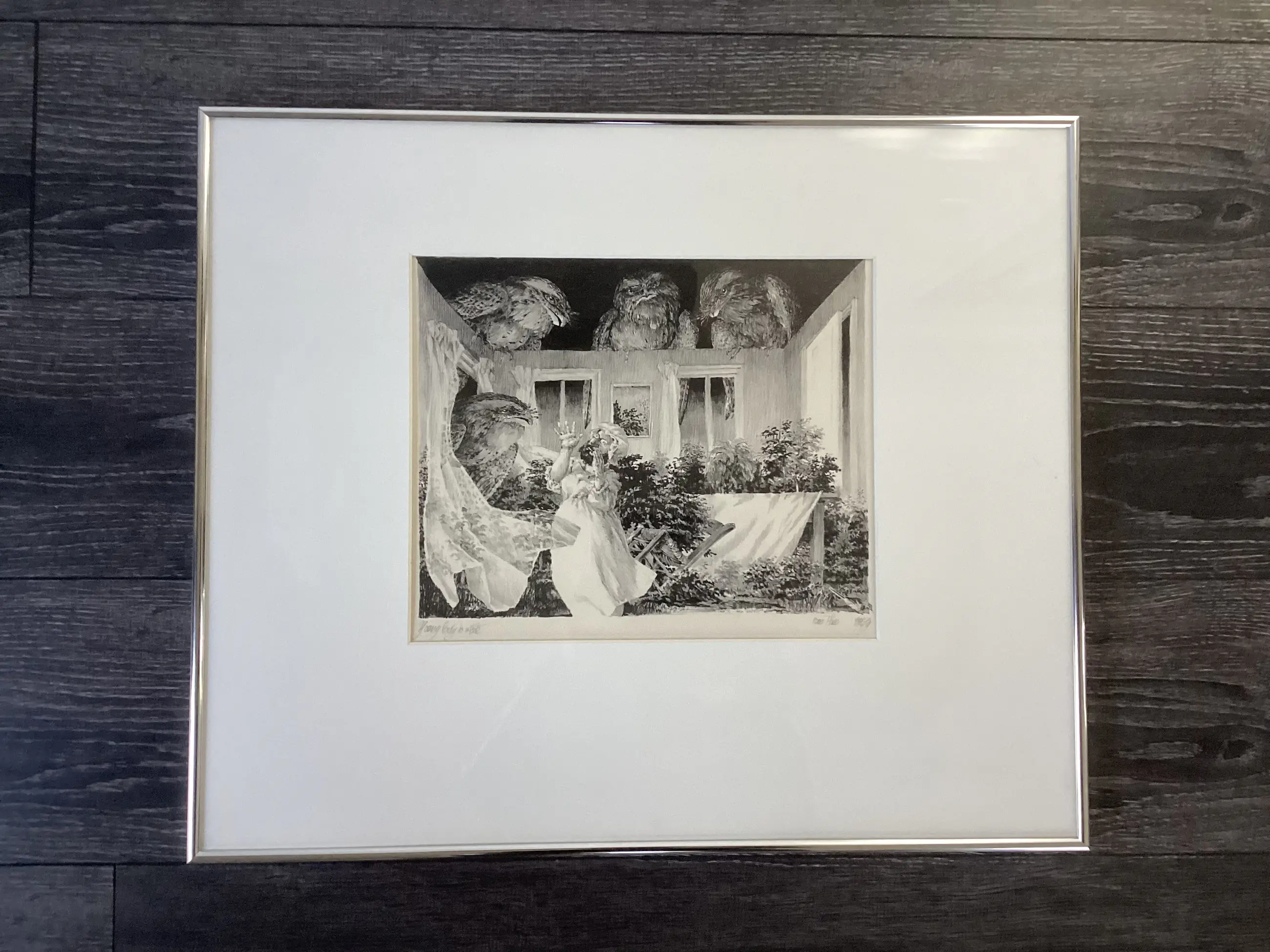 Afm. werk: 31x 25 cm. Afm. lijst: 60x50 cm. Ingelijst achter glas.