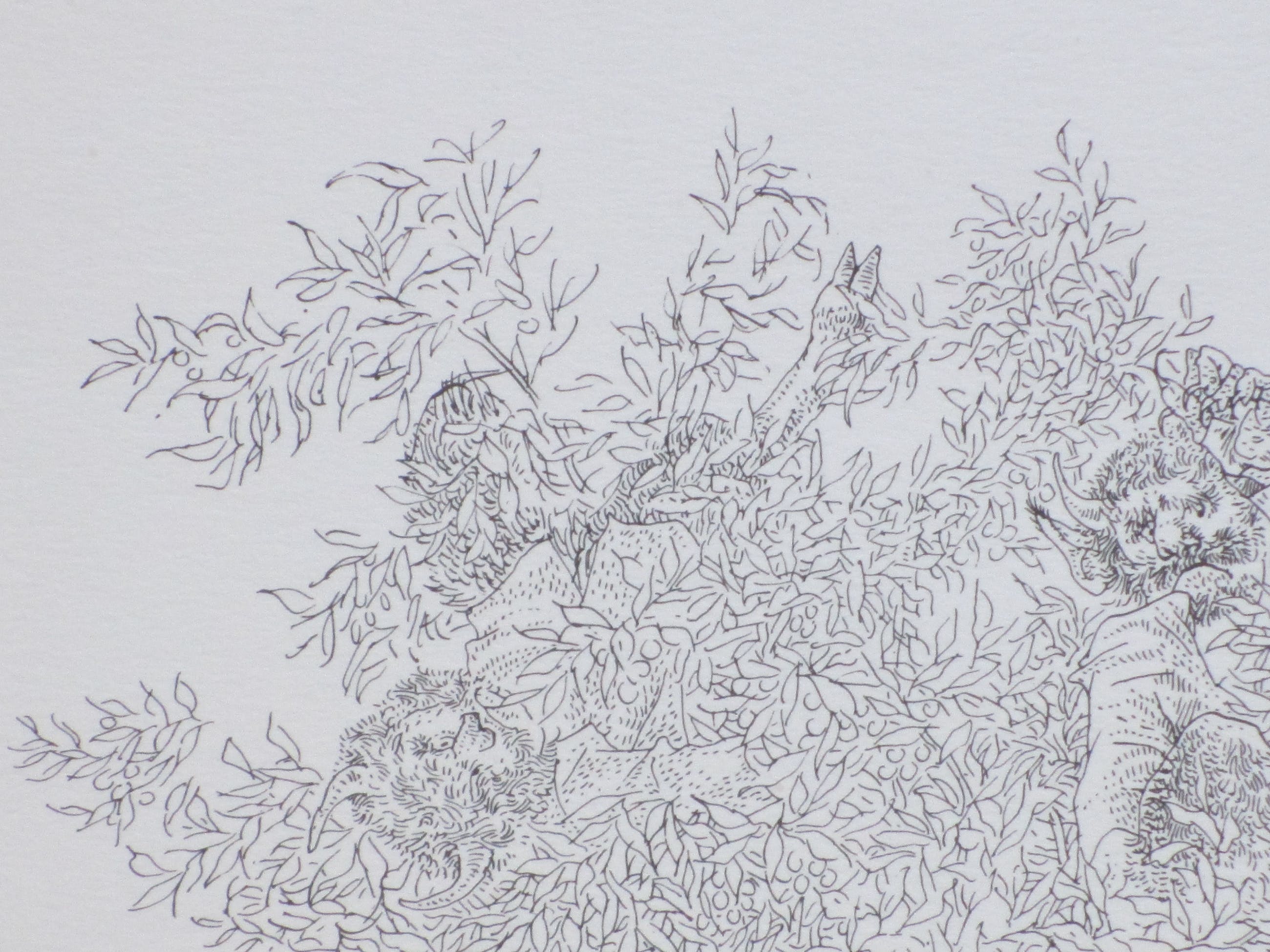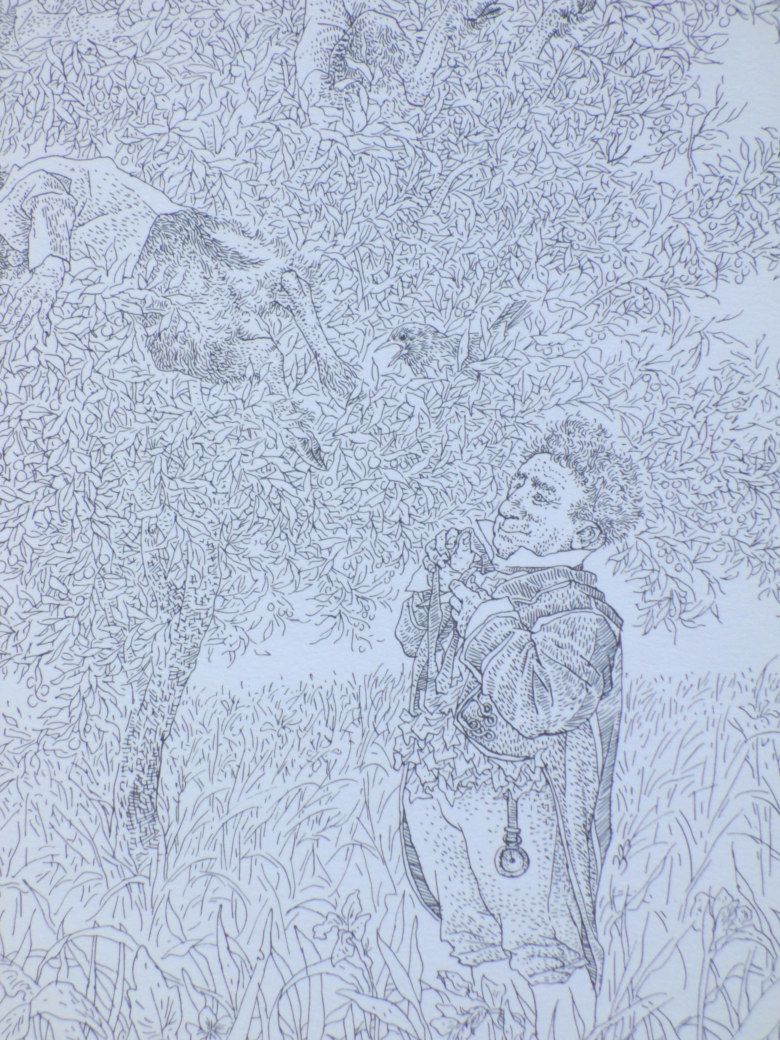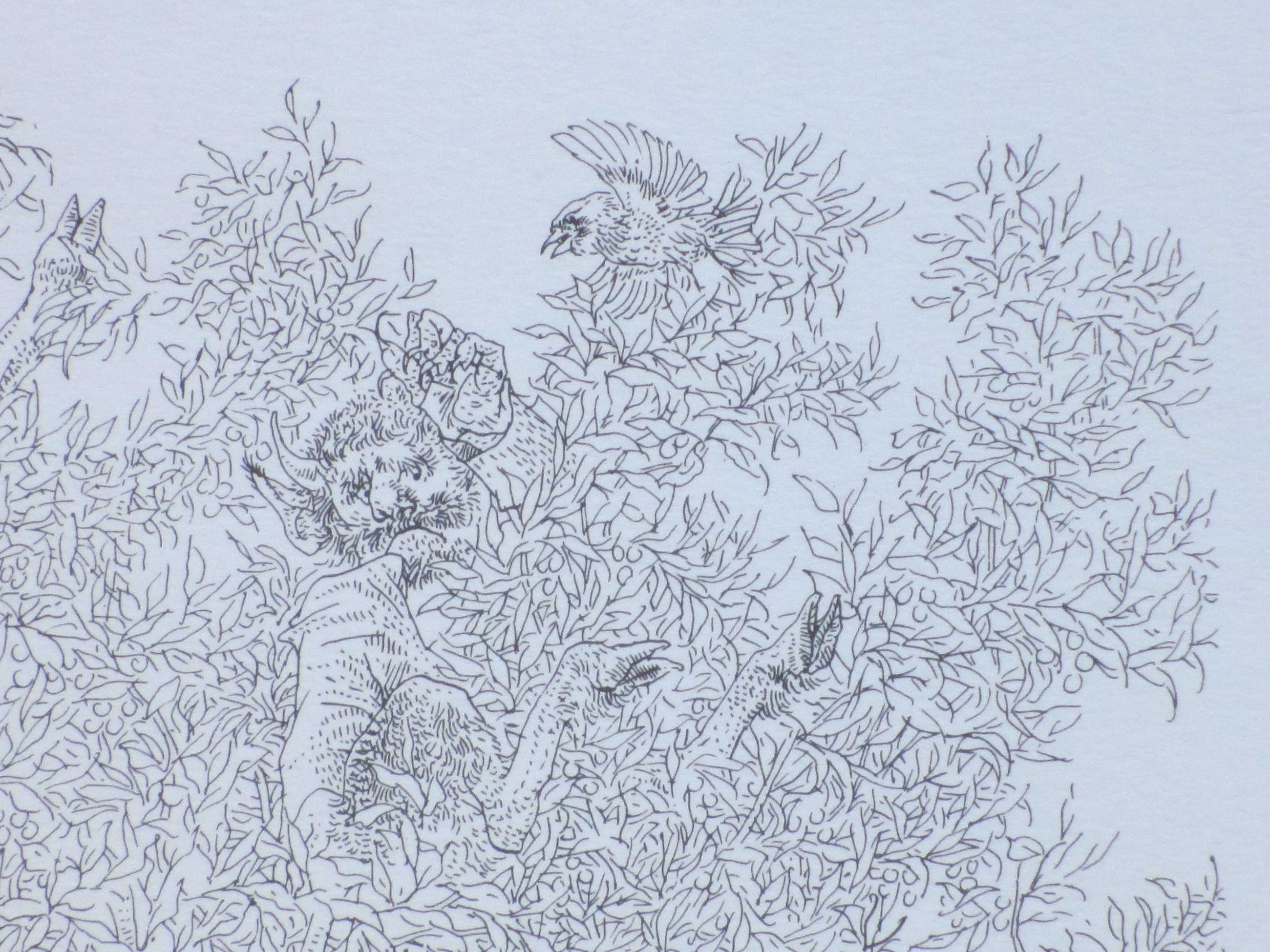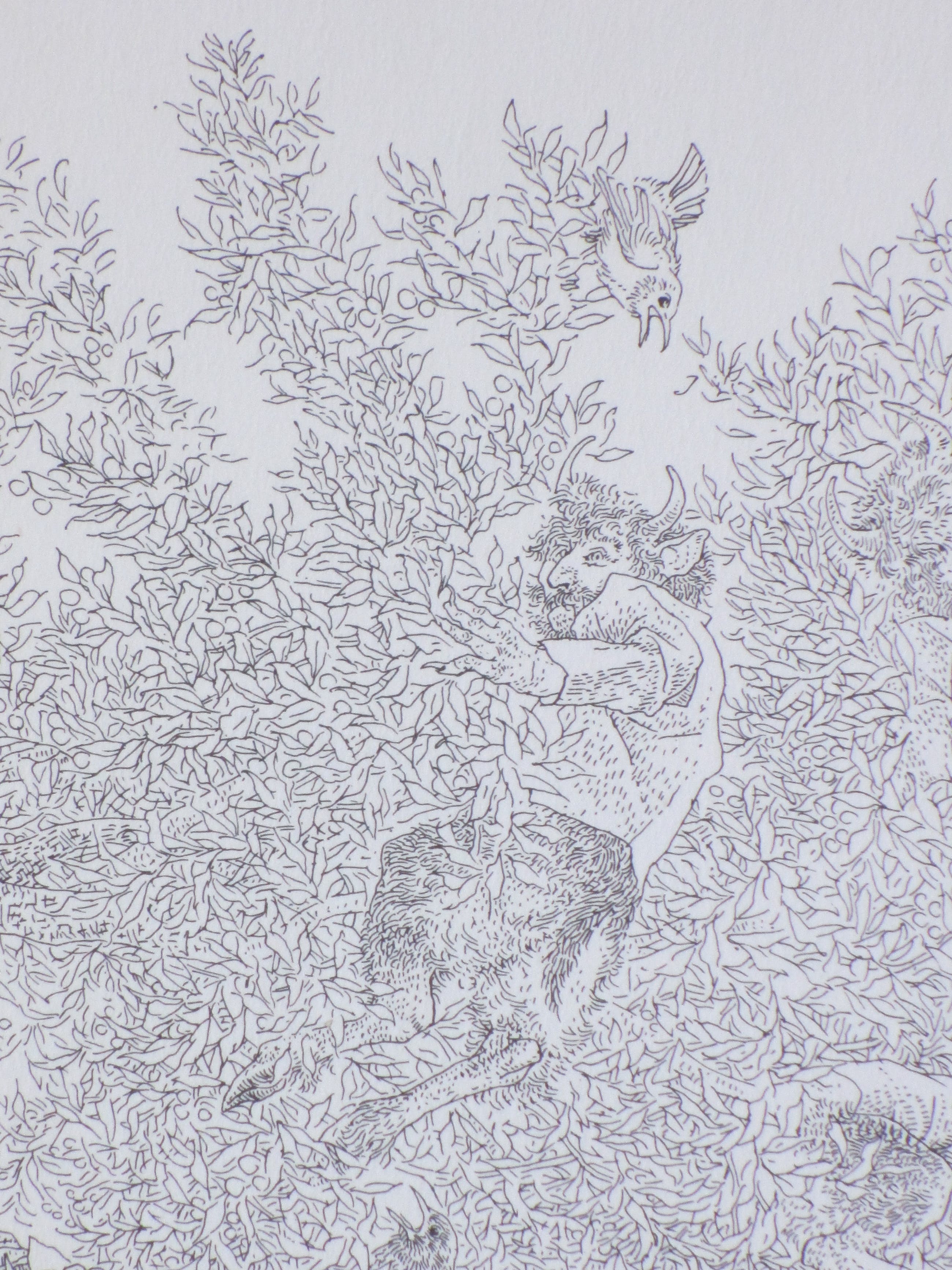 Litho doorPeter Vos. Voorstelling van een zelfportret voor een beestenboom. Losbladig, beeldmaat 28x22, bladmaat 34x25 Gesigneerd en gedateerd in de druk rechtsonder: 'Vos '72' Watermerk papier rechtsboven: 'E.G. Volkers'