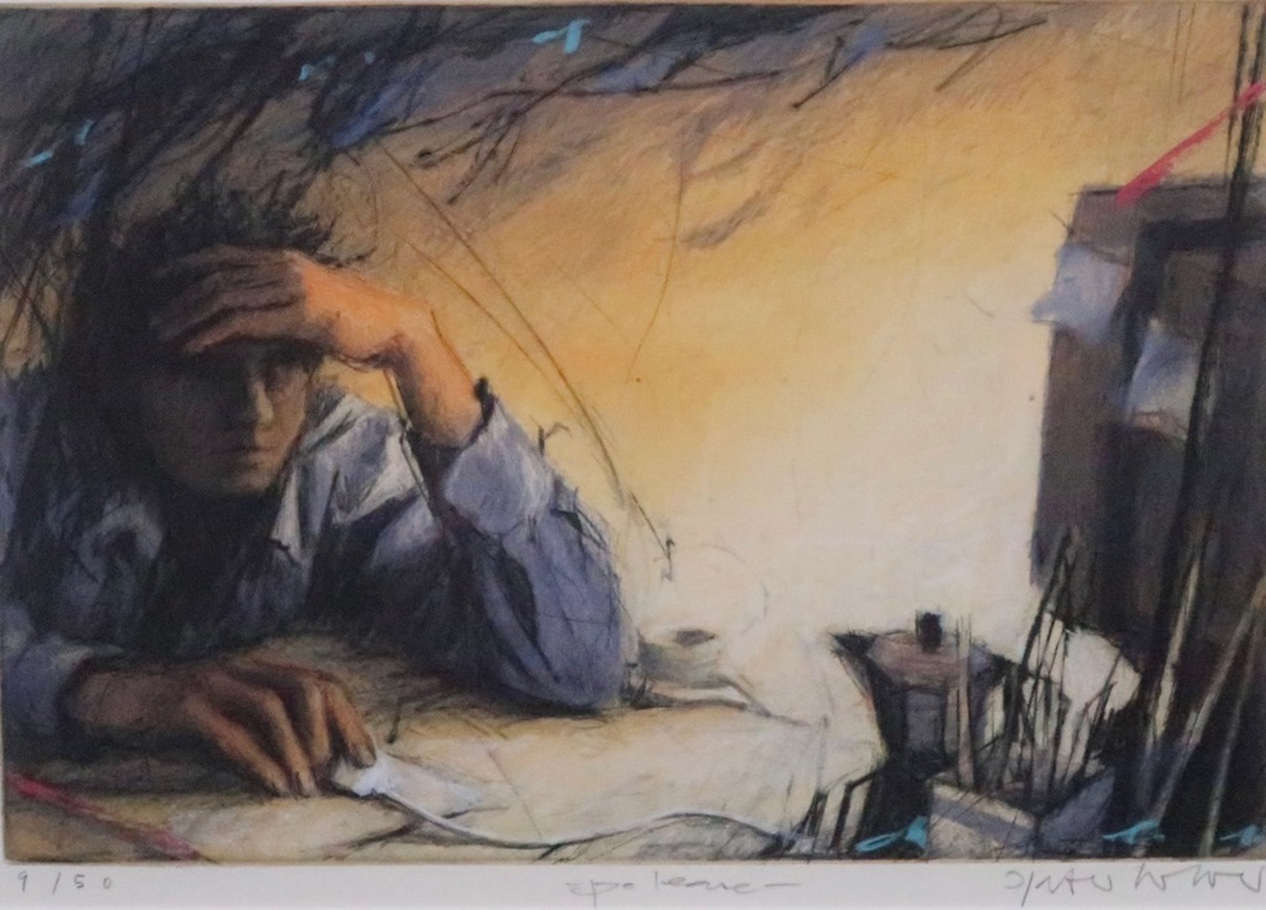 Bij foto´s van ingelijste werken kan spiegeling zichtbaar zijn. Het oplagenummer op de foto(‘s) kan afwijken van het hierboven genoemde correcte oplagenummer.