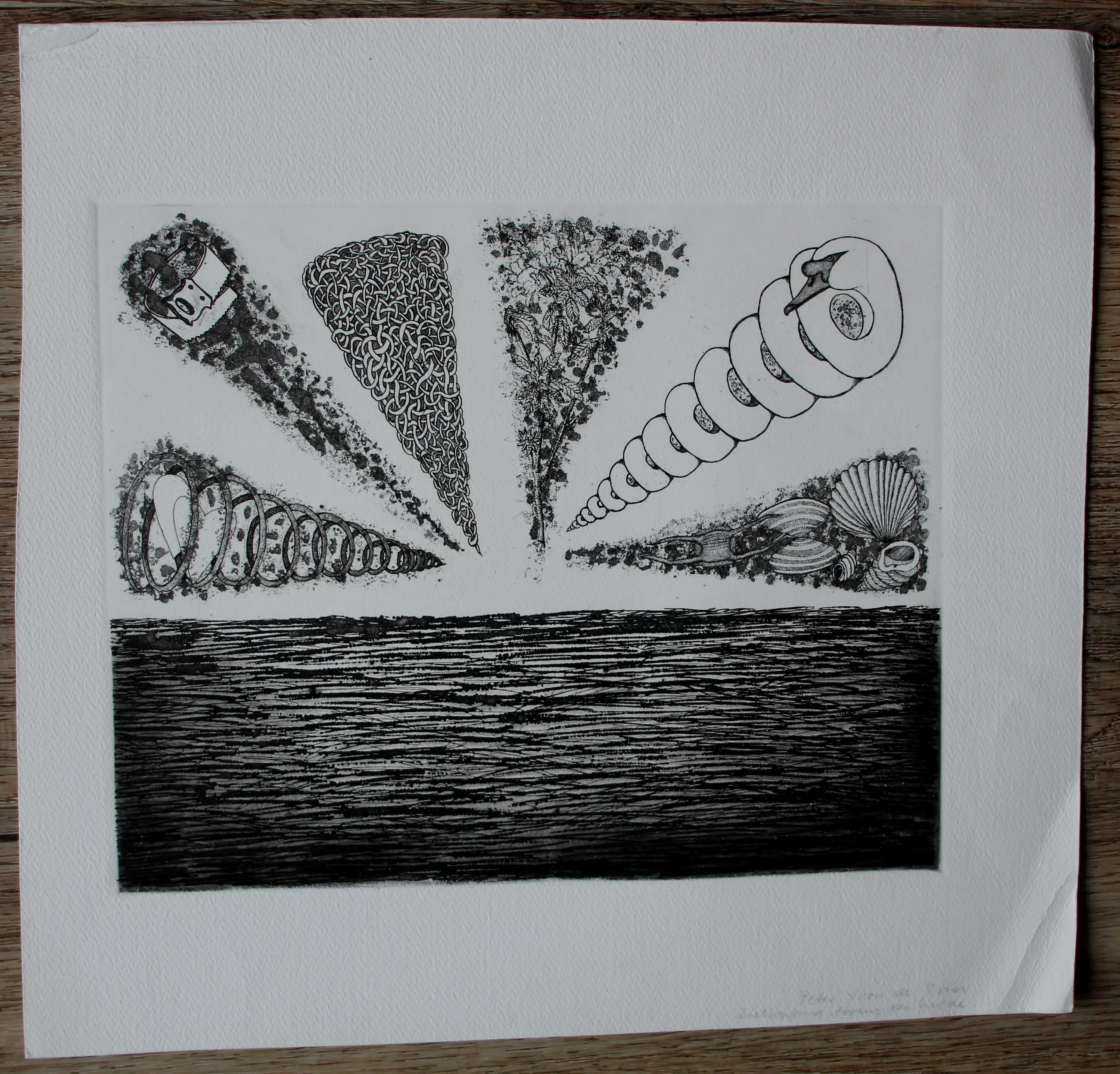 Ets van Peter Yvon de Vries. Afmetingen blad: H30 x b31.5cm. Afmetingen voorstelling: H19.5 x b24cm. Het werk is rechts onderaan gesigneerd door de kunstenaar. De authenticiteit van het aangeboden werk wordt volledig gegarandeerd. Een certificaat van echtheid kan, op aanvraag, worden gemaild.