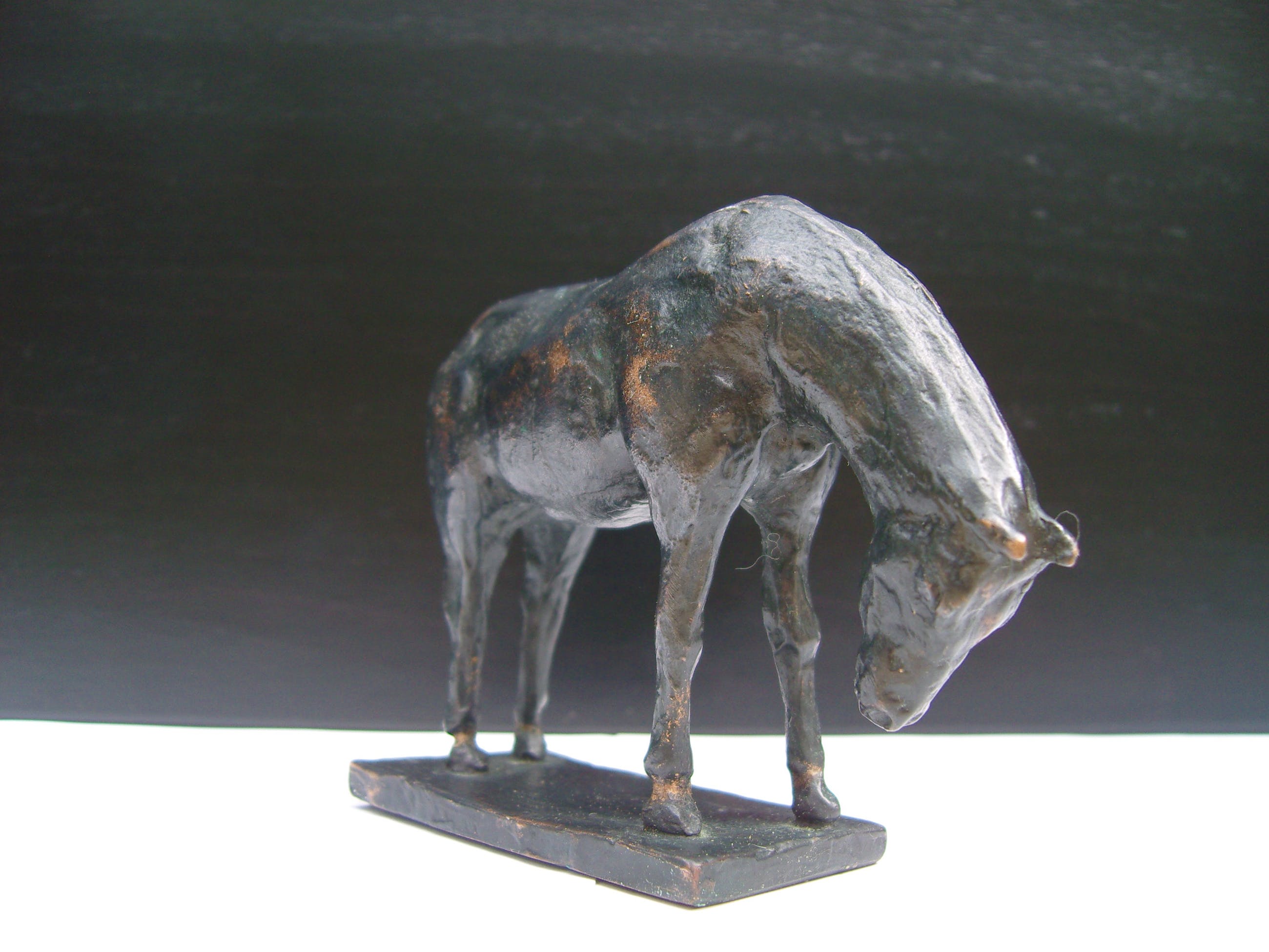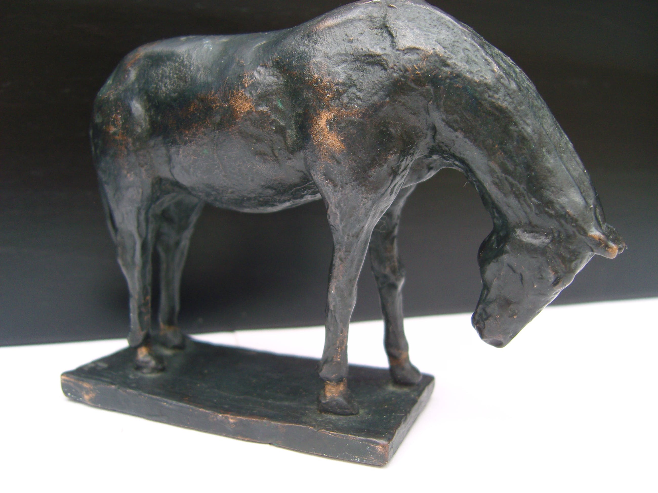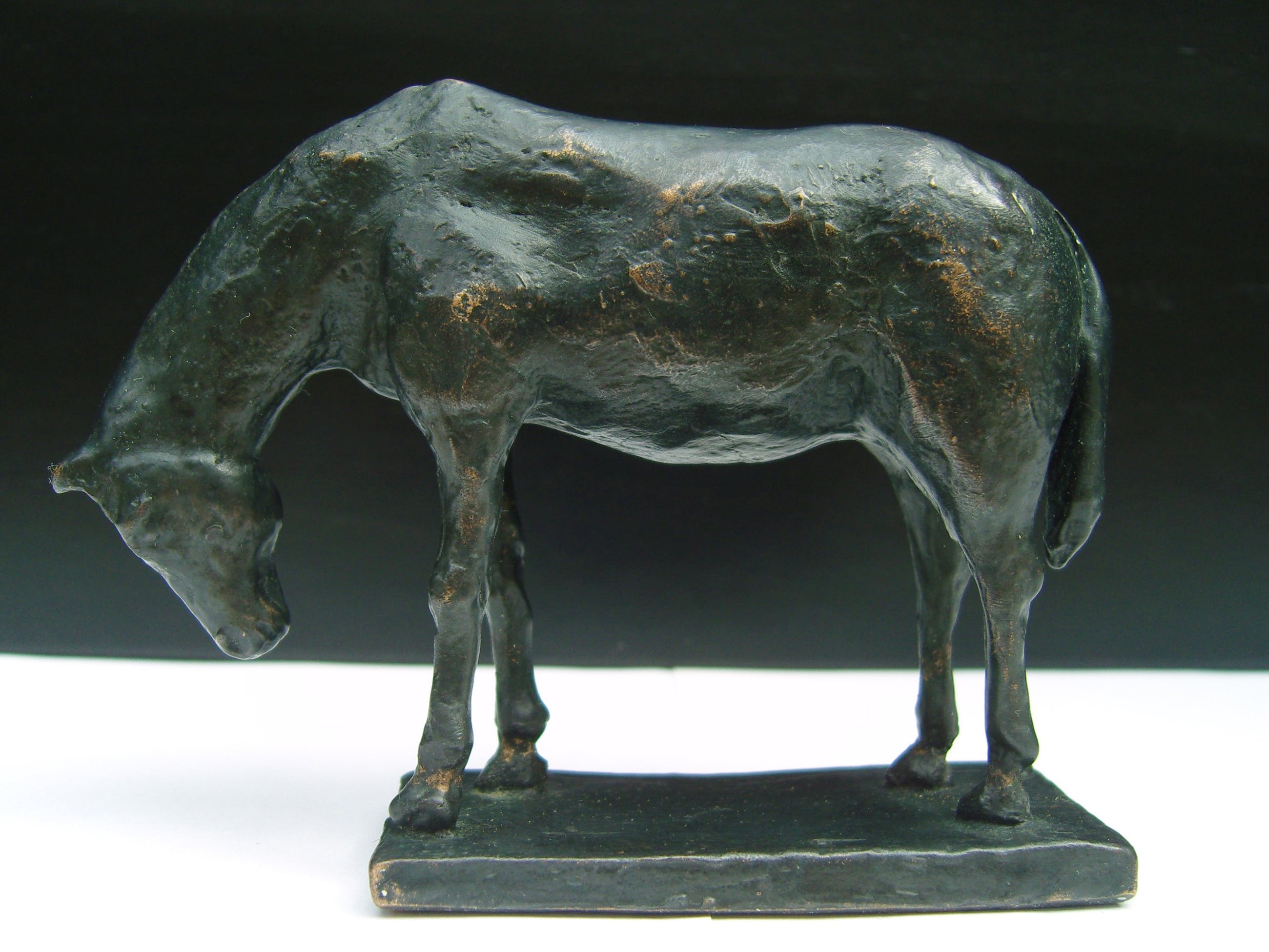 Zeer fraai klein sculptuurtje van paard. Massief brons.