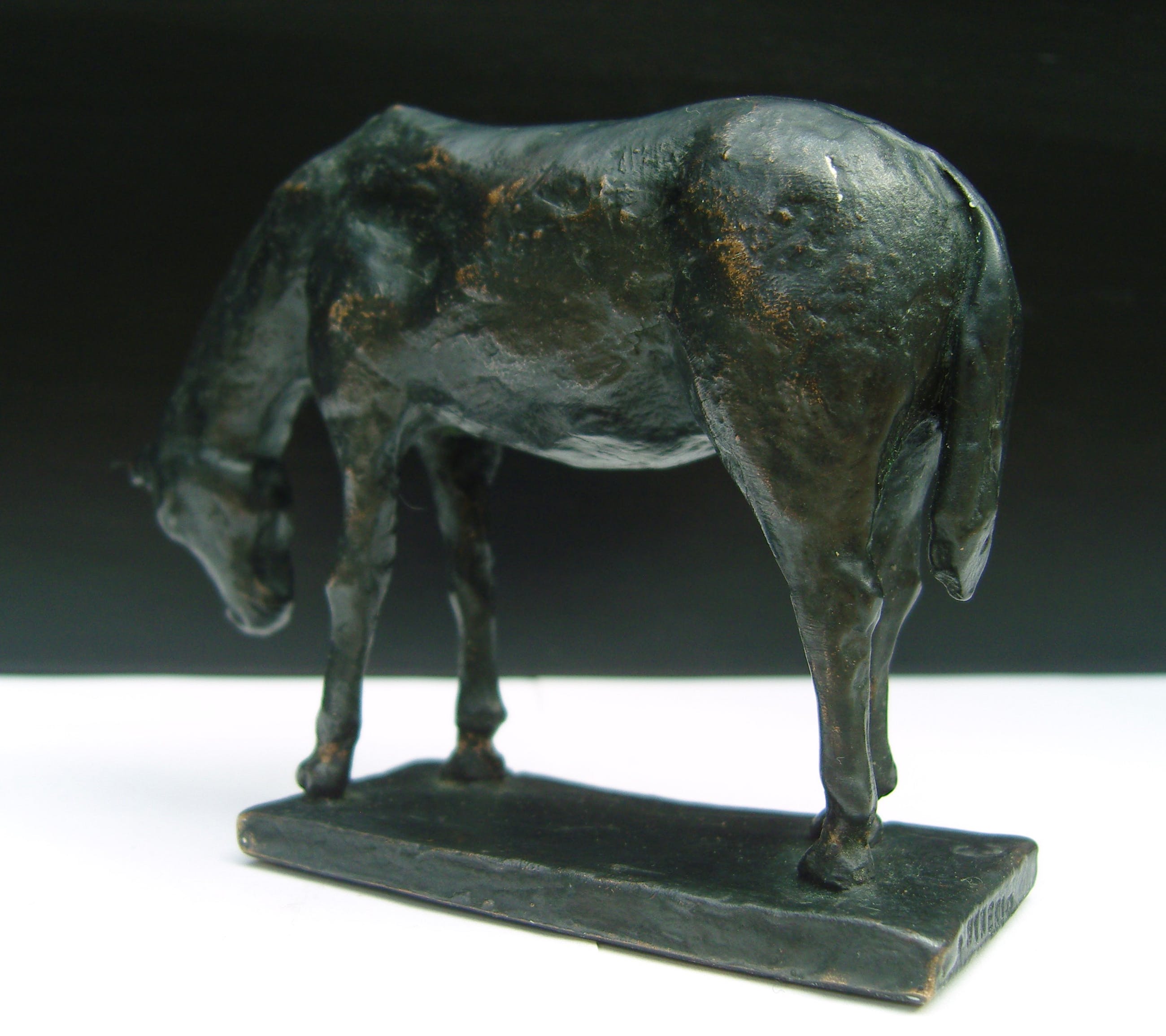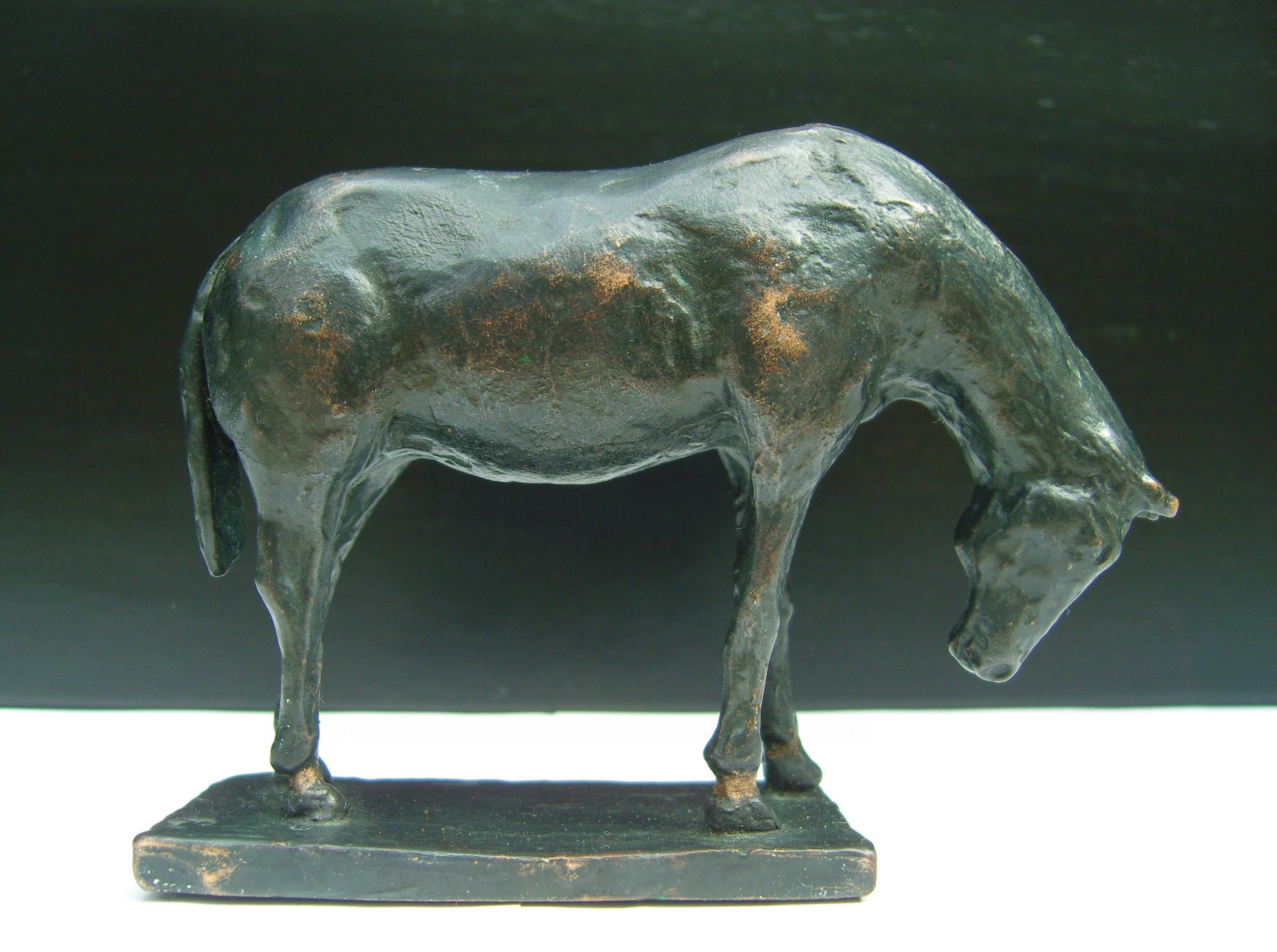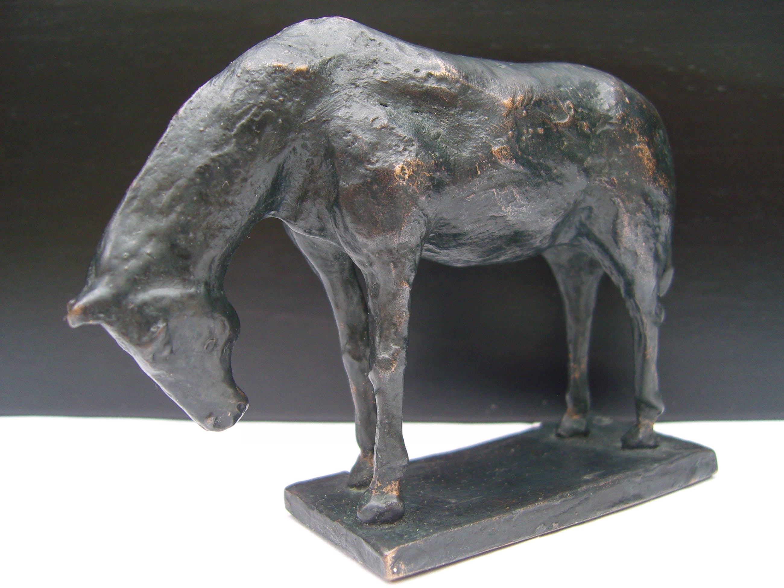 Zeer fraai klein sculptuurtje van paard. Massief brons.
