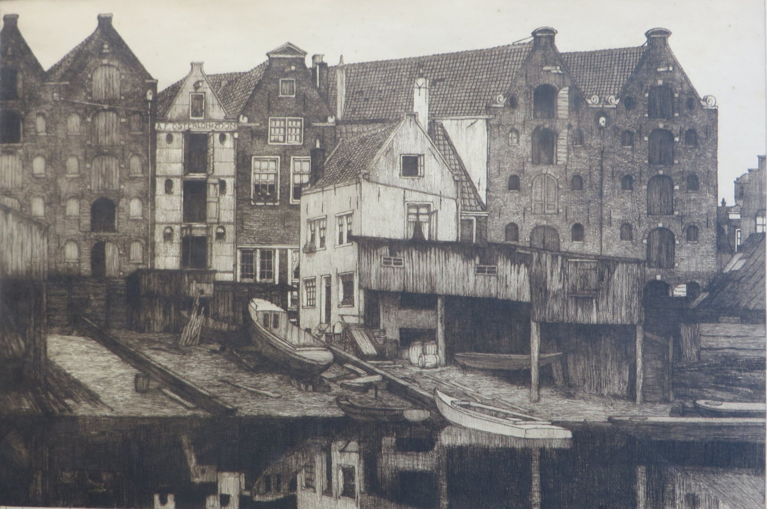 Historische blik op Amsterdam voor de tweede wereldoorlog. Gesigneerd R.O. P.Teunissen.