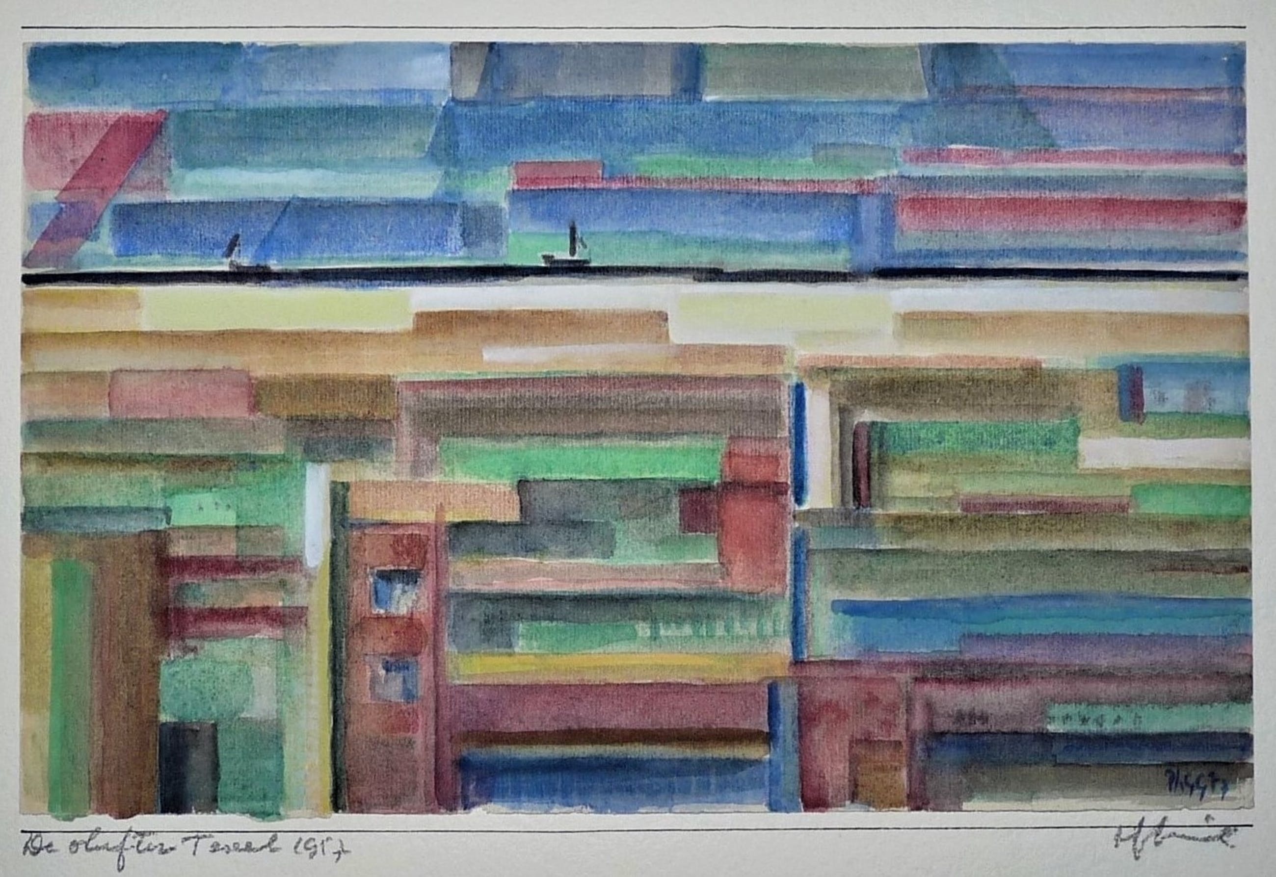 * Fraaie aquarel van de Nederlandse kunstenaar Phil Grisel. Kubistische interpretatie van haven o.i.d. Texel, geschilderd in 1957.