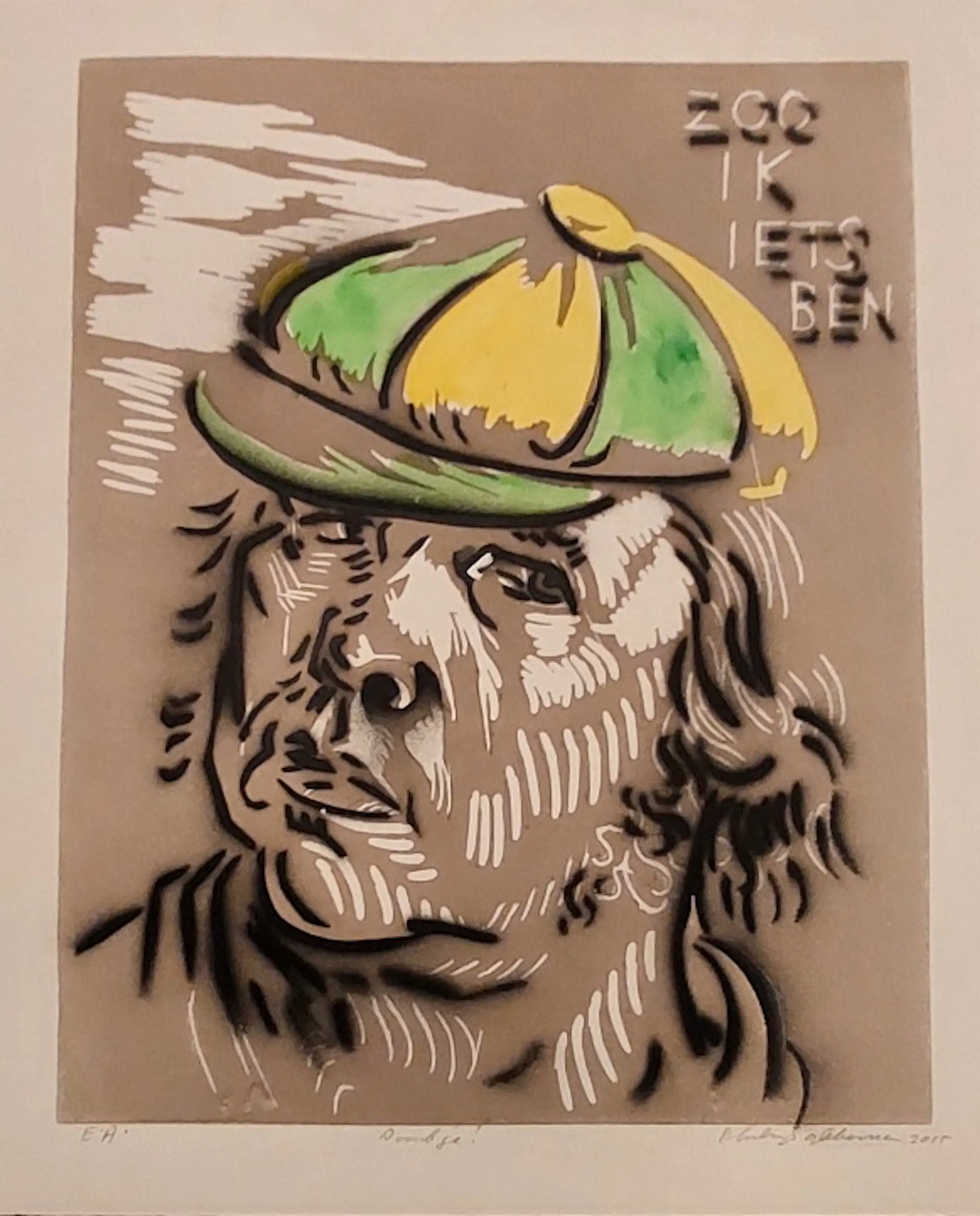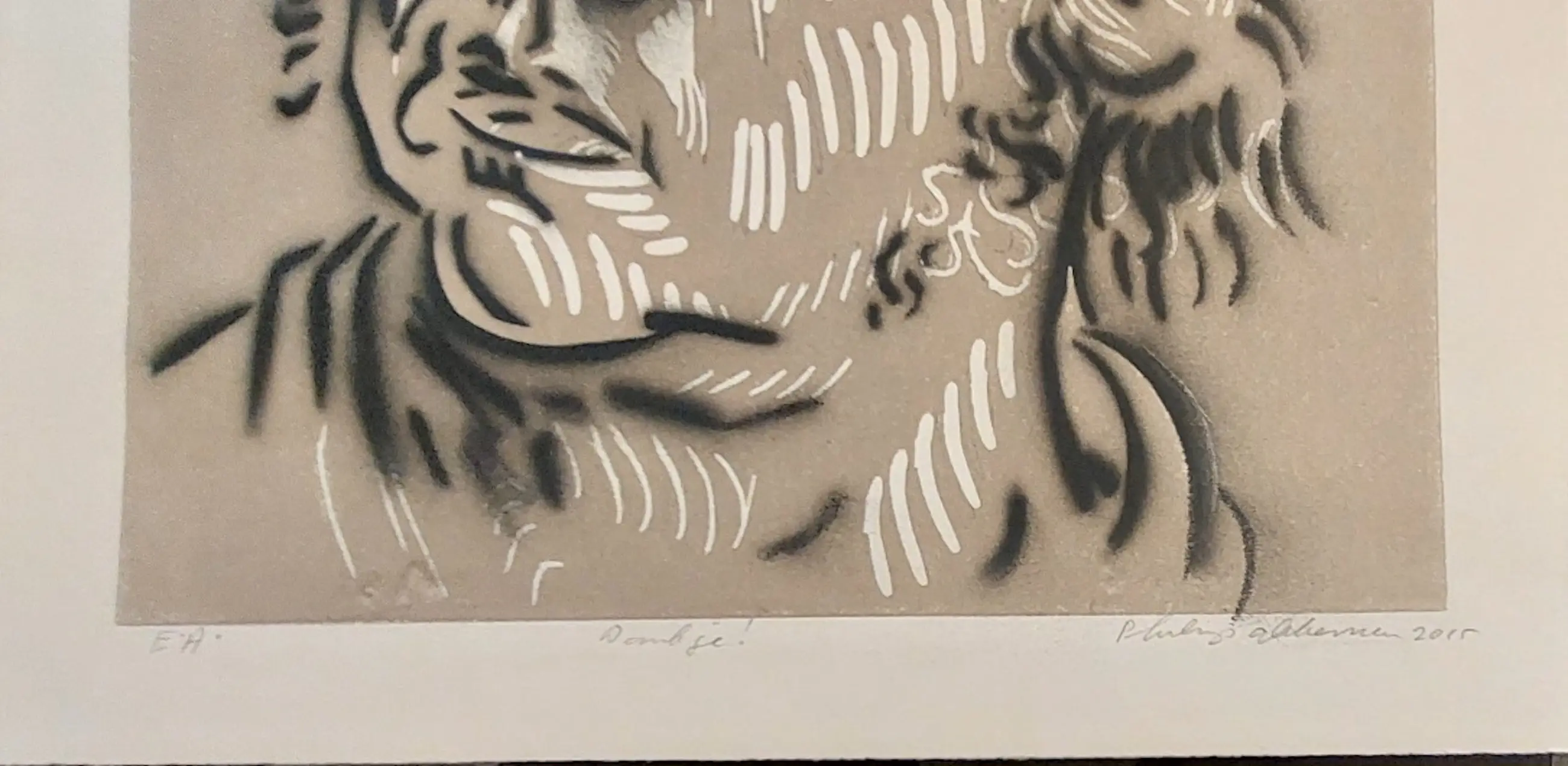 Fraaie kleurenlitho, in potlood gesigneerd en gedateerd 2015. Links onder E.A. en midden onder 'dank je' ook in potlood. Wordt bij verkoop plat verzonden!!