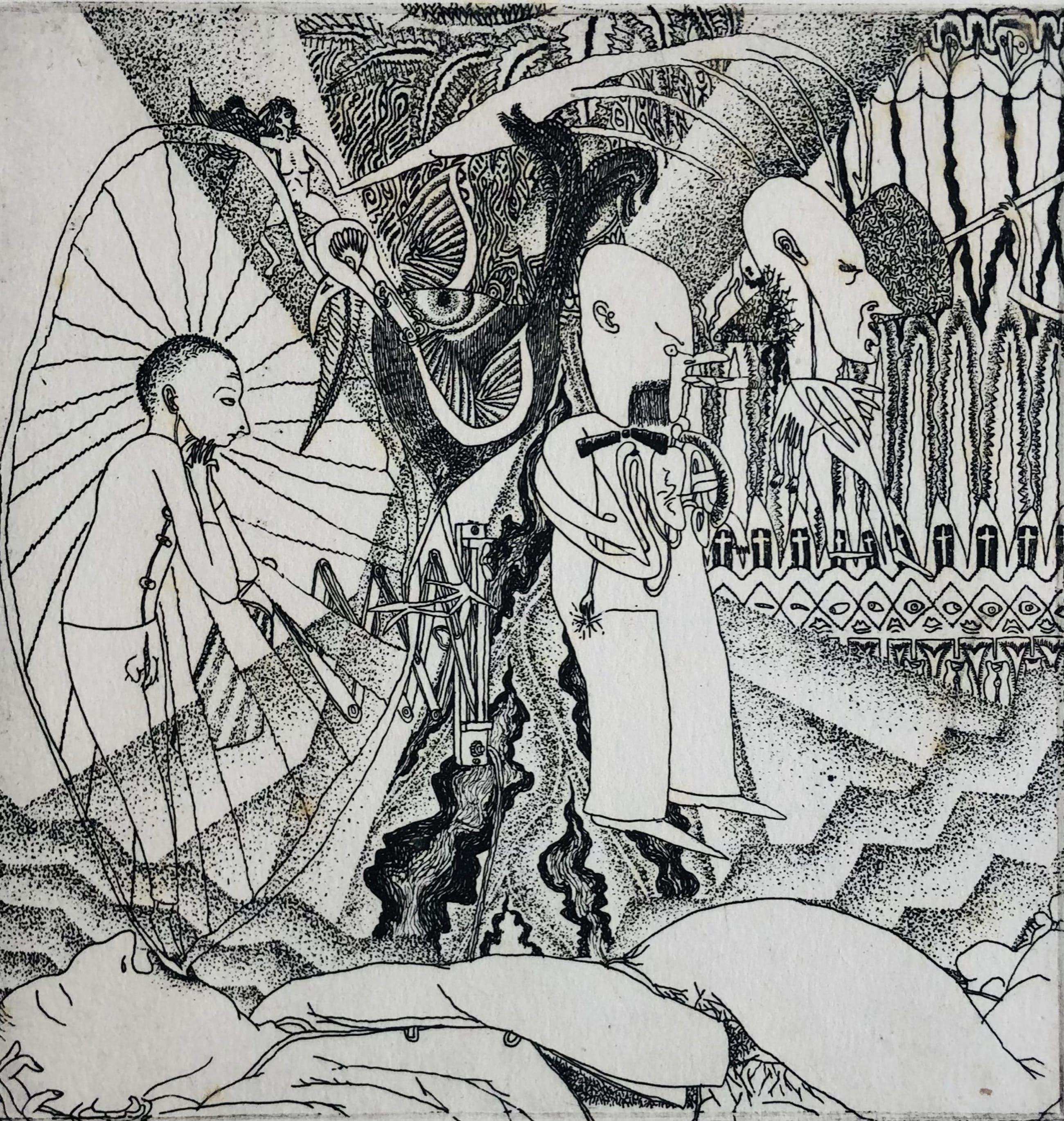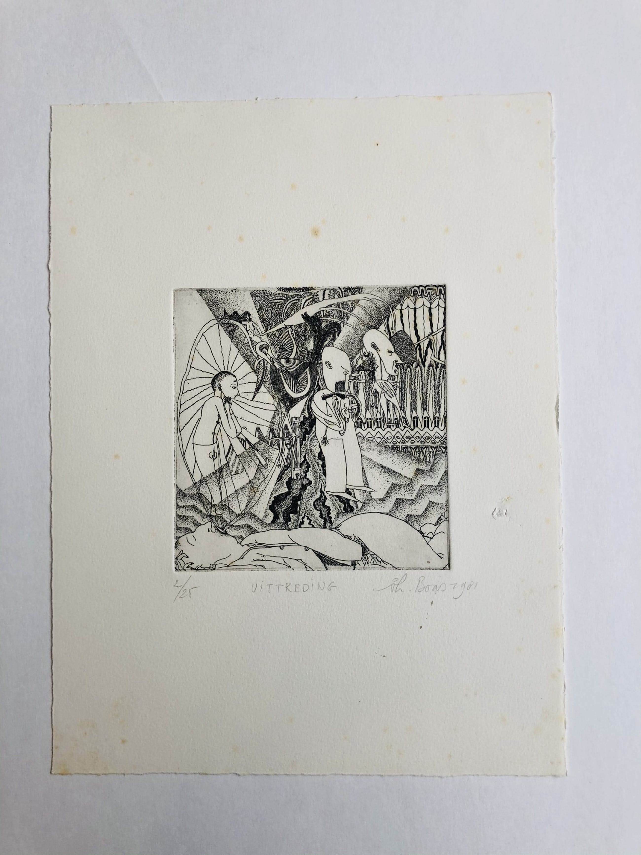 Fraai surrealistisch werkje van Boas in goede staat. U kunt het werk vooraf komen bekijken in de schatkamer van galerie Rotor in Gorinchem of na aankoop ophalen. Het werk kan ook verzonden worden via aangetekende post. Wij kunnen het werk tijden Corona gratis voor u opslaan. Ook kunnen we het inlijstwerk voor u uitvoeren.